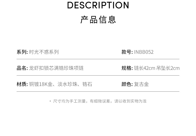 INBB052 龙虾扣锁芯满锆珍珠项链|INCH EDITION 时光不惑系列
