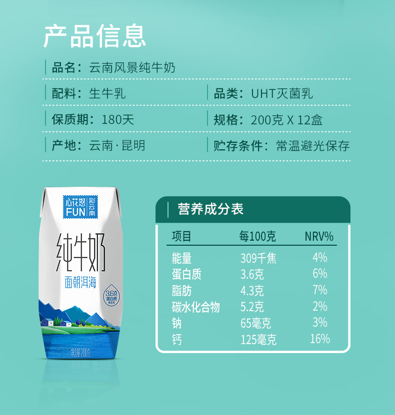 3.6g高蛋白·新希望雪兰云南风景纯牛奶 125mg原生乳钙