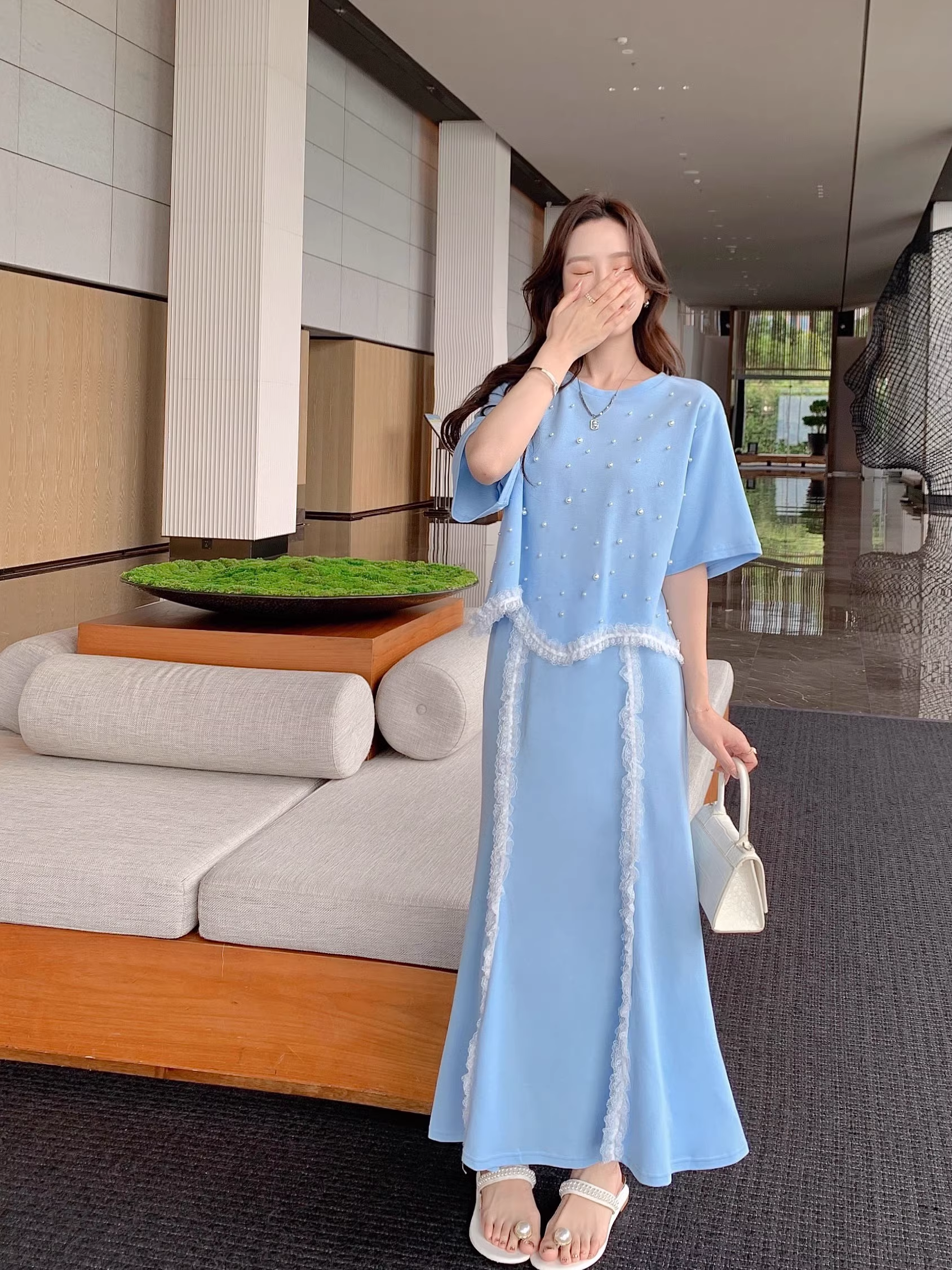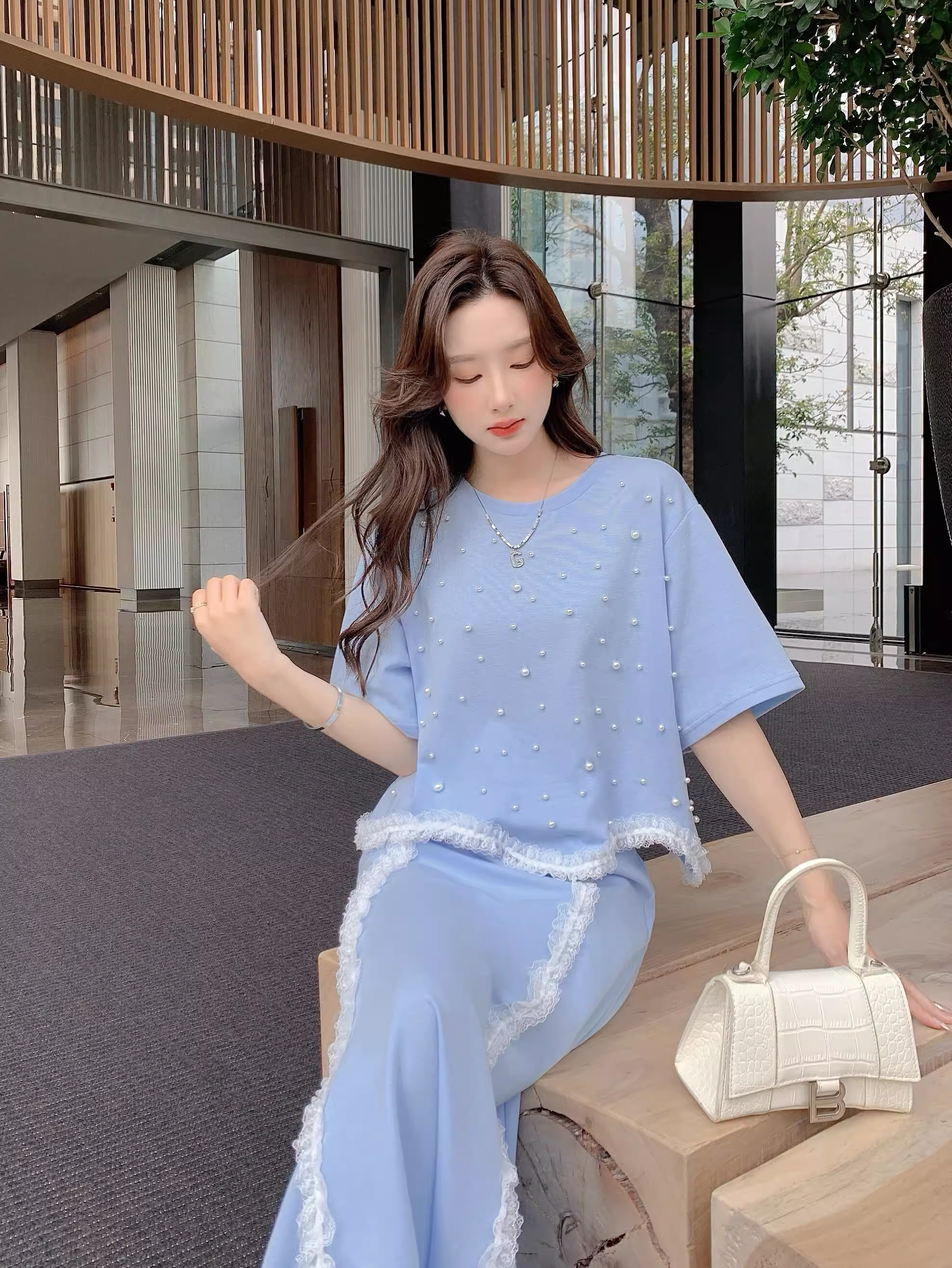 张心子【苏黎世2.0】法式名媛花边小香风套装女夏气质裙子两件套 U2404042