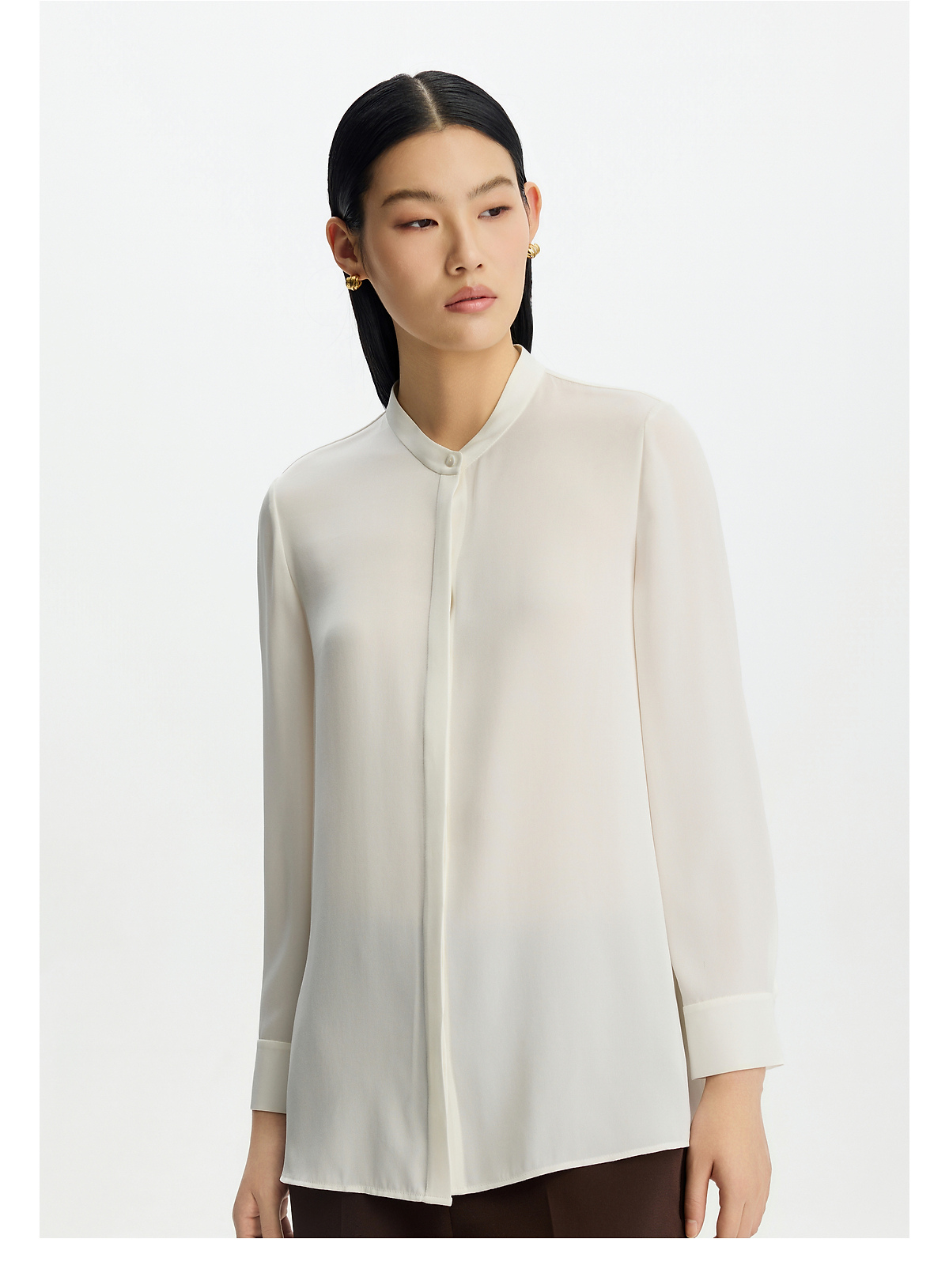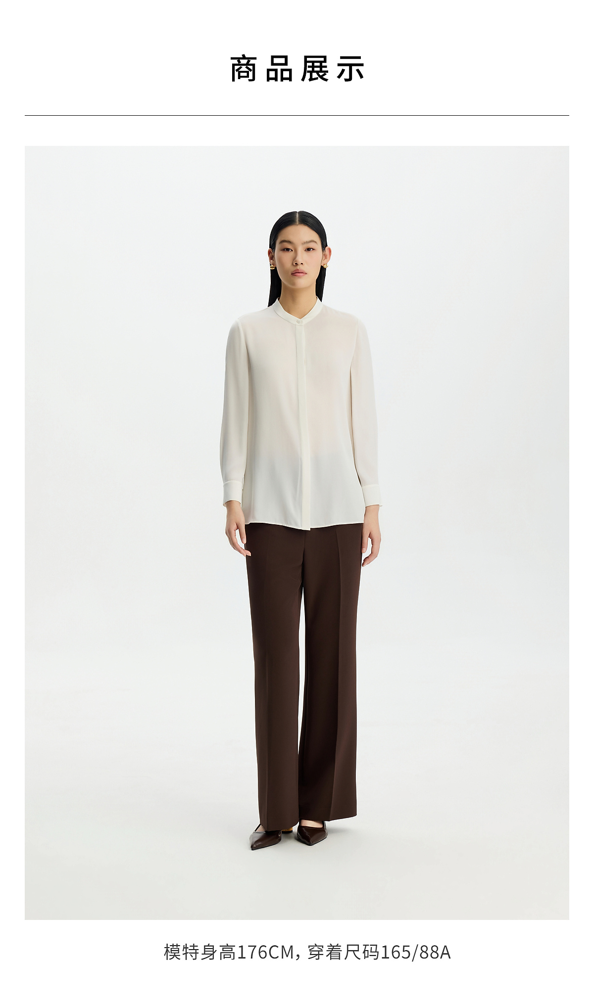 商场同款PURE TOUCH26春夏新款立领长袖衬衫弹力双乔桑蚕丝衬衫女
