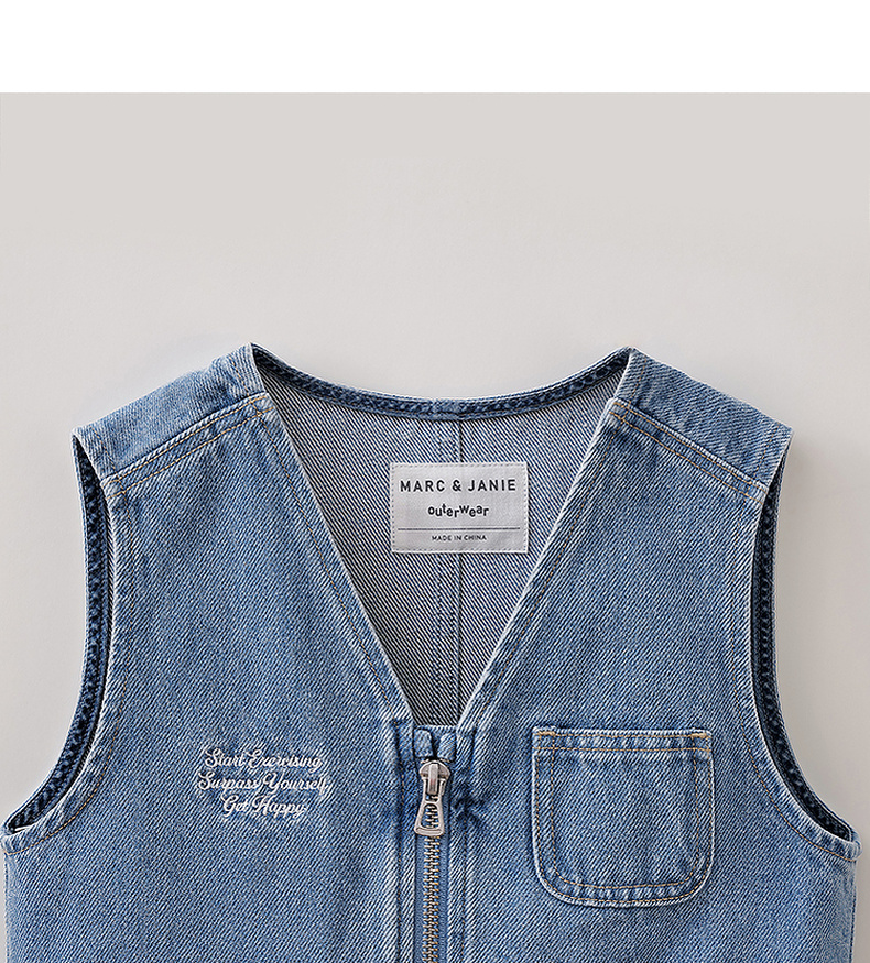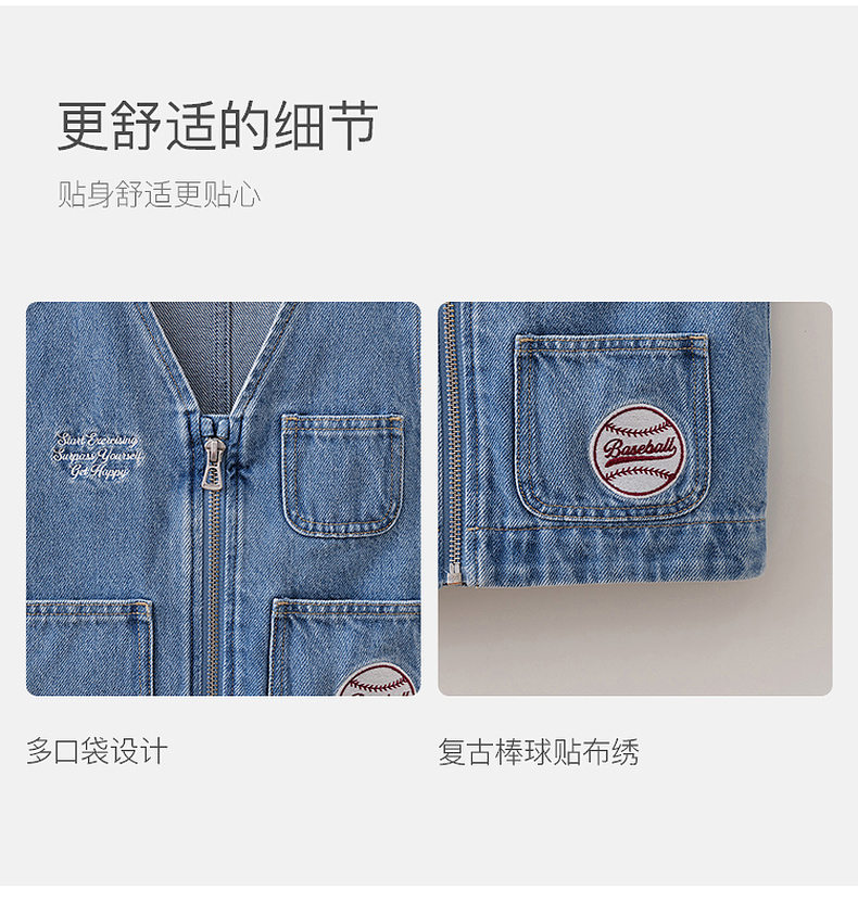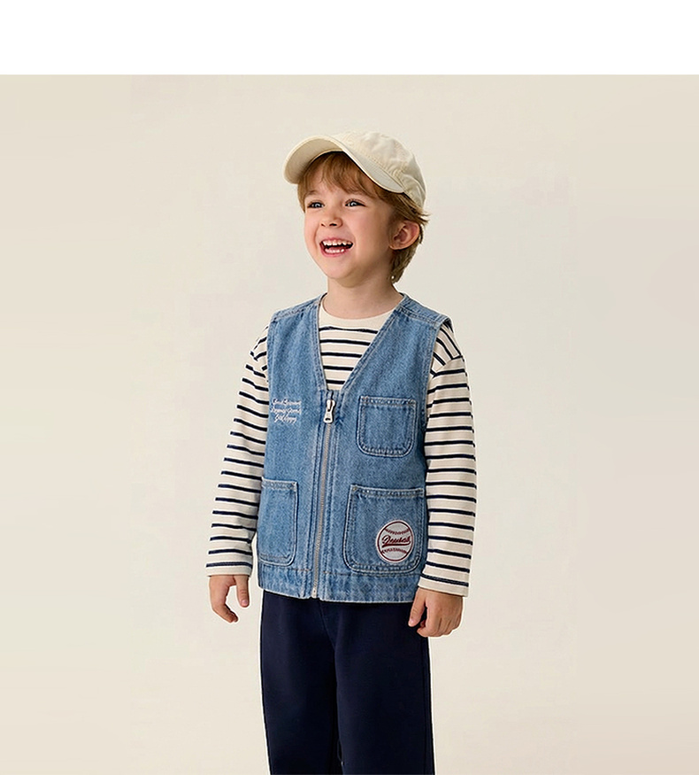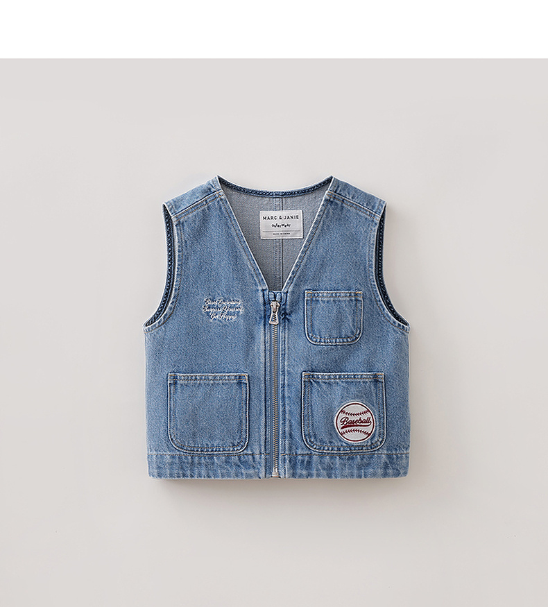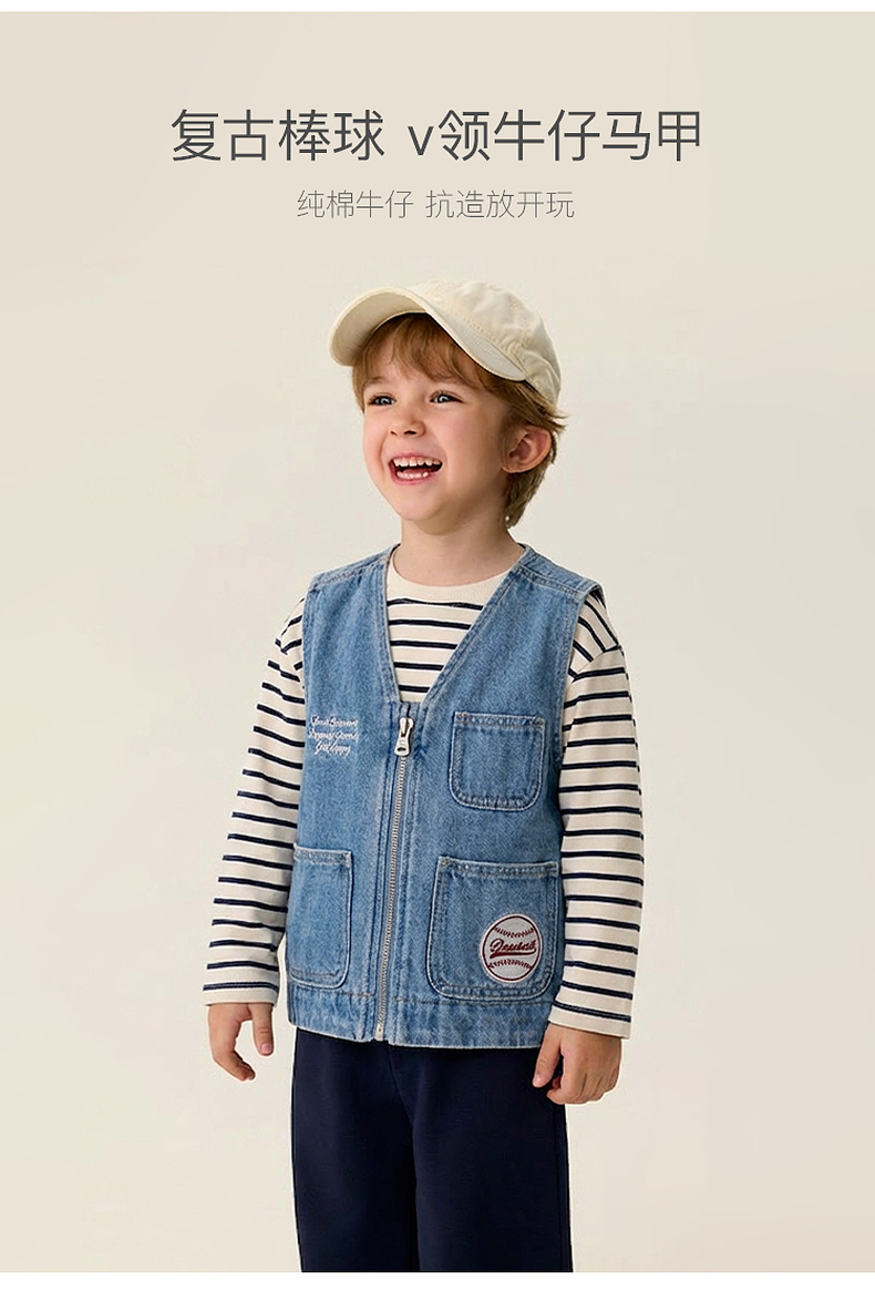 马克珍妮复古棒球男童V领牛仔马甲2026年春装新款560022