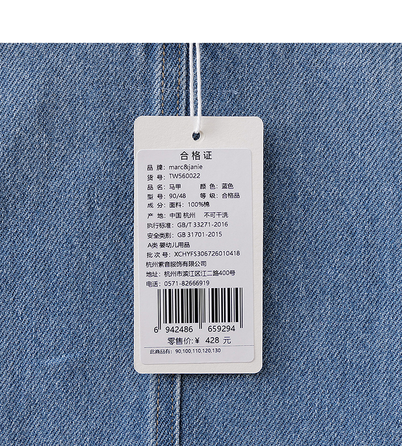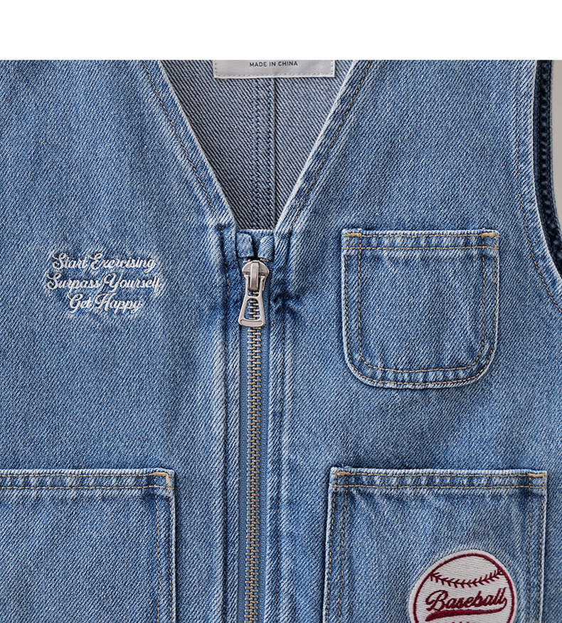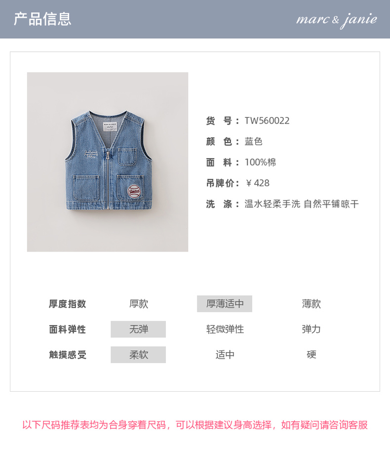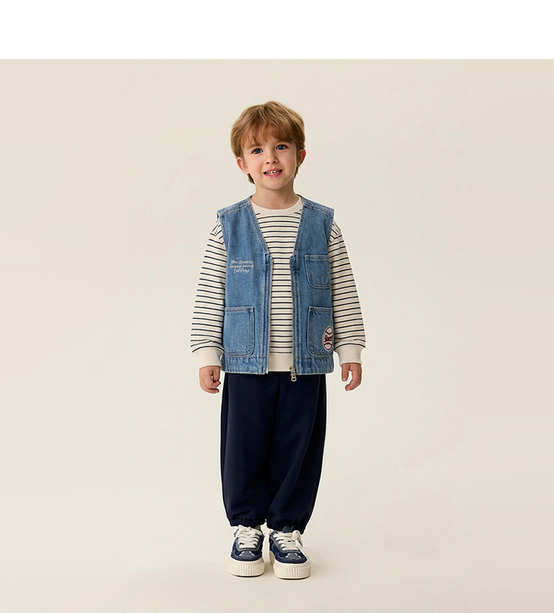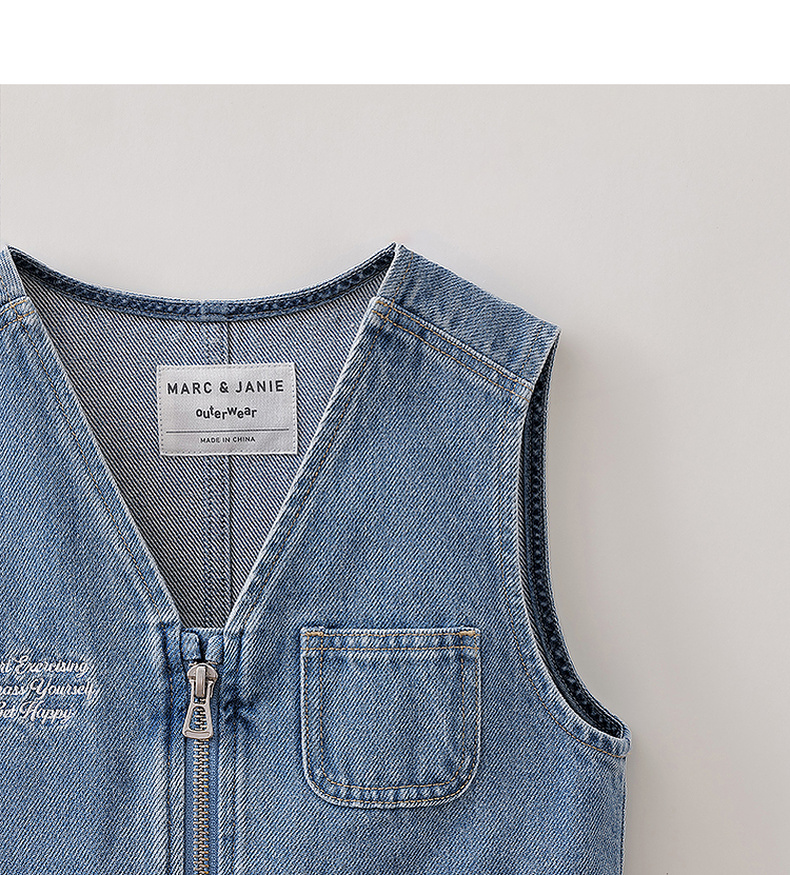 马克珍妮复古棒球男童V领牛仔马甲2026年春装新款560022
