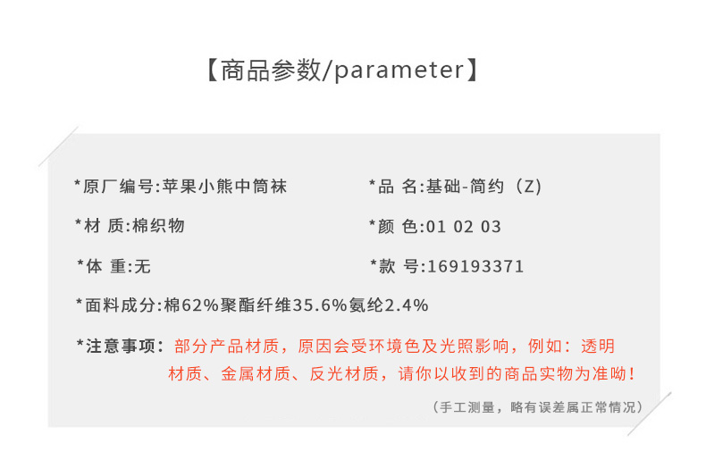 日常百搭苹果小熊中筒袜-简约-纪念日百货门店同款169193371