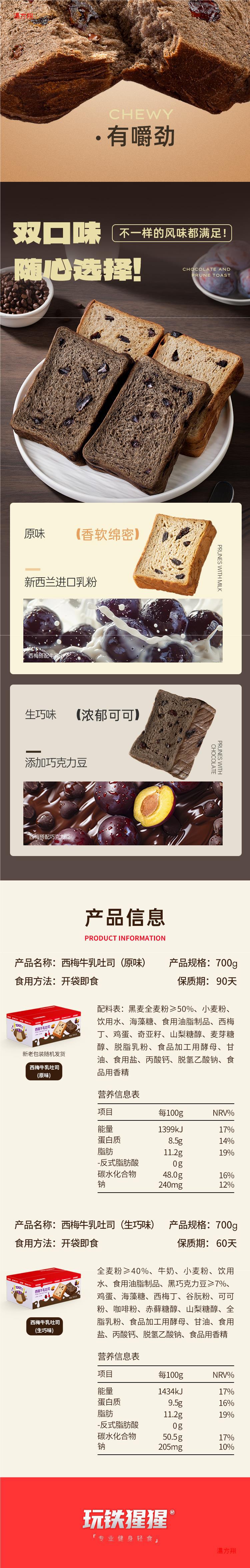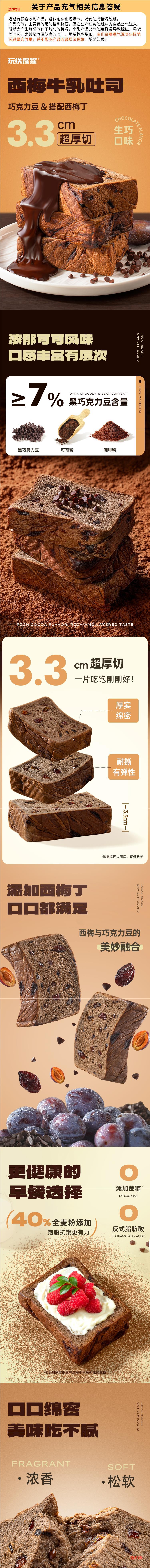 【口感丰富有层次!生巧西梅牛乳厚切吐司】西梅与巧克力豆的美妙融合,浓香松软 口口绵密 美味吃不腻!全麦面包巧克力可可风味早餐零食Y