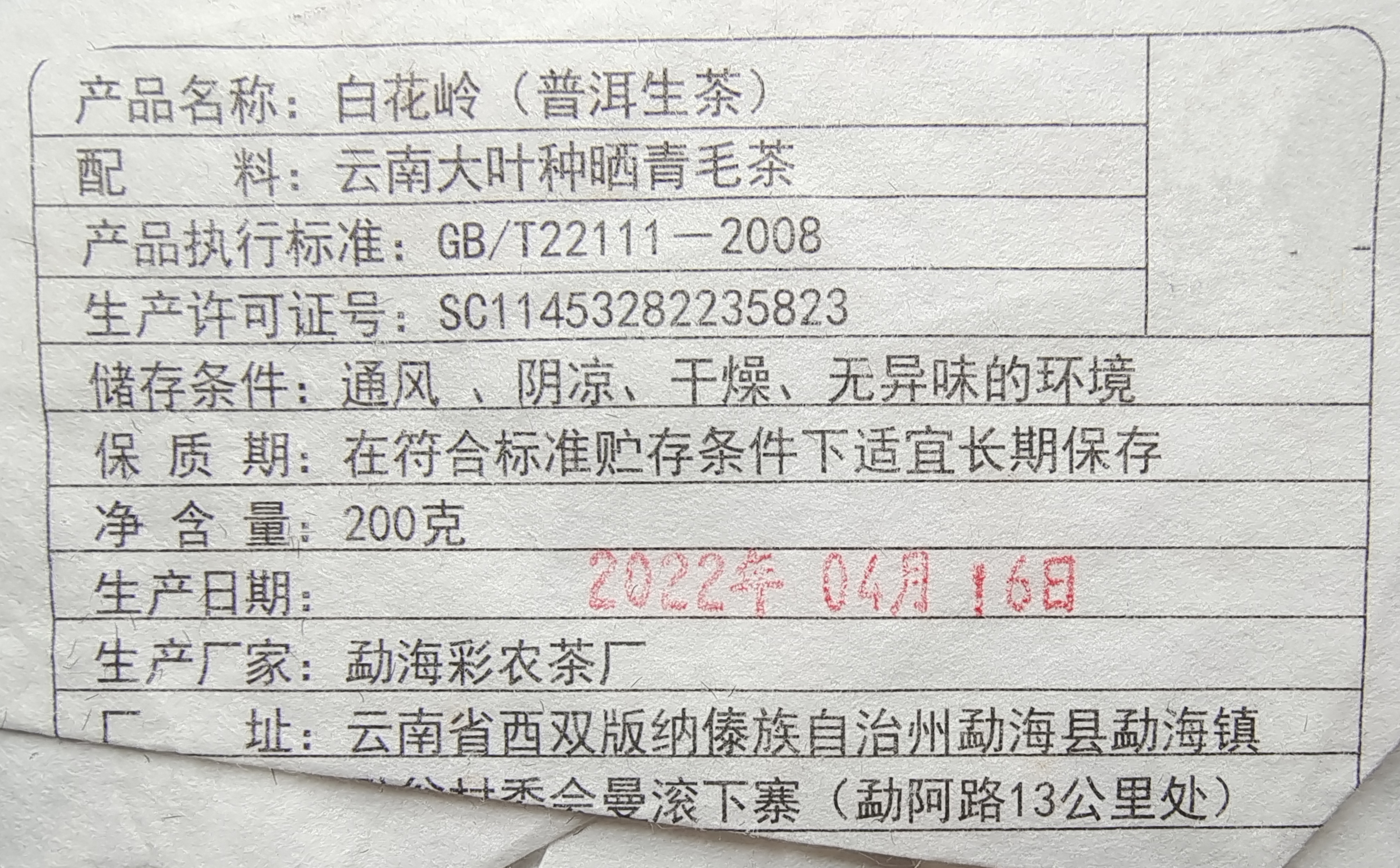 彩农茶|白花岭·2022春古树纯料青饼