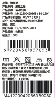 | 裤长 | 45 | 51 | 57 | 63 | 69 |