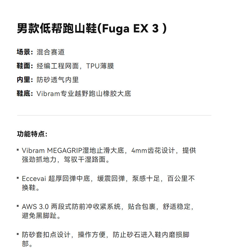 KAILAS凯乐石 男女款低帮跑山鞋(Fuga EX 3 ) KS2613132/KS2613232