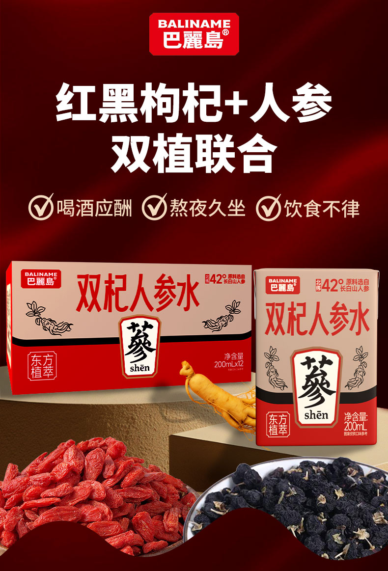 【双植滋养❗️元气满满🔥巴麗島双杞人参水】甄选品质原料制作,精选42°长白山人参,红黑枸杞+人参双植联合,东方植萃参杞滋养元气护航熬夜久坐L-d