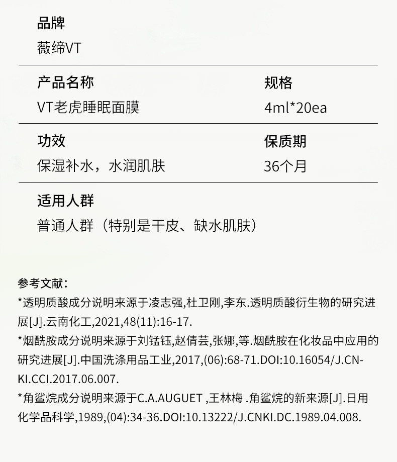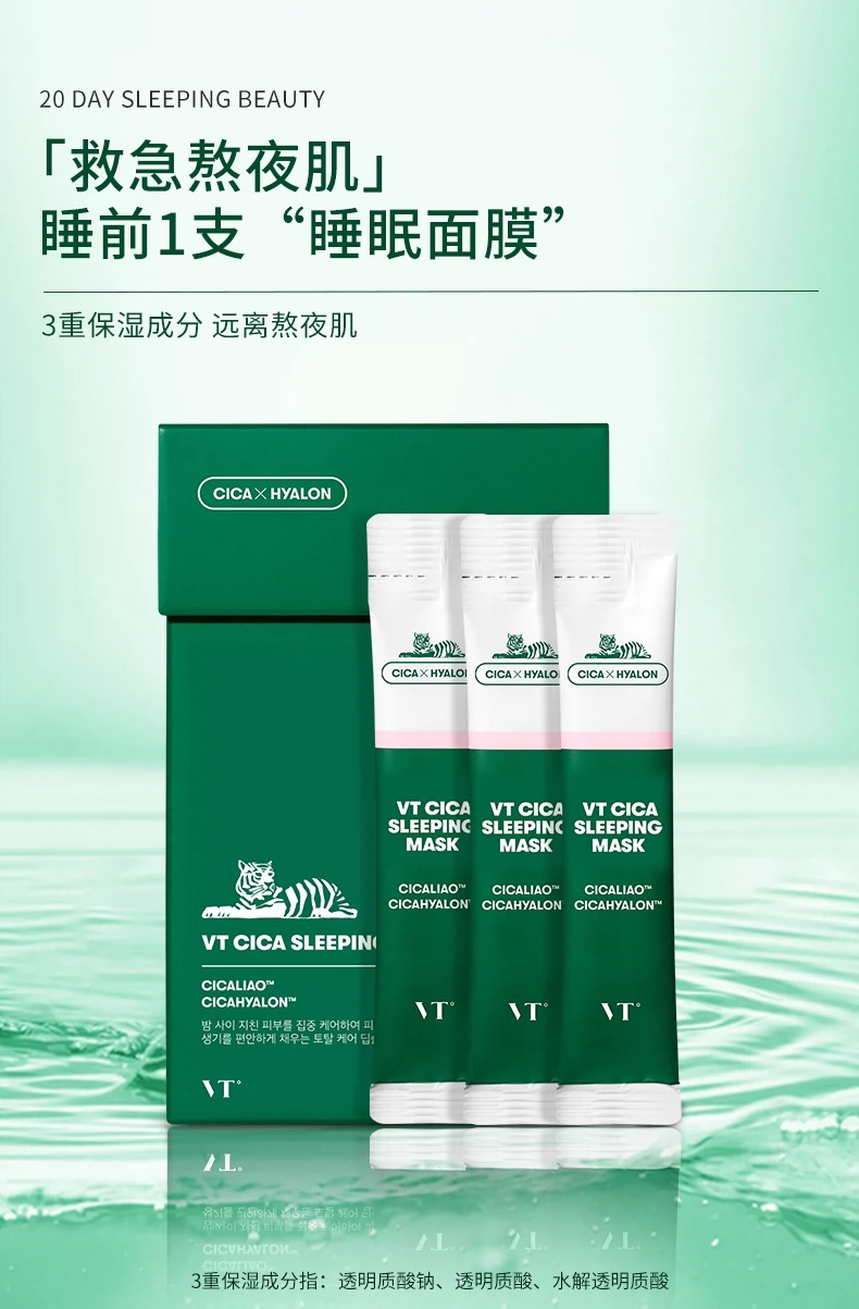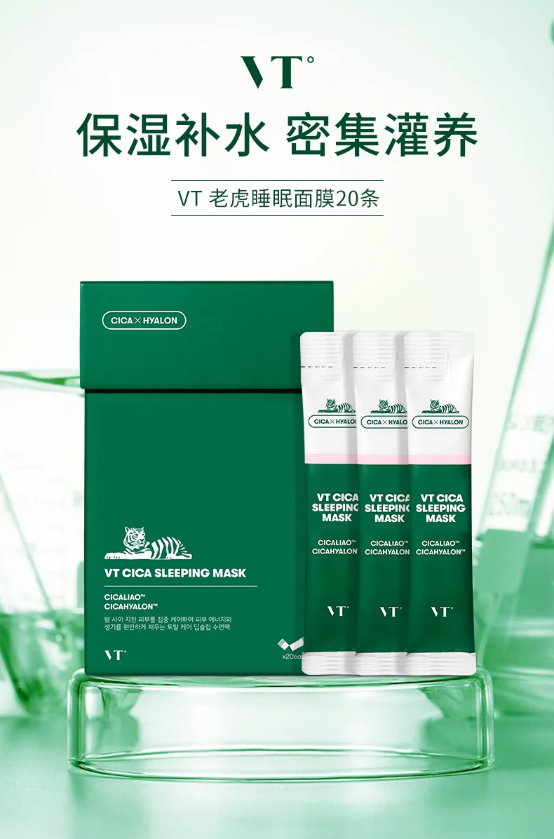 韩国 VT范特 老虎积雪草保湿精华睡眠免洗涂抹面膜 20支/盒