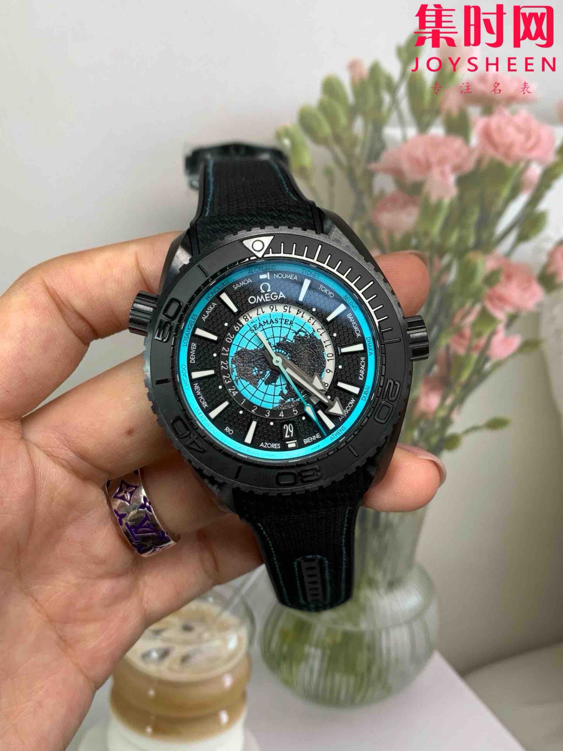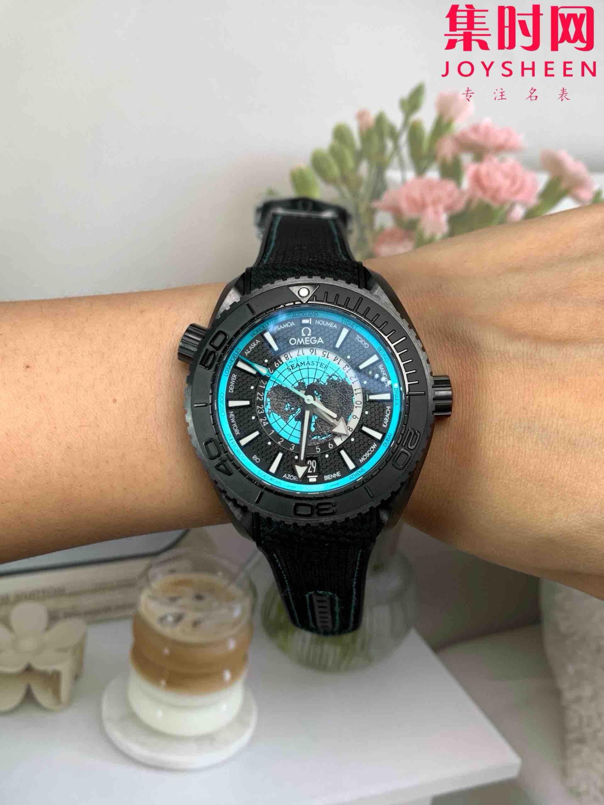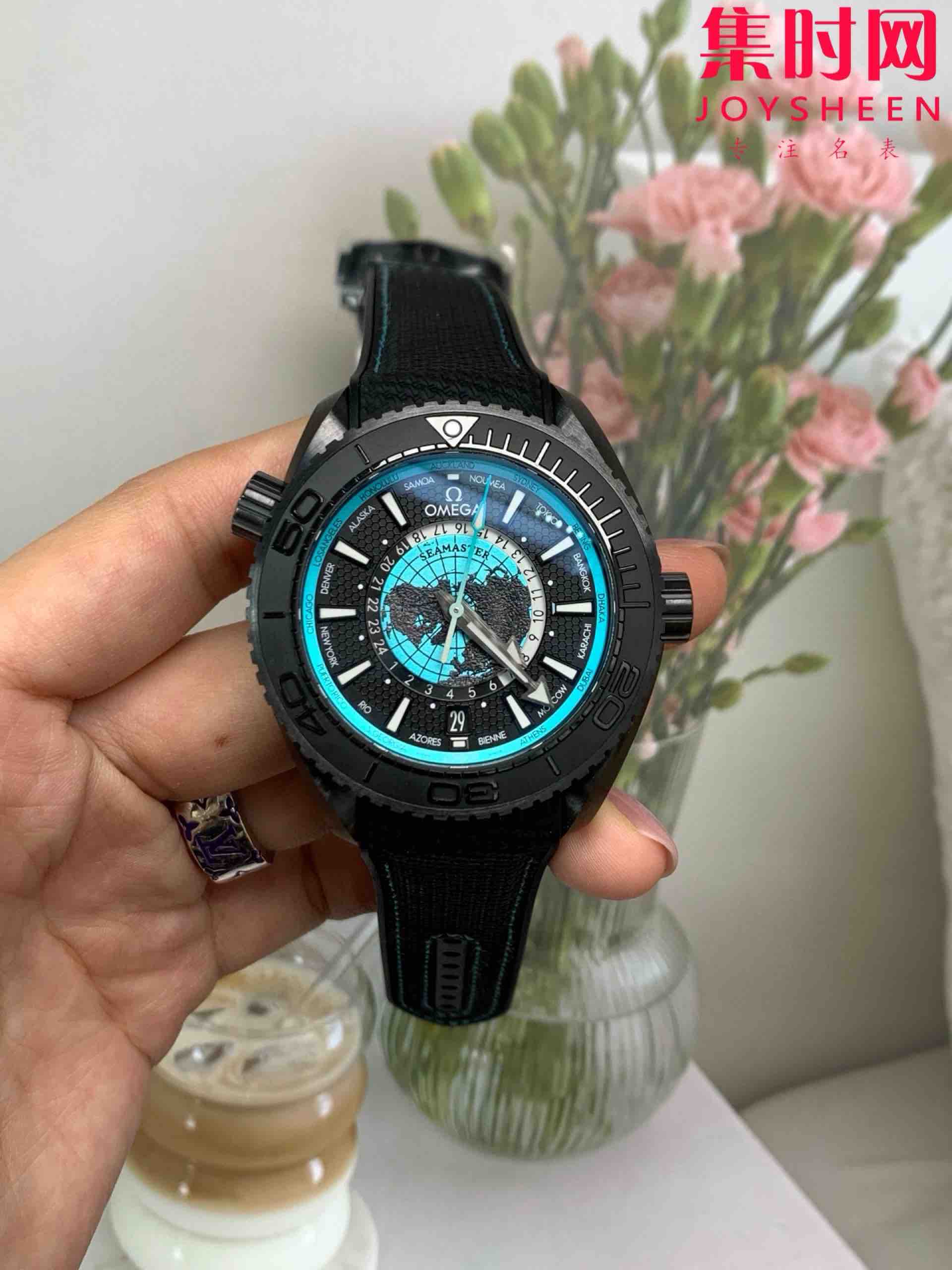 欧米茄 VS海马600米系列 海洋宇宙 海马世界时陶瓷壳 蒂芙尼蓝 男士腕表 表径45.5mm 8938一体机 快跳日历 双色夜光 新“陶瓷壳”海马600米世界时!海马系列海洋宇宙世界时腕表!