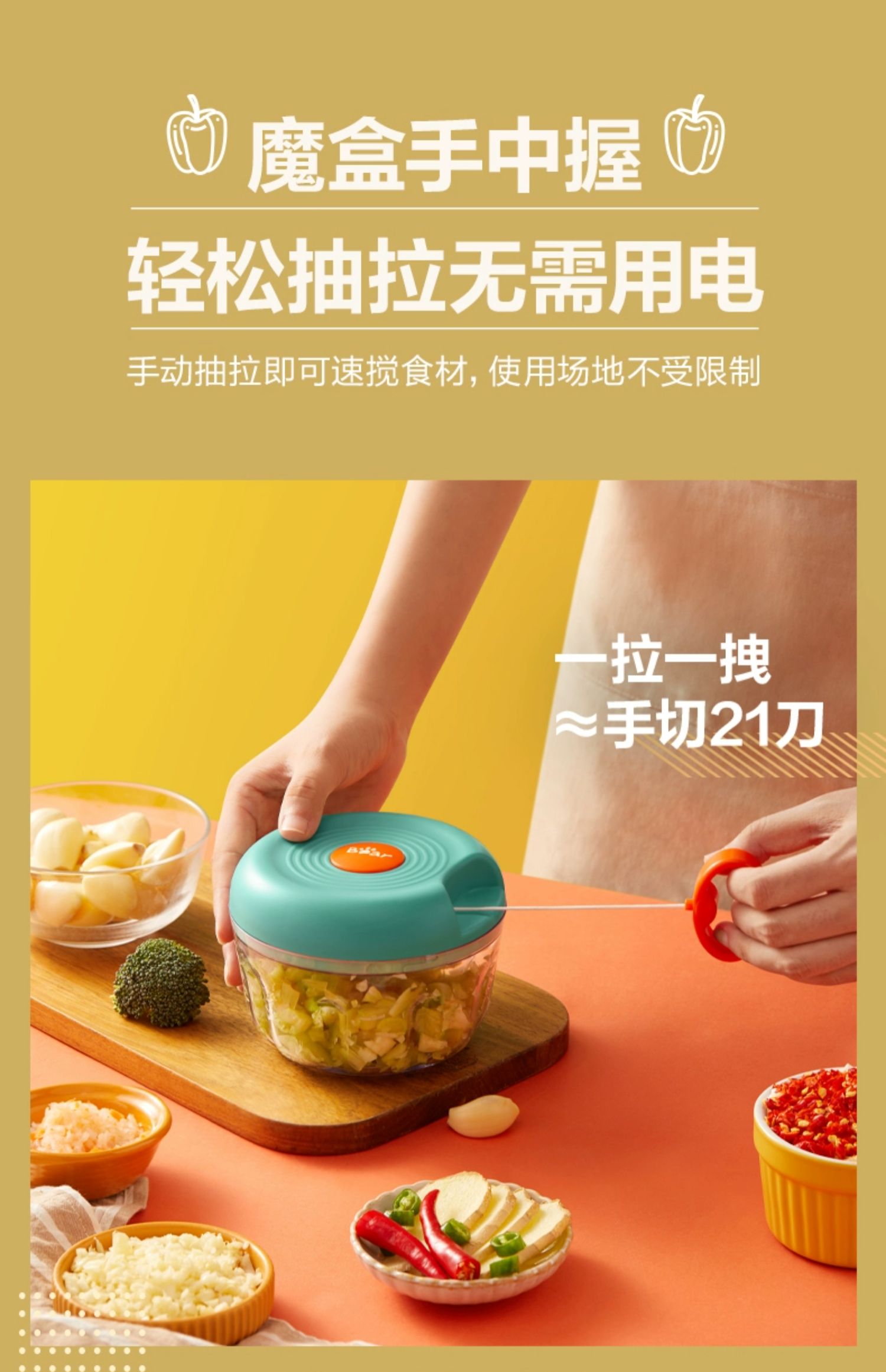 小熊 手动 拉蒜器 多功能食材料理器