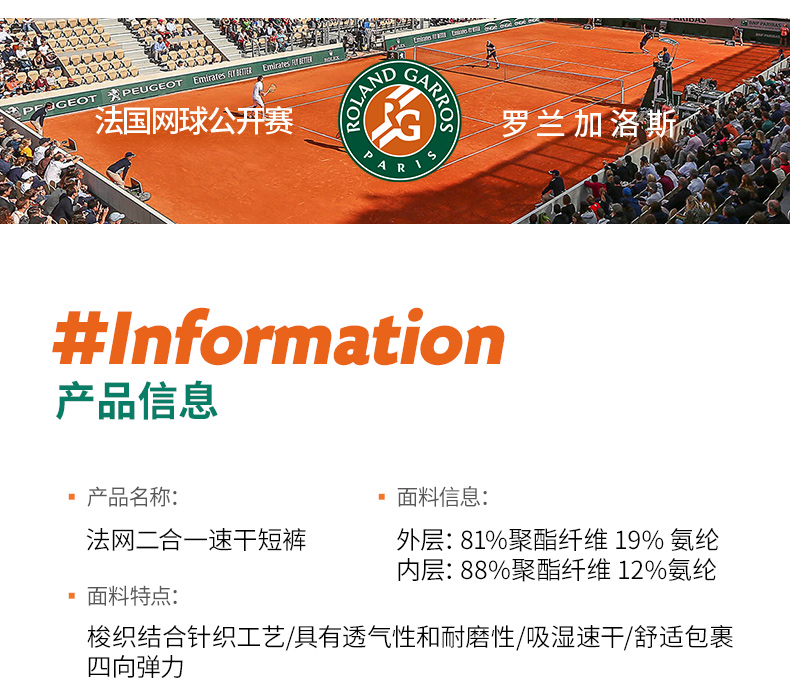 罗兰加洛斯法网速干运动短裤夏季男梭织透气专业网球训练五分裤