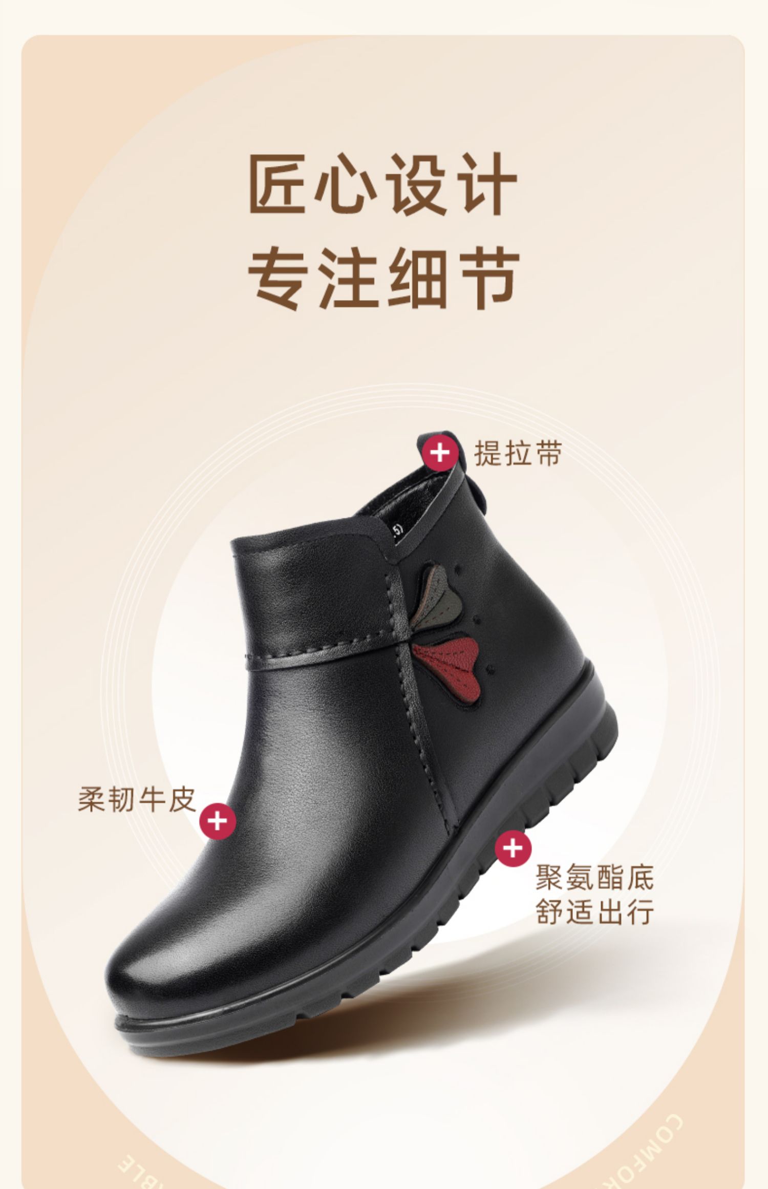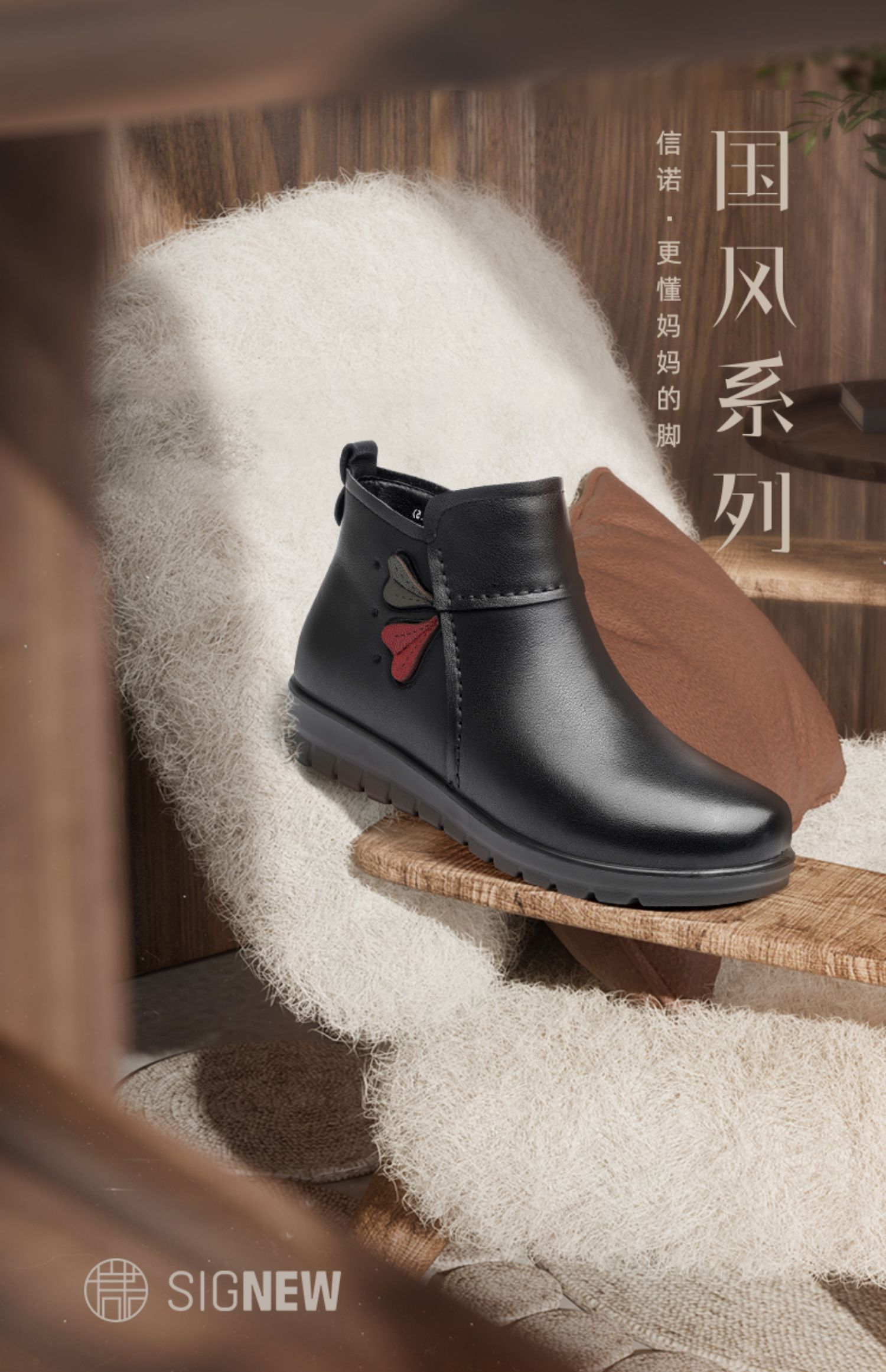 信诺真皮时装女靴厚底靴子2024冬季新款加绒加厚短靴妈妈棉鞋女鞋M739-2H
