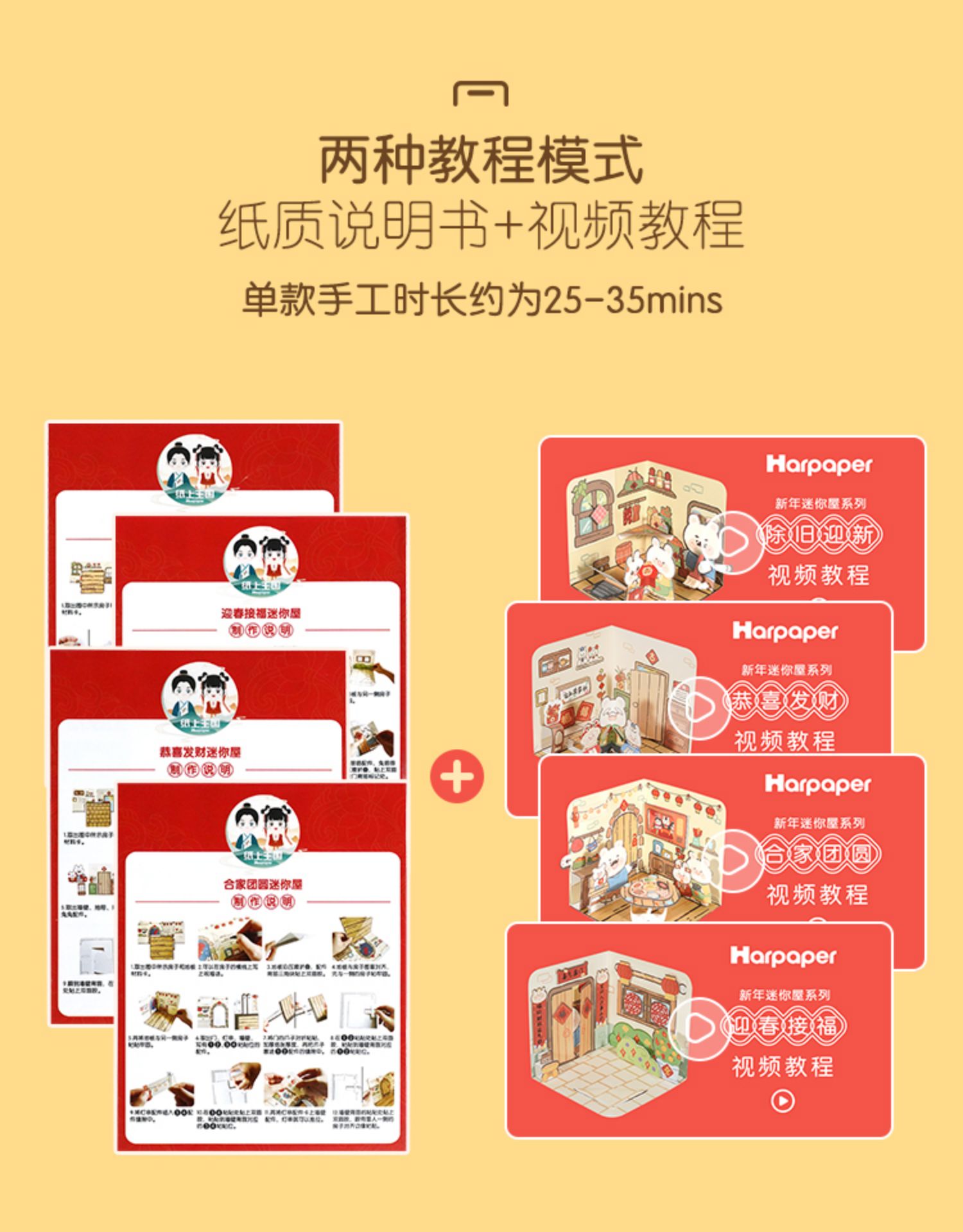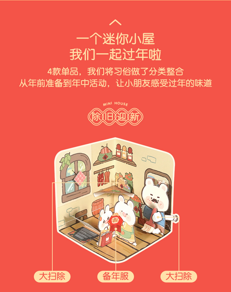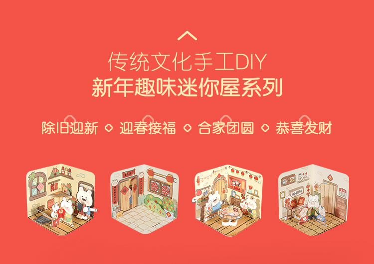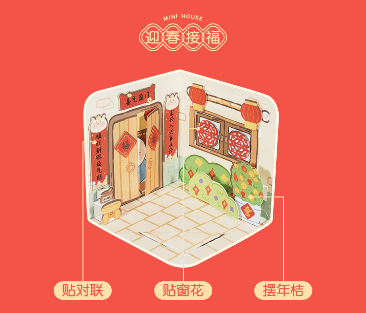 【新年趣味迷你屋手工DIY】Harpaper儿童立体屋手工DIY材料包 传统文化手工 了解中国传统文化习俗