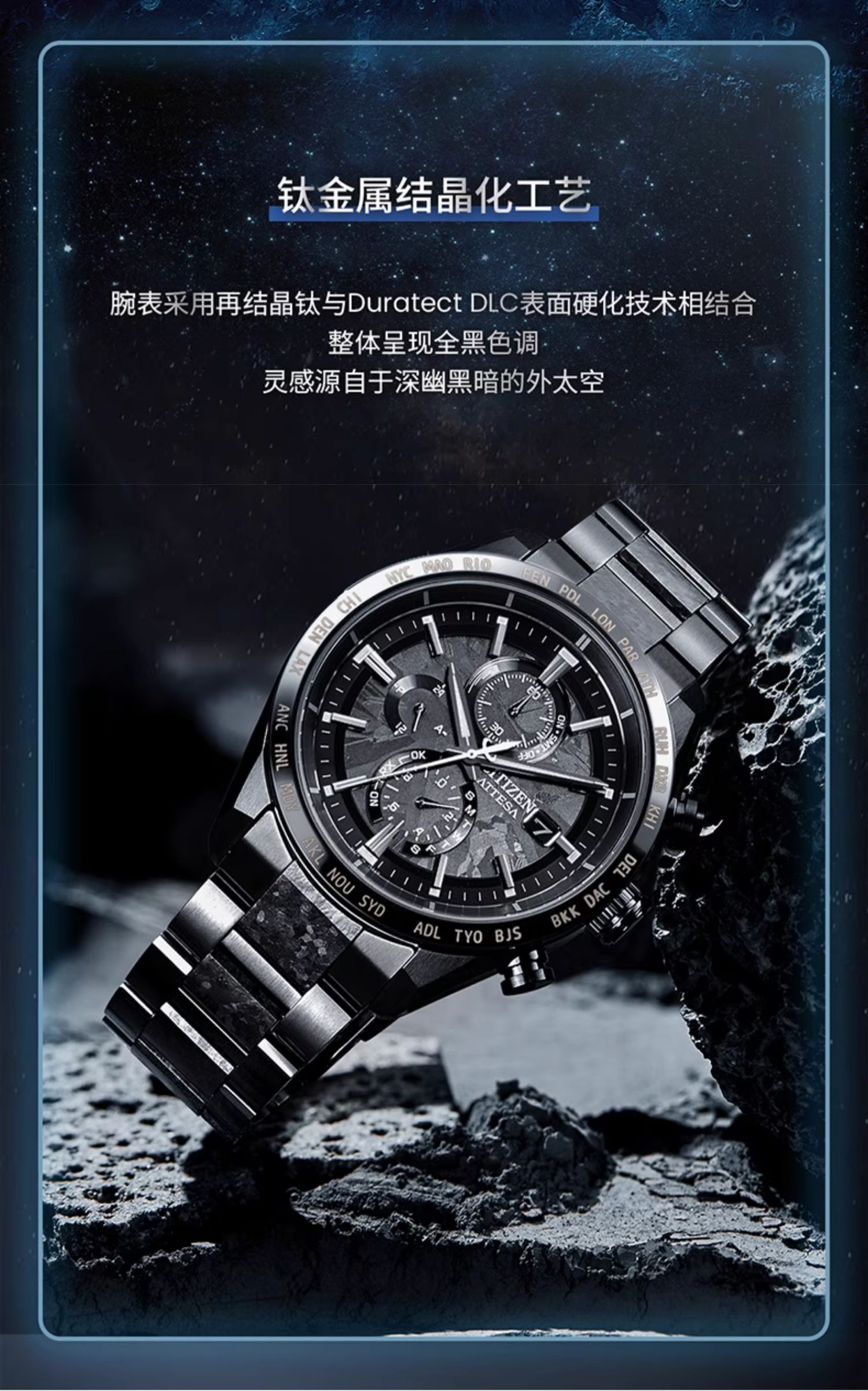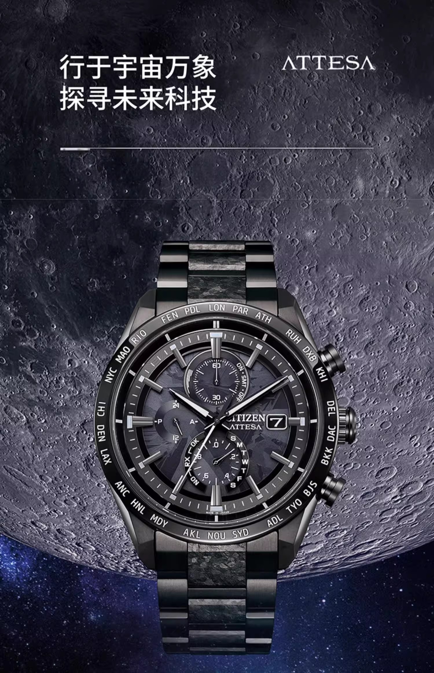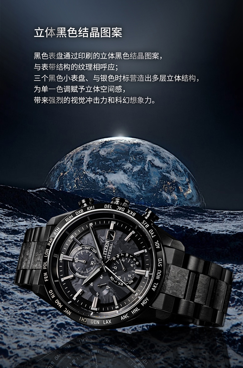 CITIZEN西铁城限量款光动能电波舒博™钛酷黑时尚男表AT8287-62E