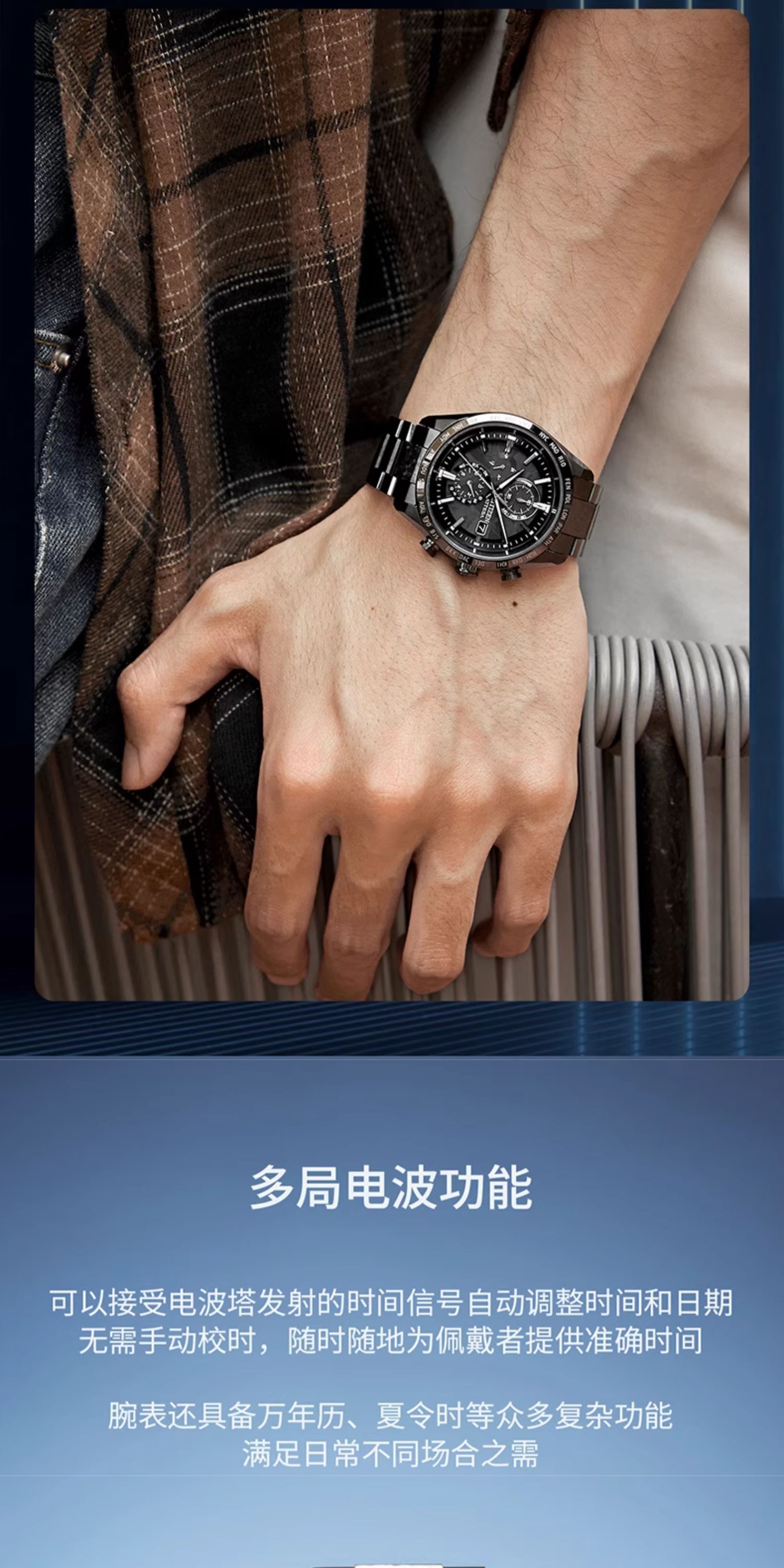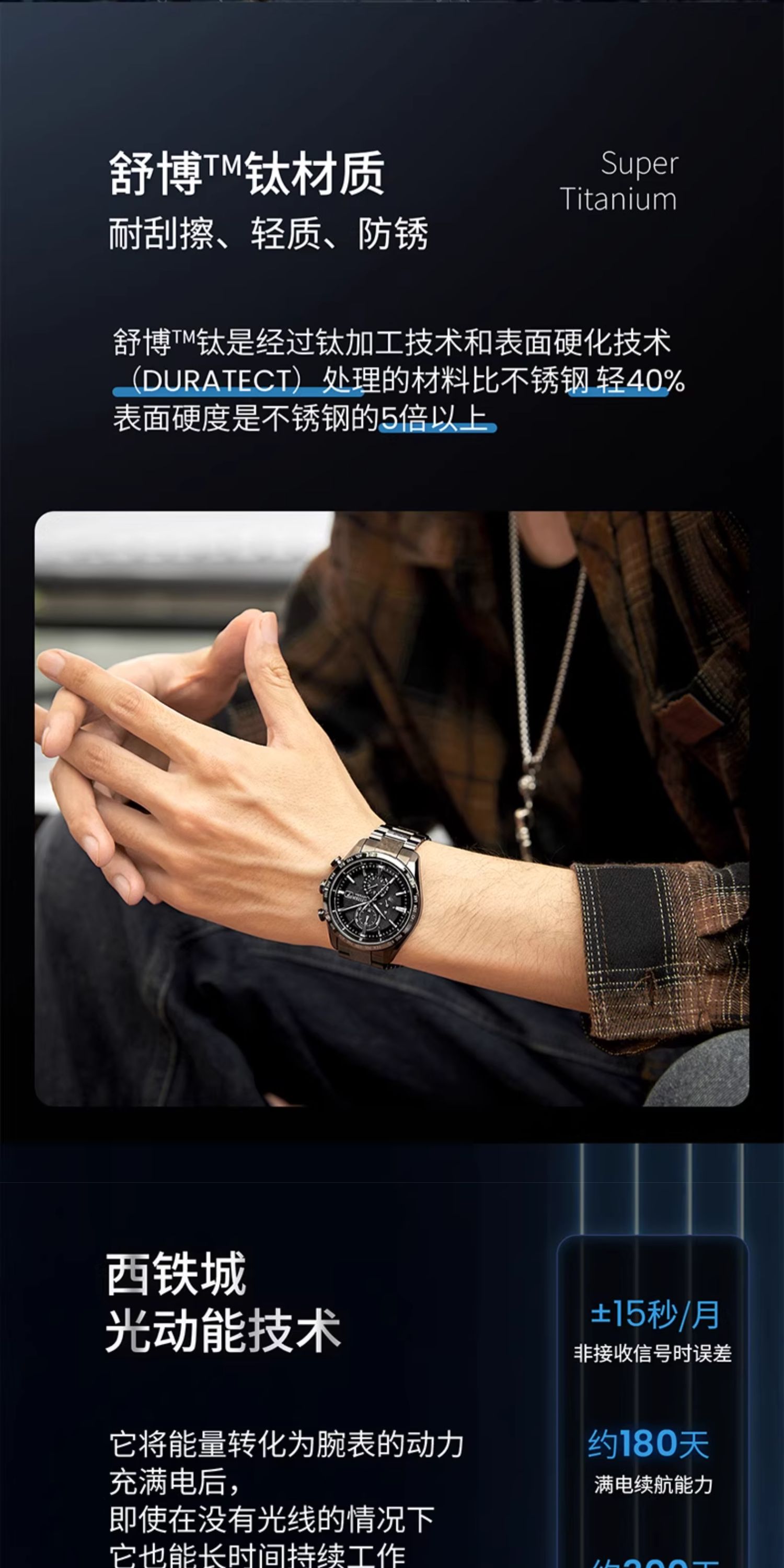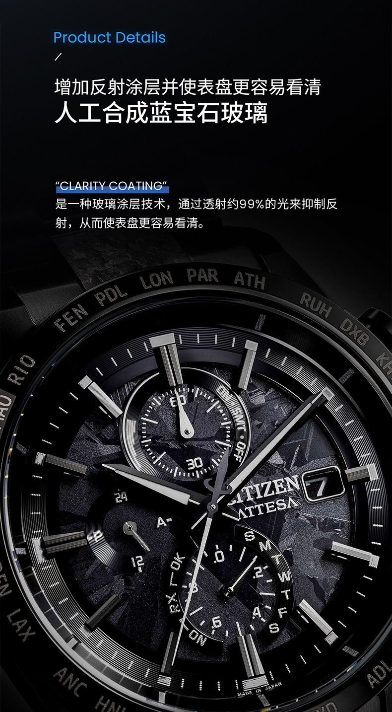 CITIZEN西铁城限量款光动能电波舒博™钛酷黑时尚男表AT8287-62E