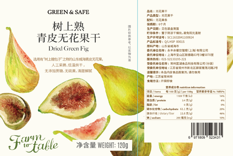 树上熟青皮无花果干 Dried Green Fig 120g