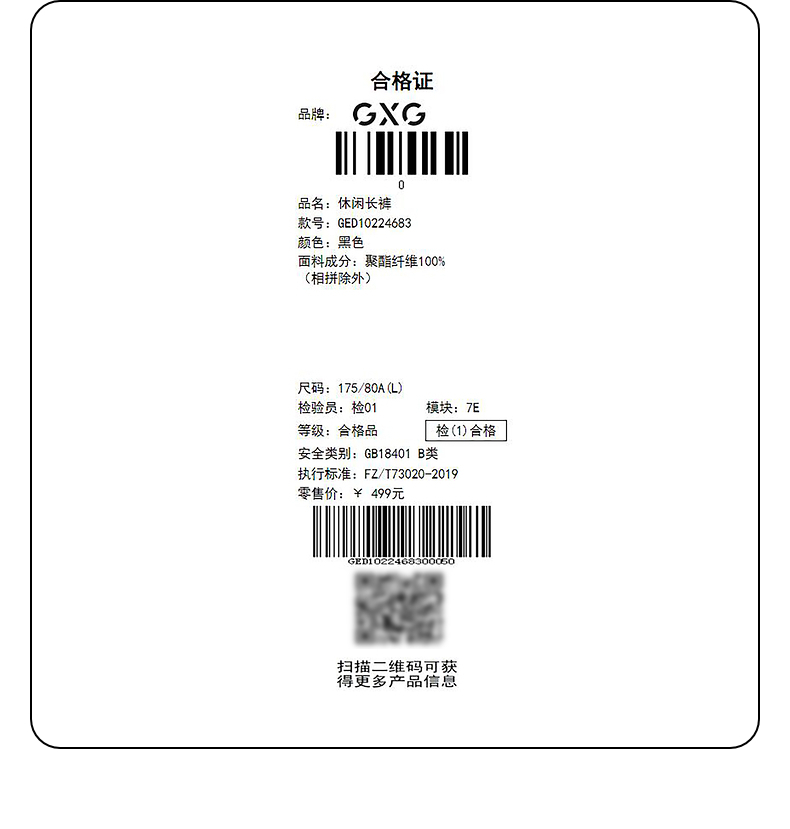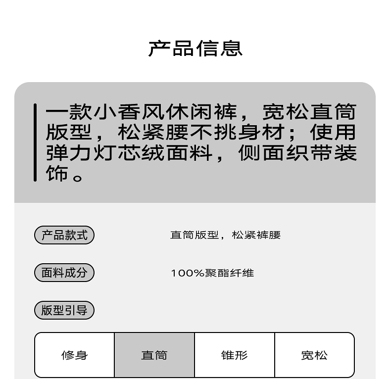 GXG男装 城市定义灯芯绒休闲宽松直筒长裤休闲裤 秋季热卖