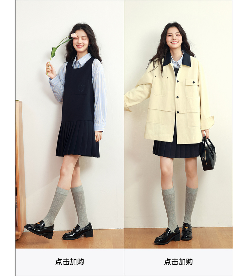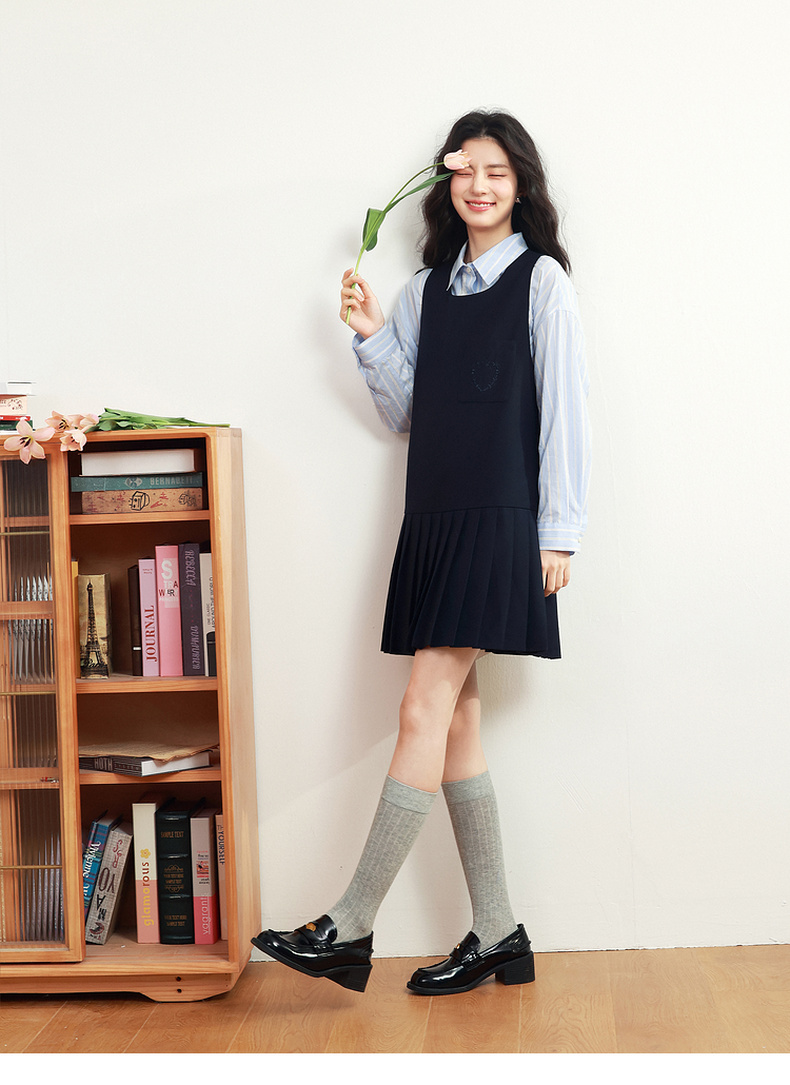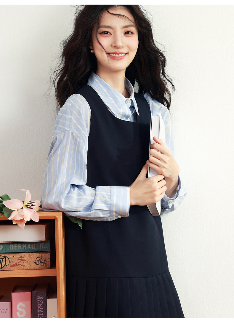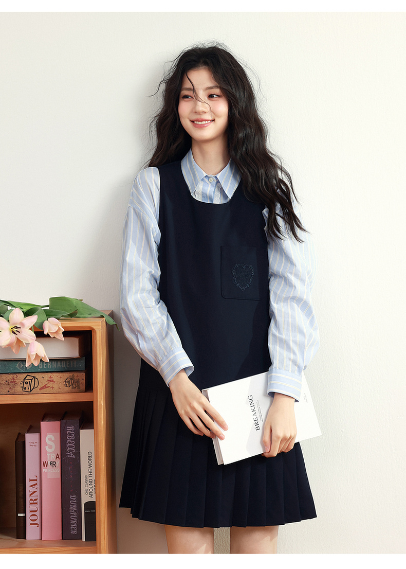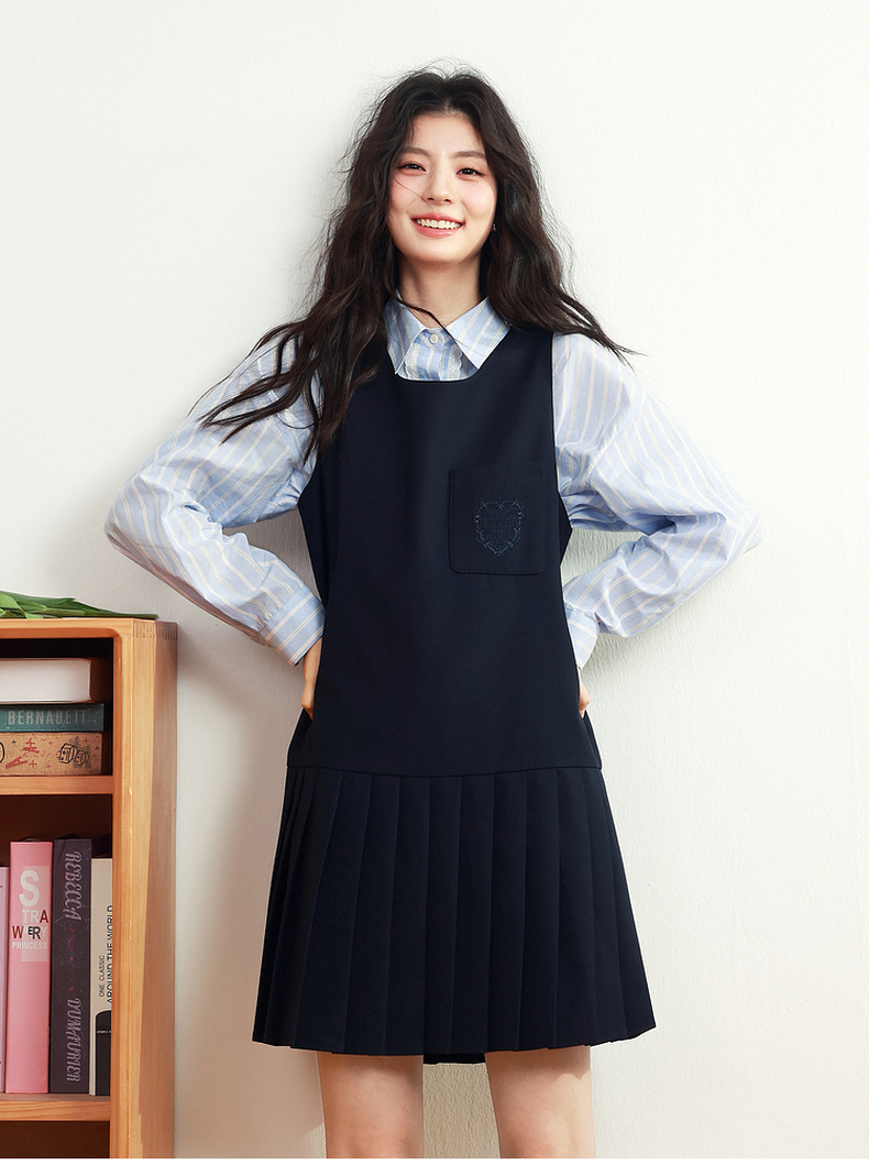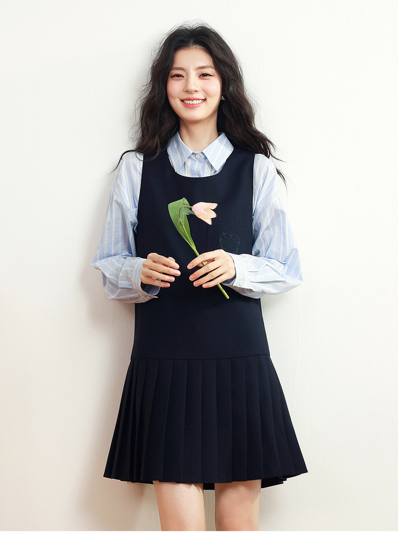 【严选】诗凡黎甜美学院风连衣裙套装2025年春新款显瘦减龄气质漂亮背心裙7G1190101