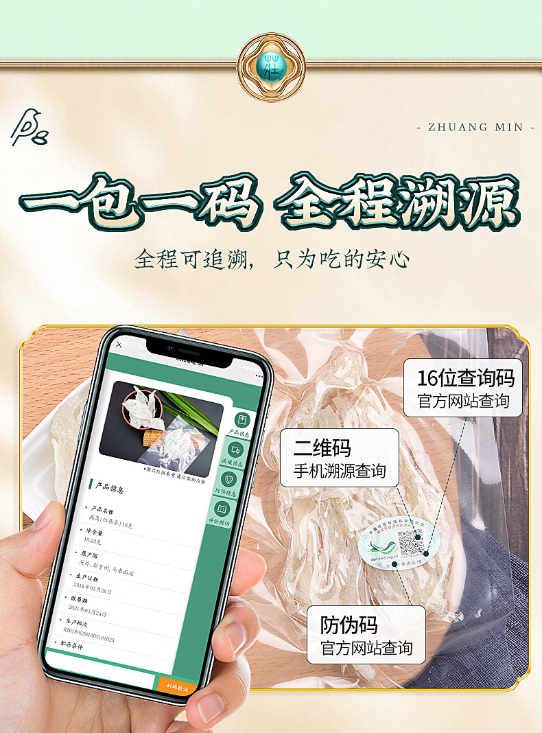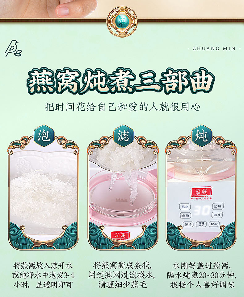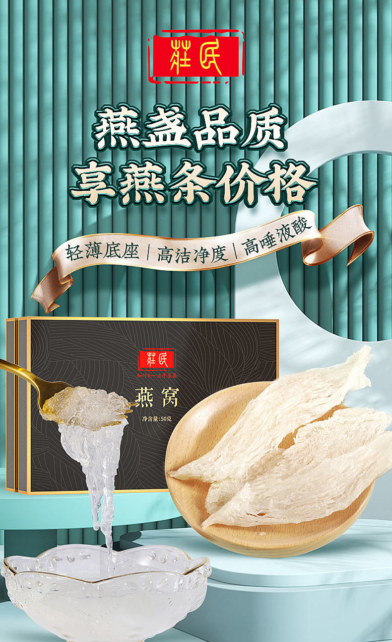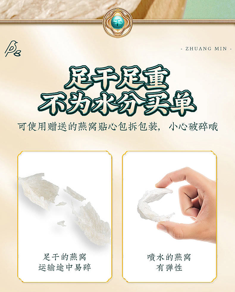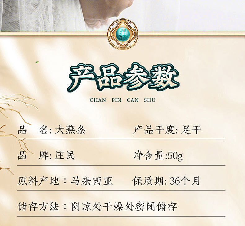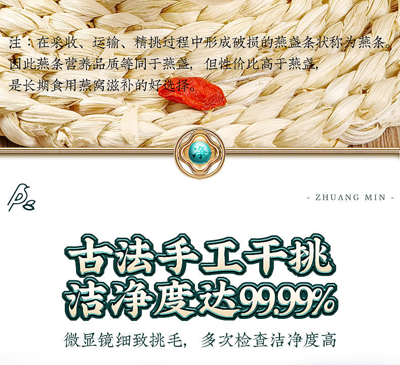 庄民 燕窝 干大燕盏燕窝条 正规原料溯源 马来西亚燕条 50g礼盒装