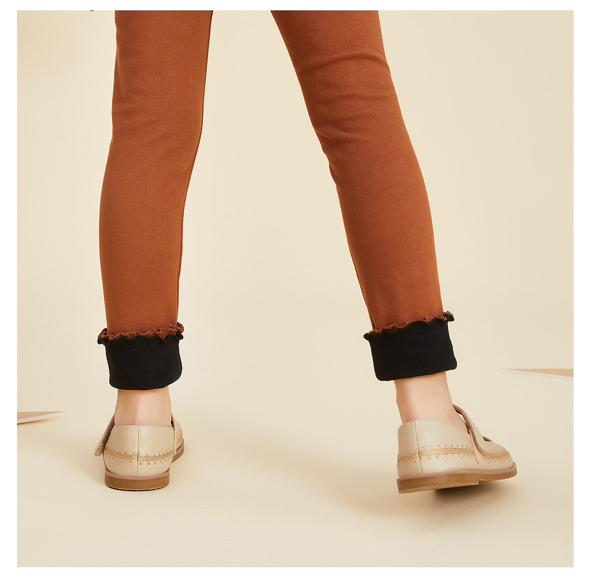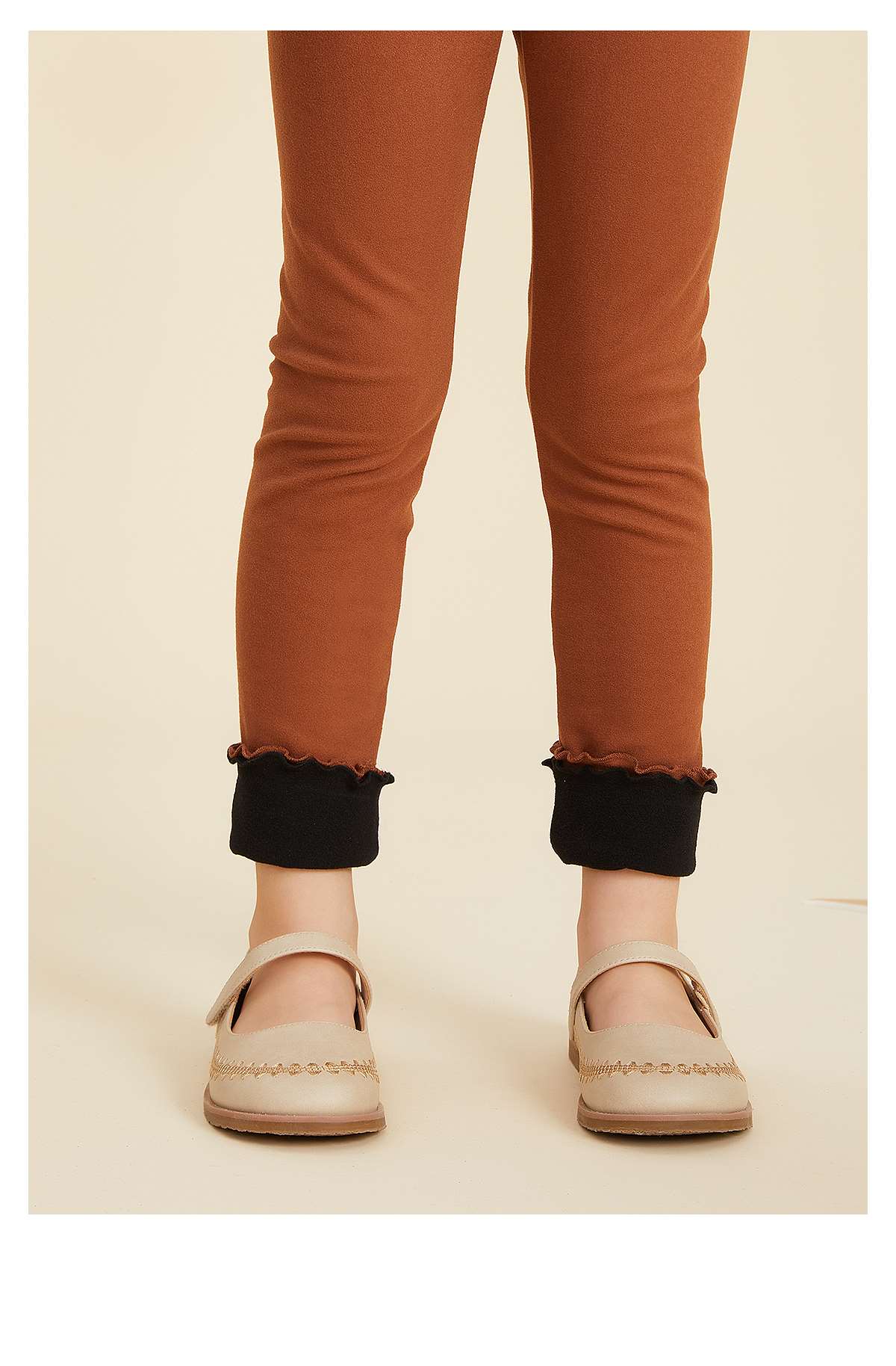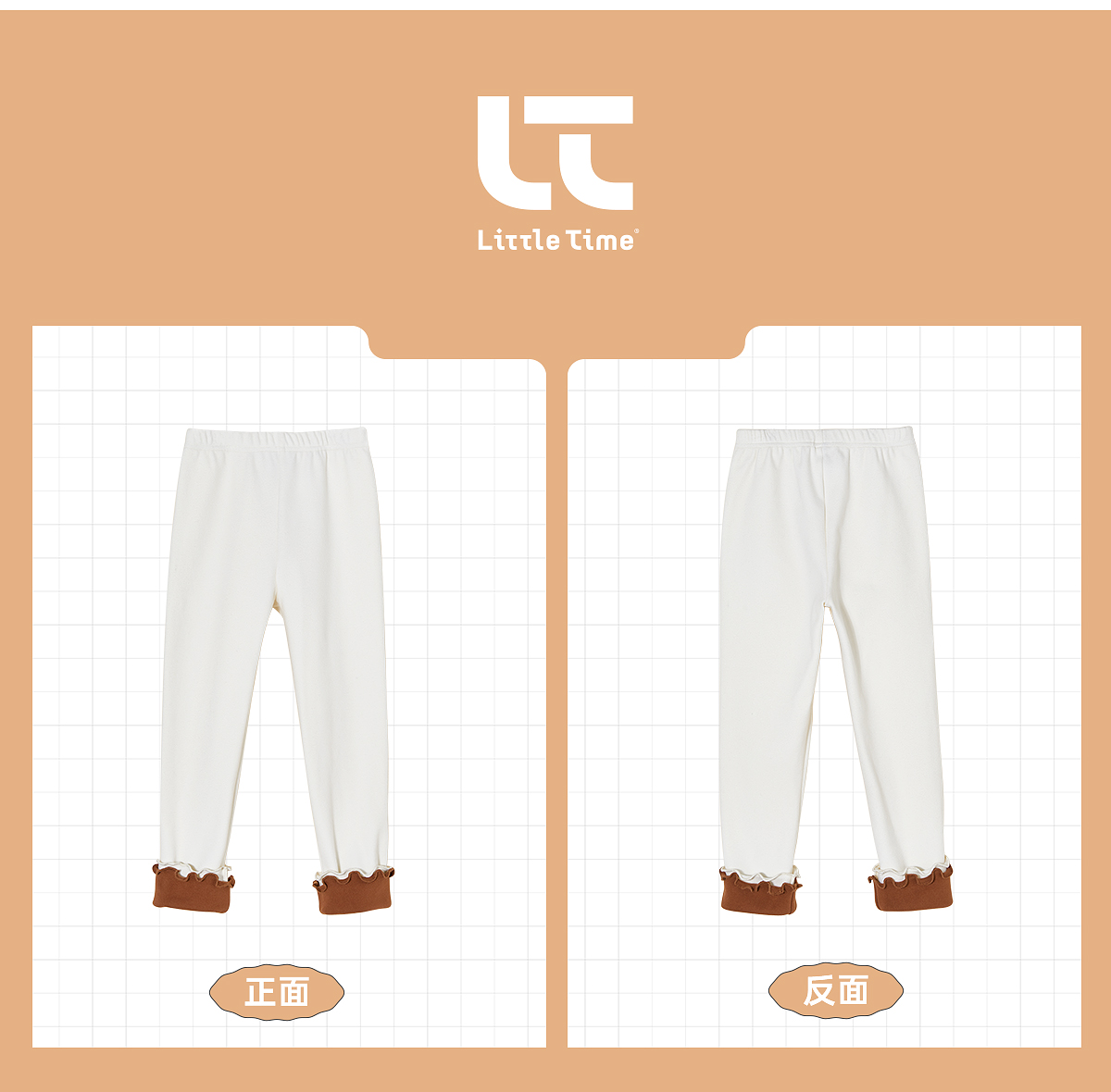 littletime女童打底裤秋冬款拼色磨毛加厚保暖2022新款外穿儿童裤