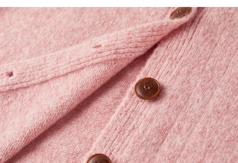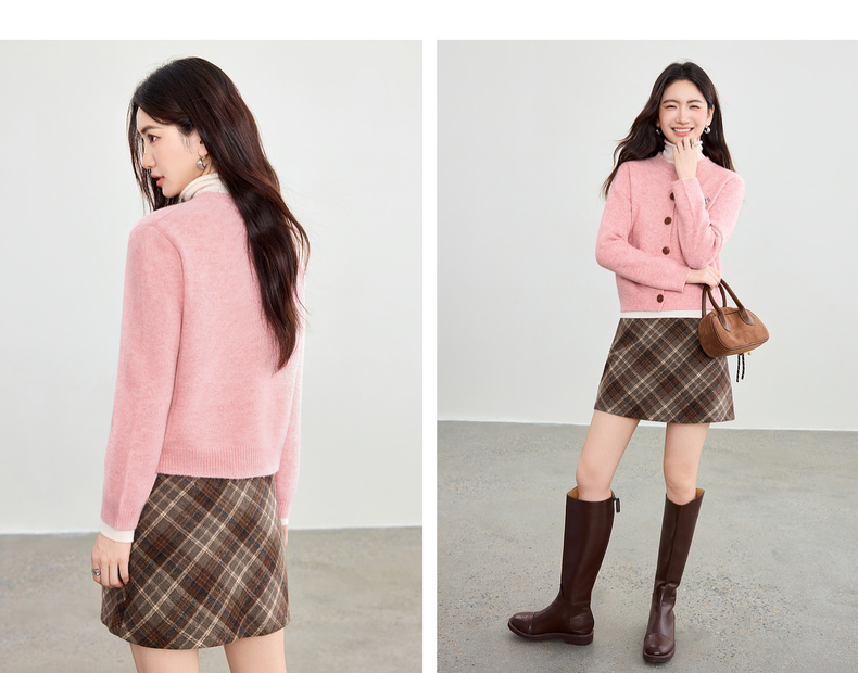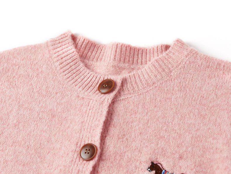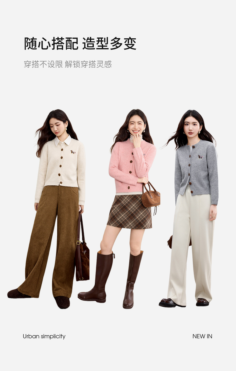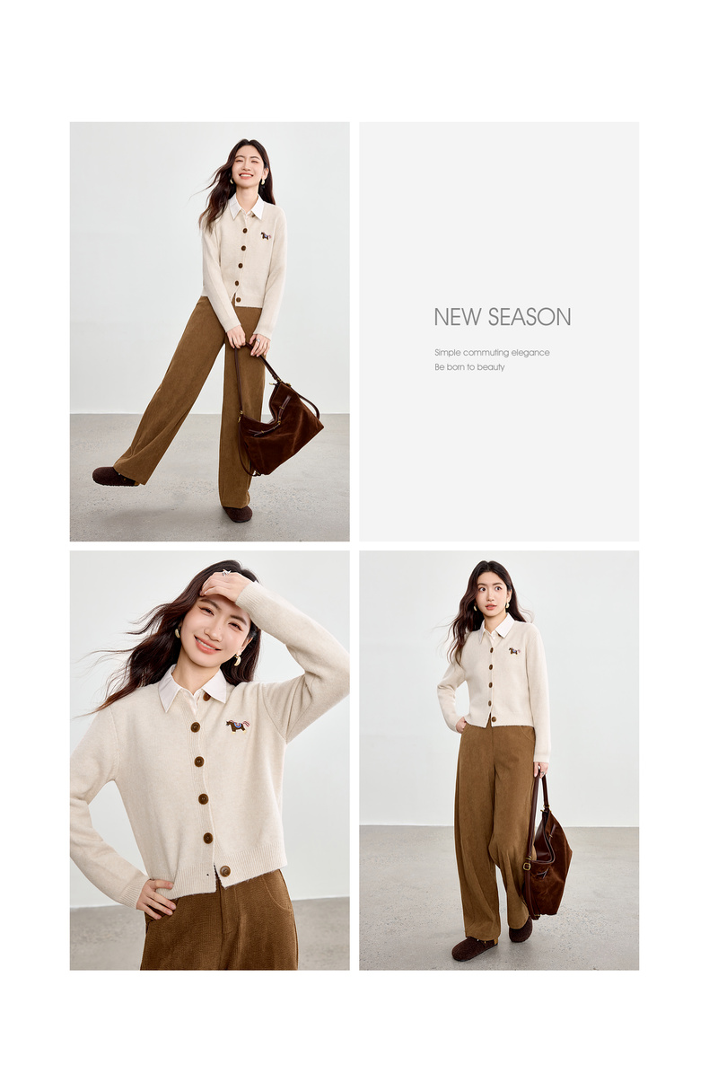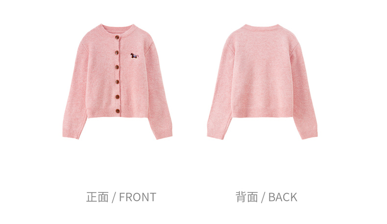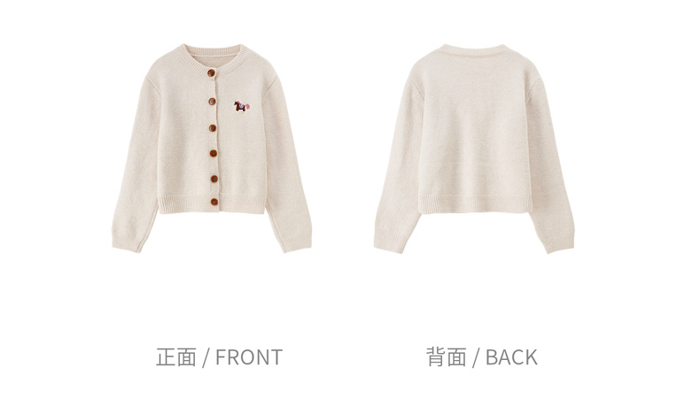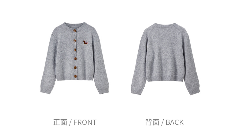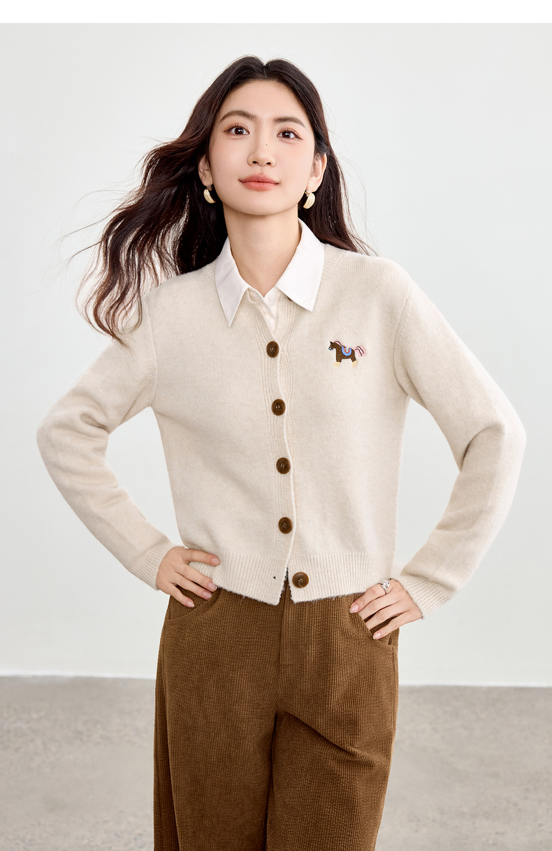 【内购】【含绵羊毛】通勤小马刺绣圆领撞色单排扣落肩长袖超弹开衫毛衣-W53EB2690