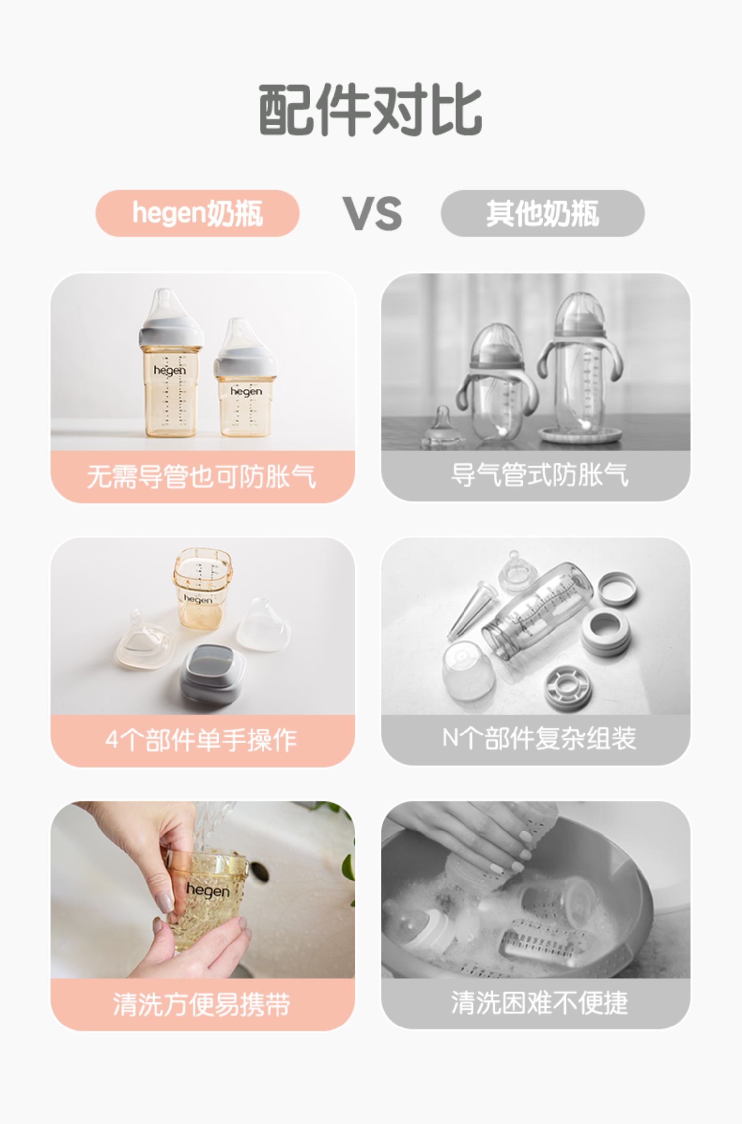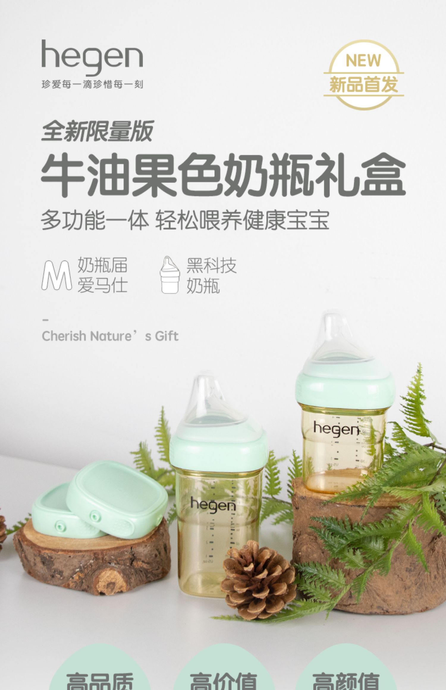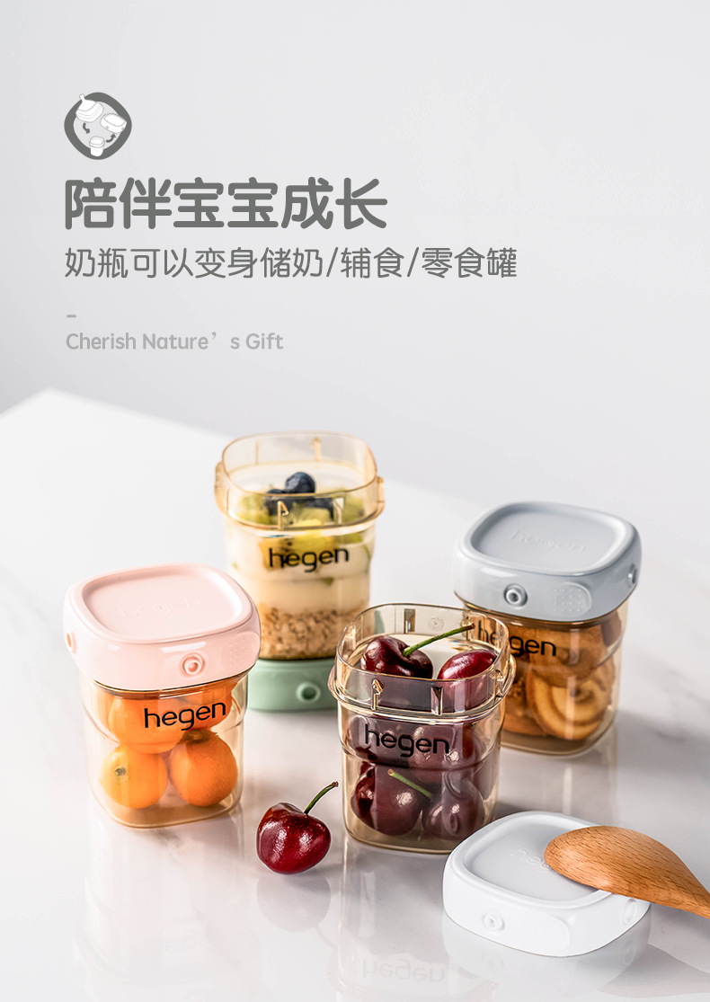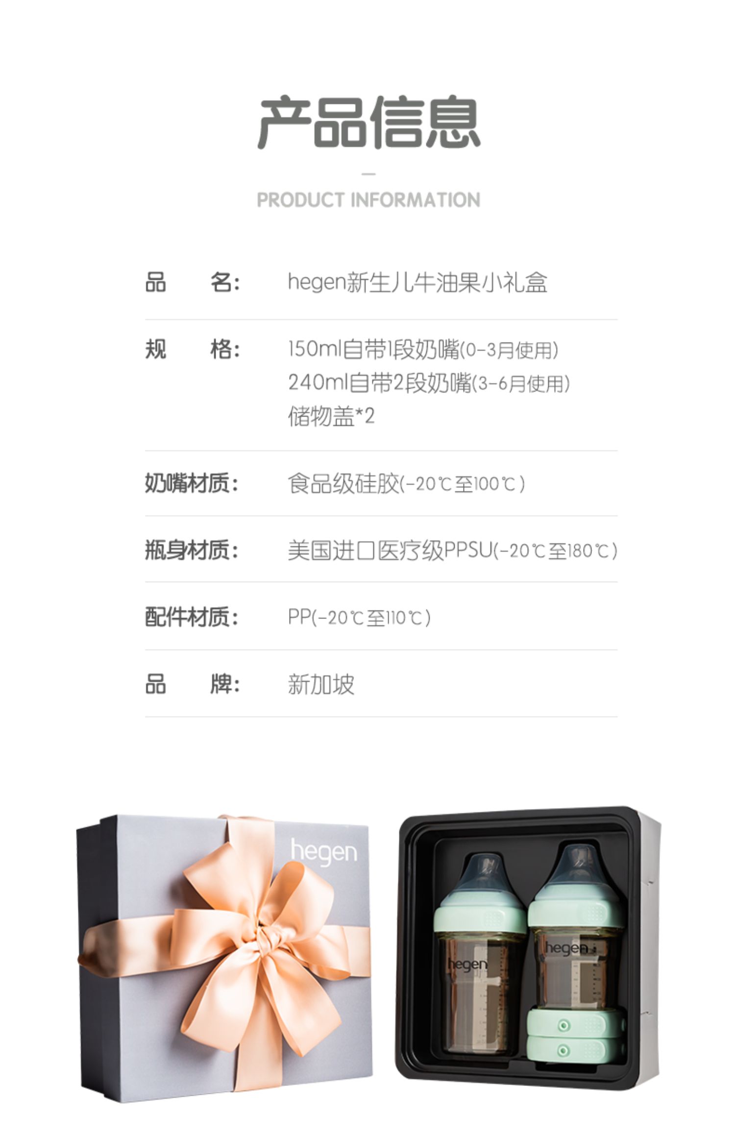 新加坡Hegen小礼盒 进口新生婴儿防胀气宽口径PPSU奶瓶礼盒装 储奶/辅食/零食罐 0-6月