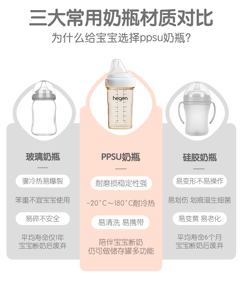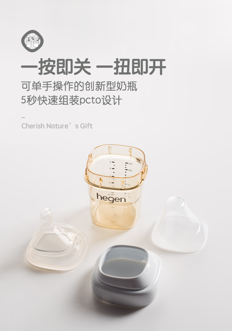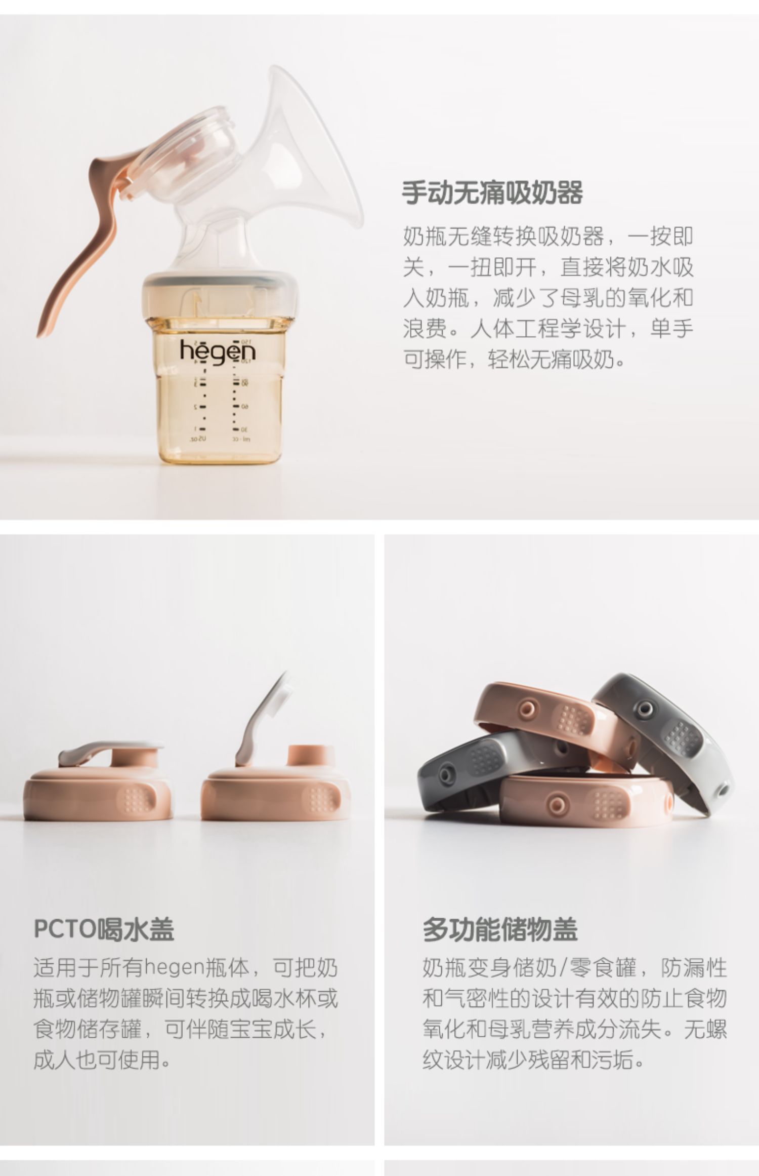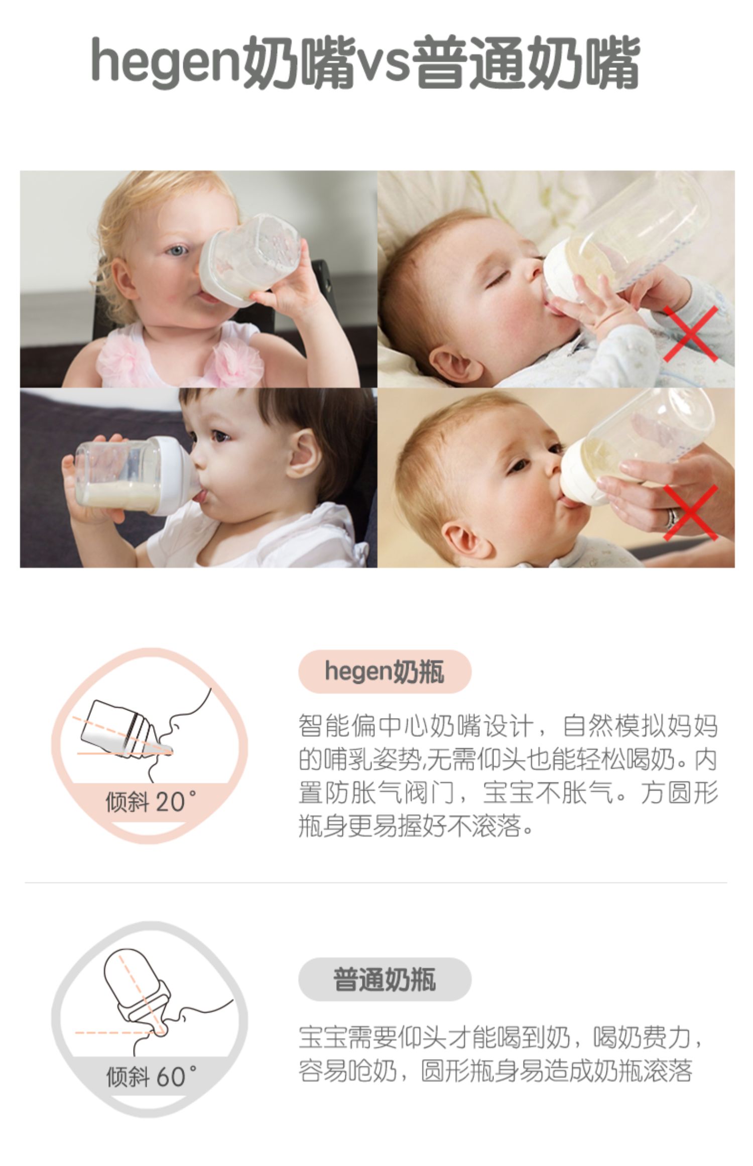 新加坡Hegen小礼盒 进口新生婴儿防胀气宽口径PPSU奶瓶礼盒装 储奶/辅食/零食罐 0-6月