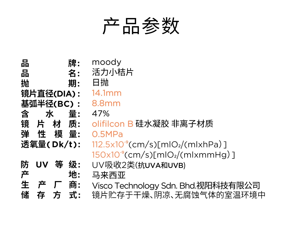 【硅水凝胶】moody小桔片系列透明片日抛 隐形眼镜 10片装
