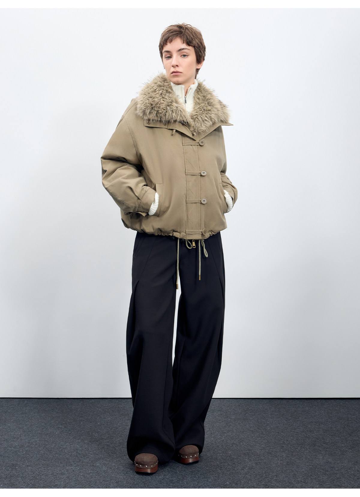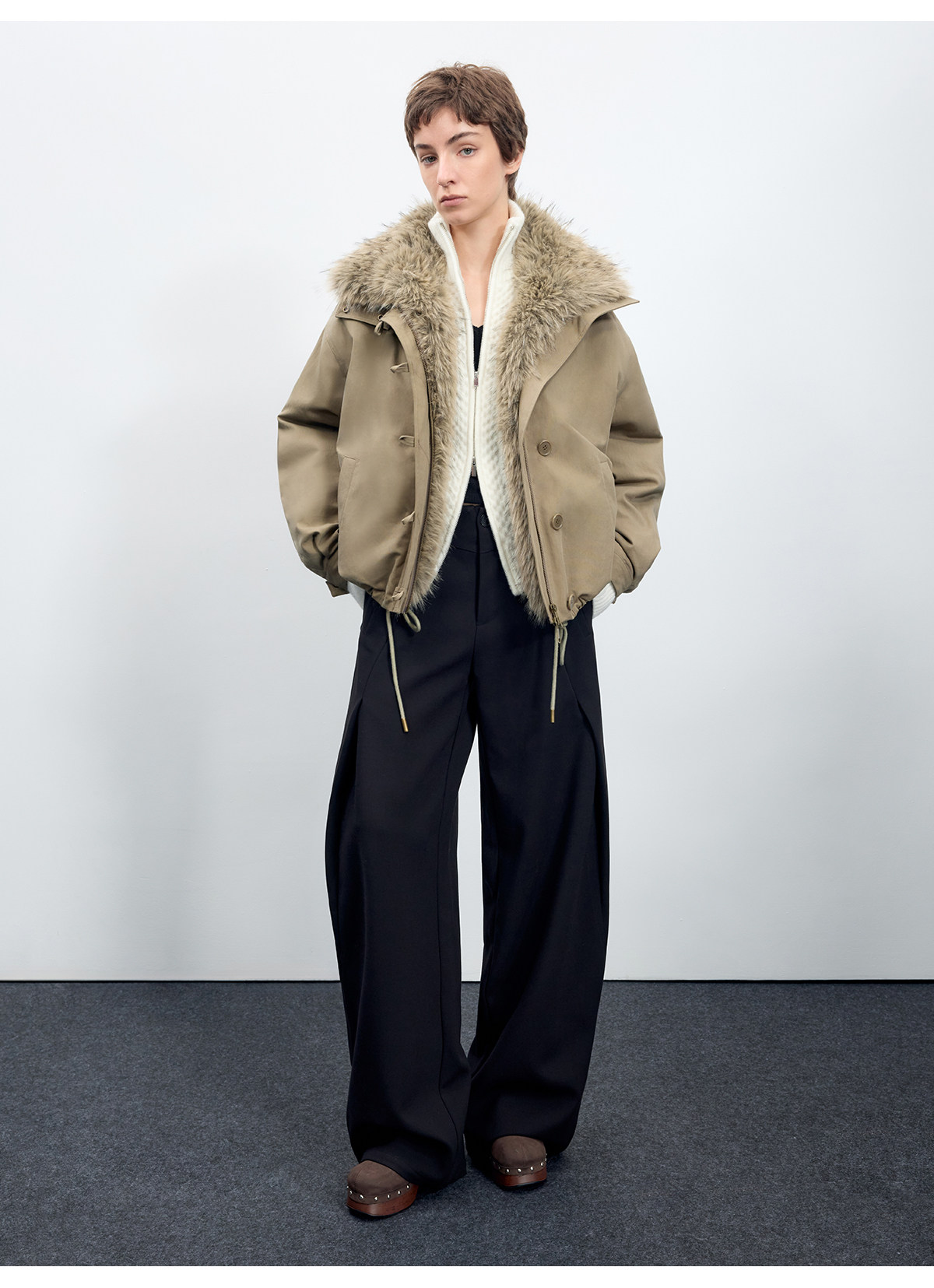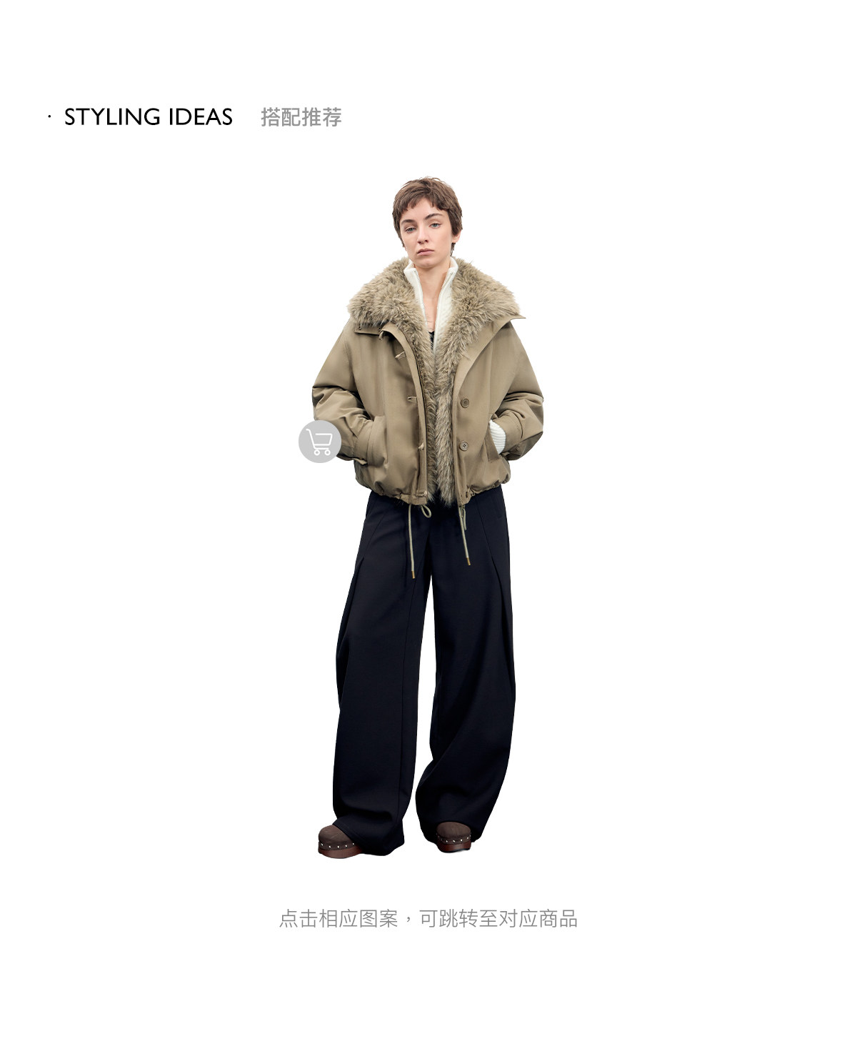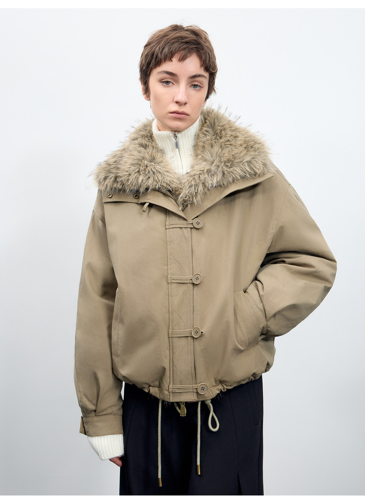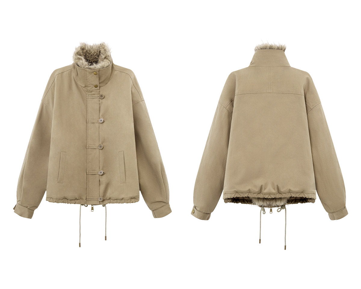 出逃赤岗西/25AWR020/复古可拆卸毛领廓形棉服