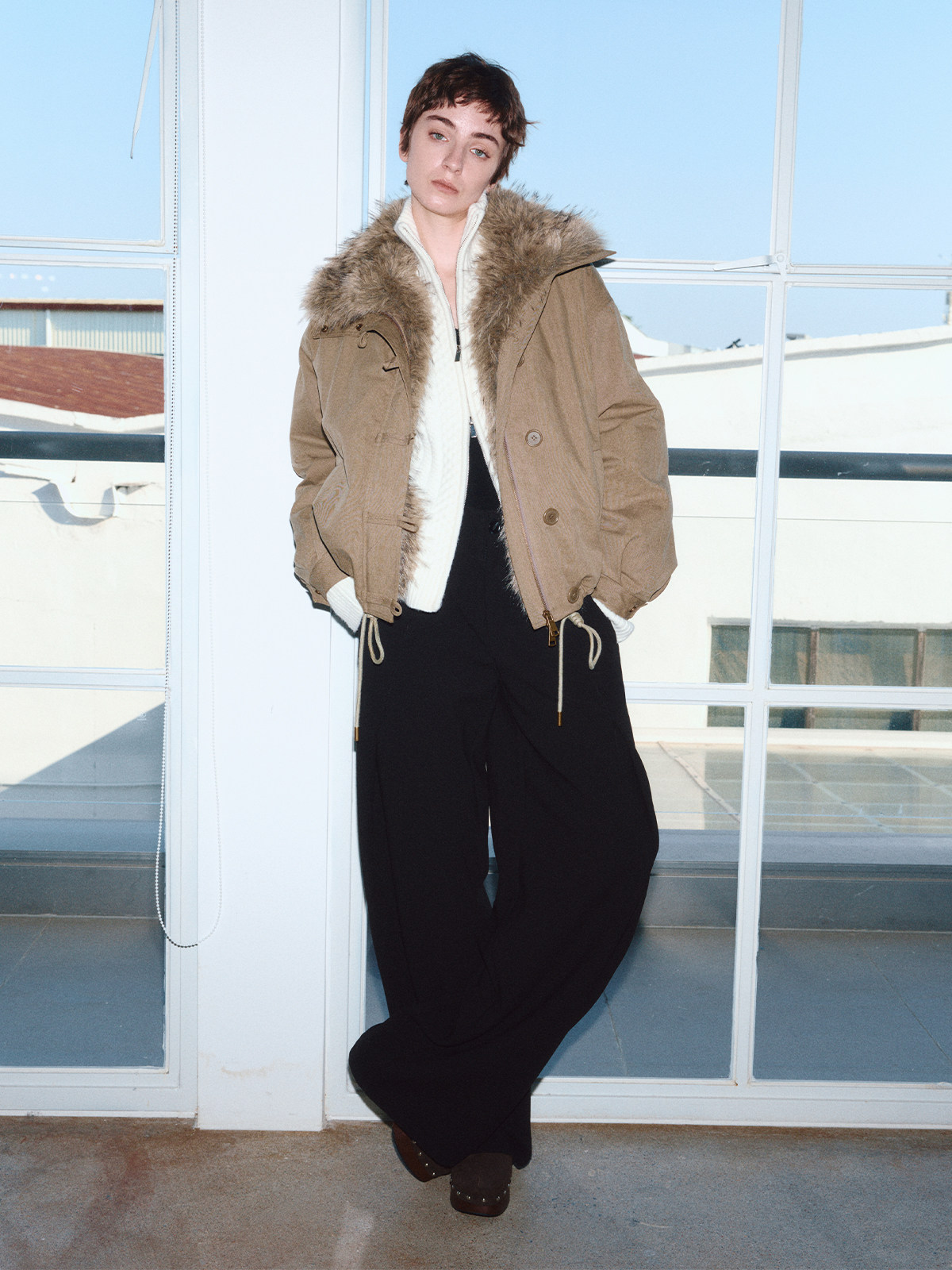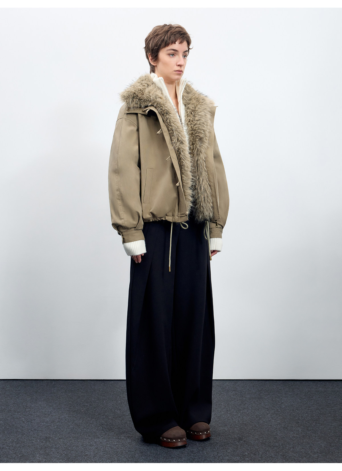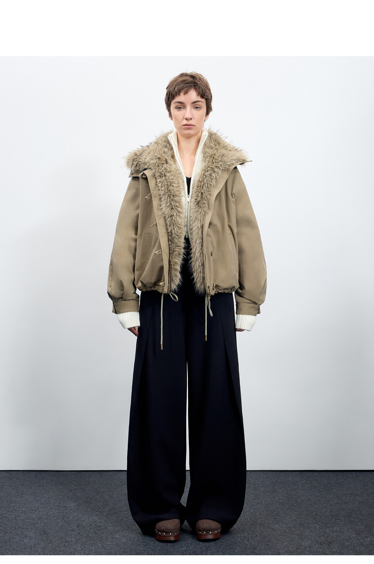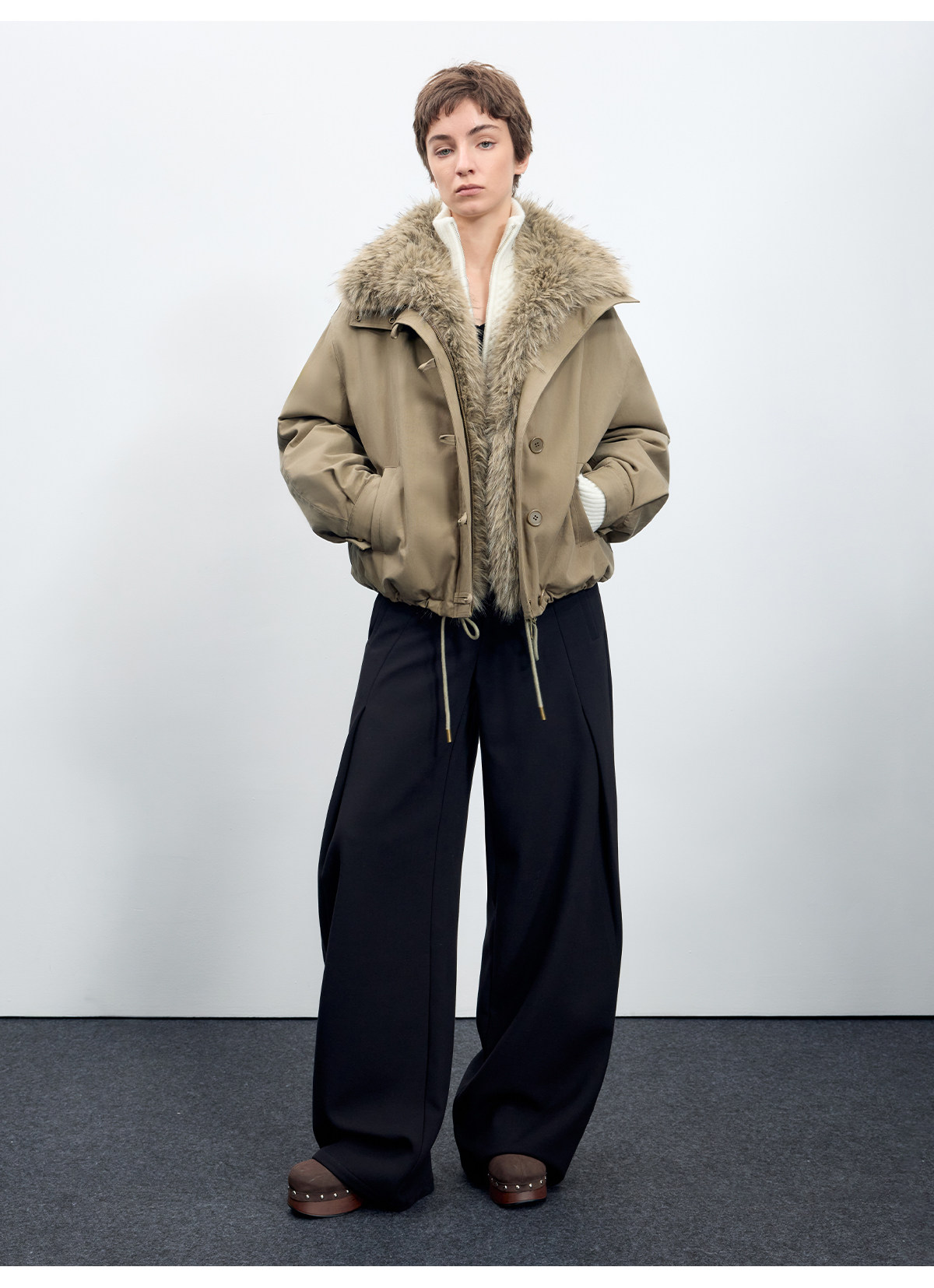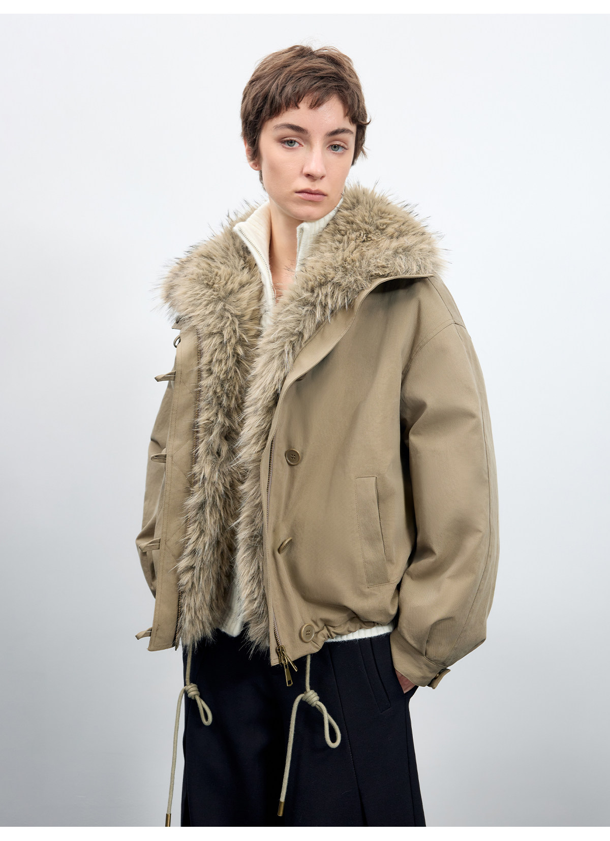 出逃赤岗西/25AWR020/复古可拆卸毛领廓形棉服