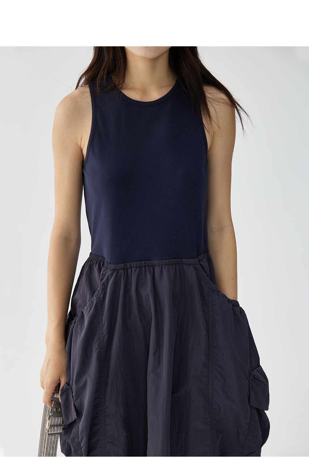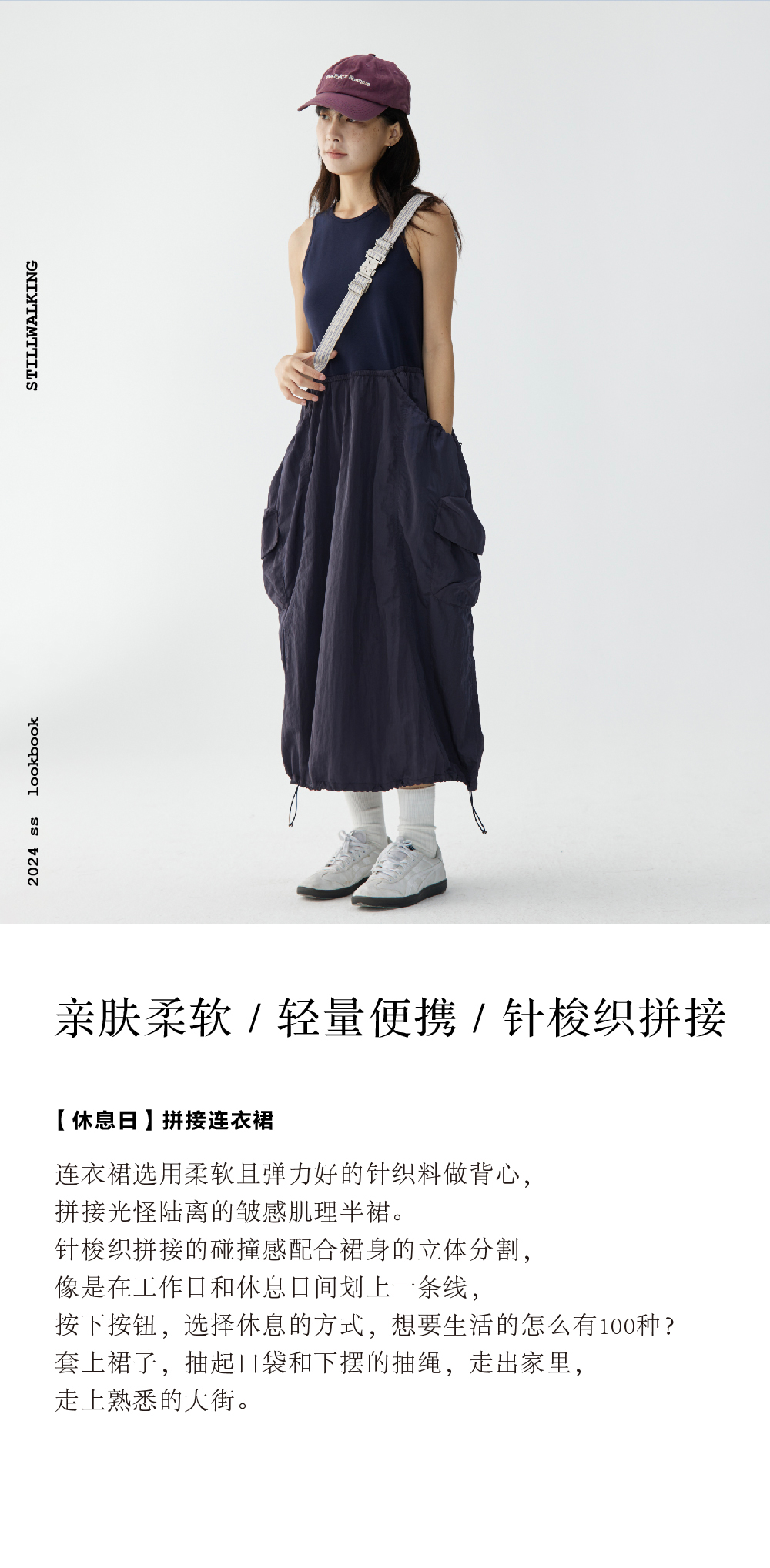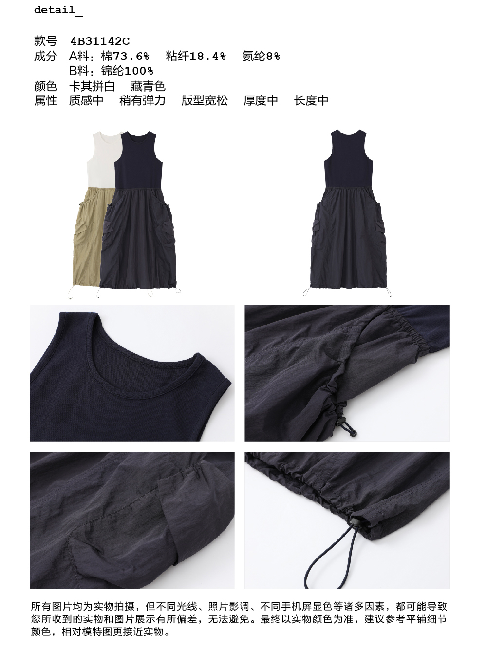 步履不停/4B31142C/针梭织拼接大口袋设计连衣裙