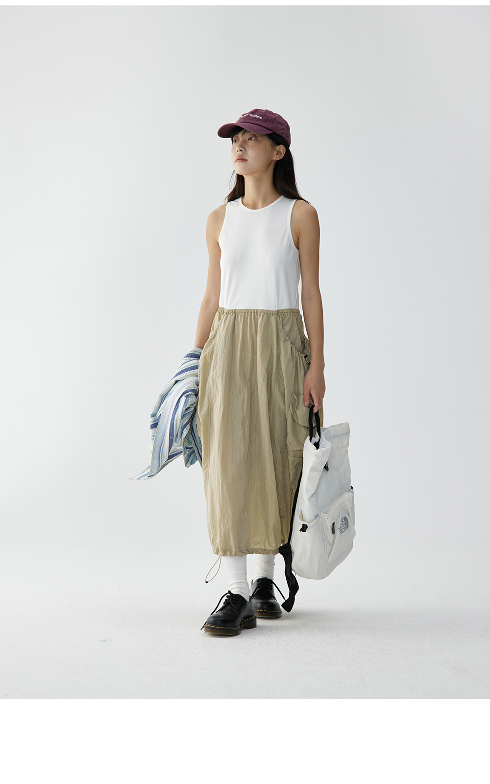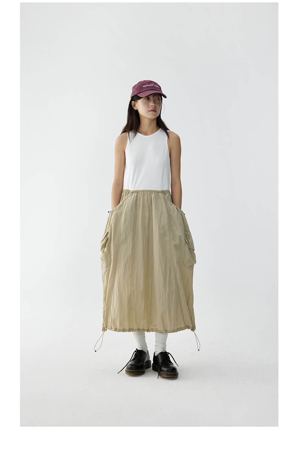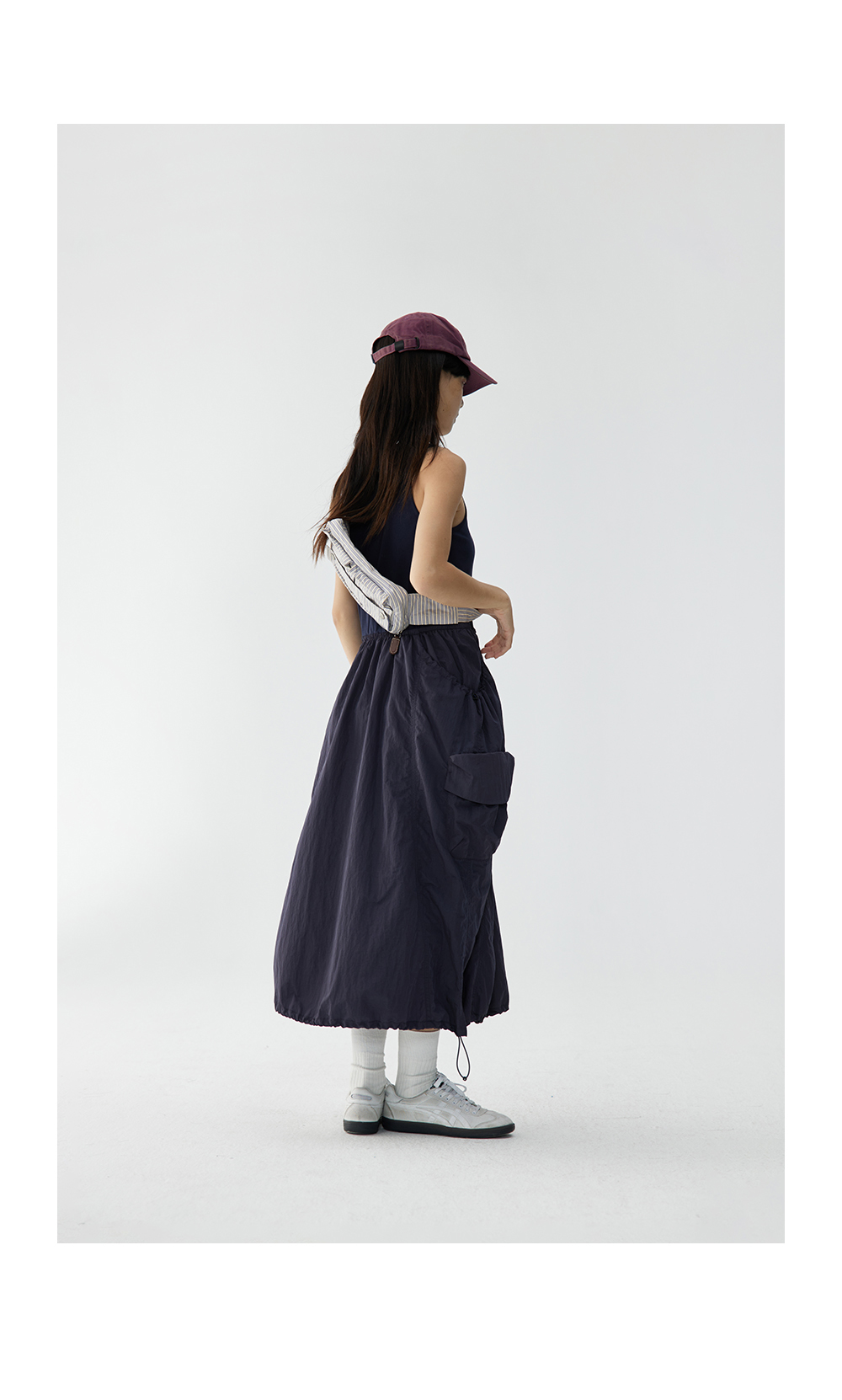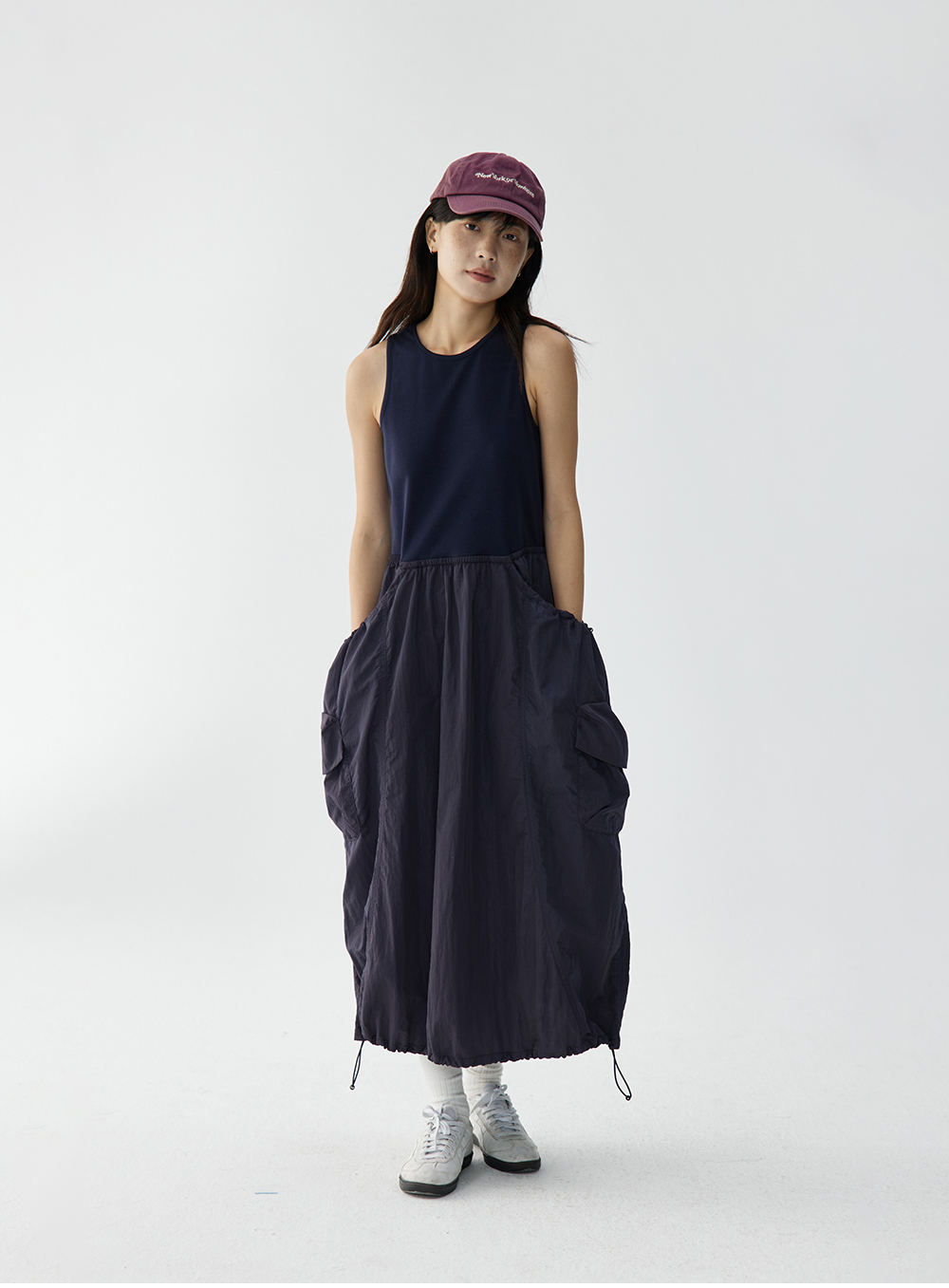 步履不停/4B31142C/针梭织拼接大口袋设计连衣裙