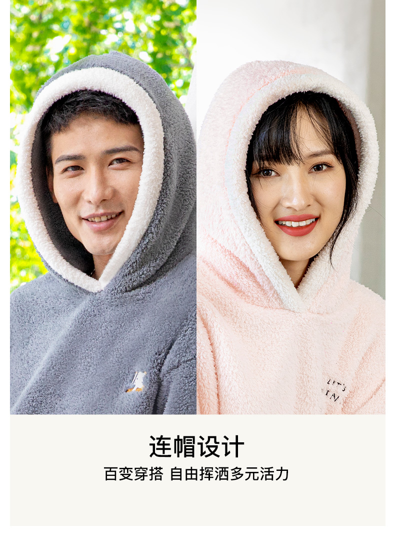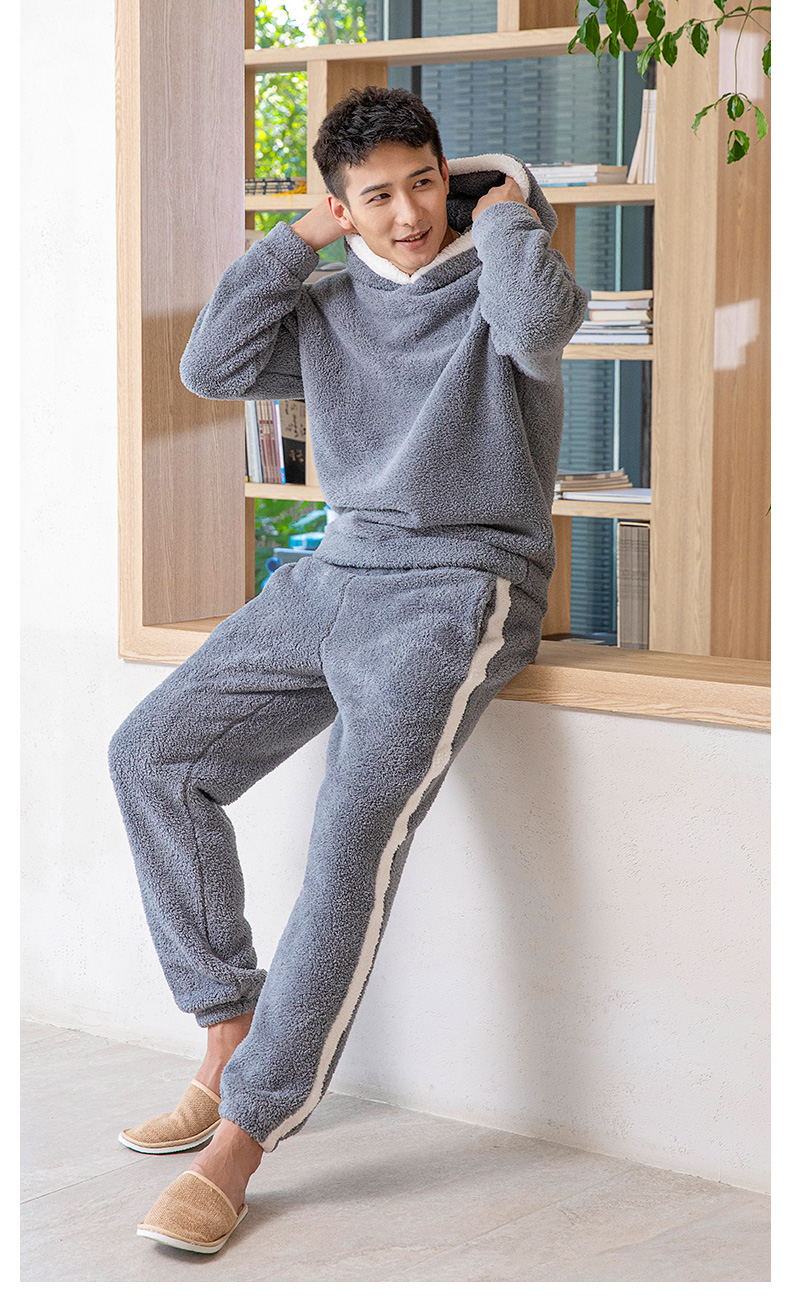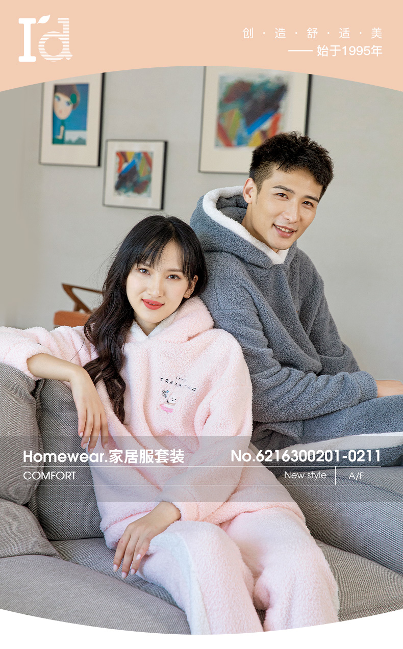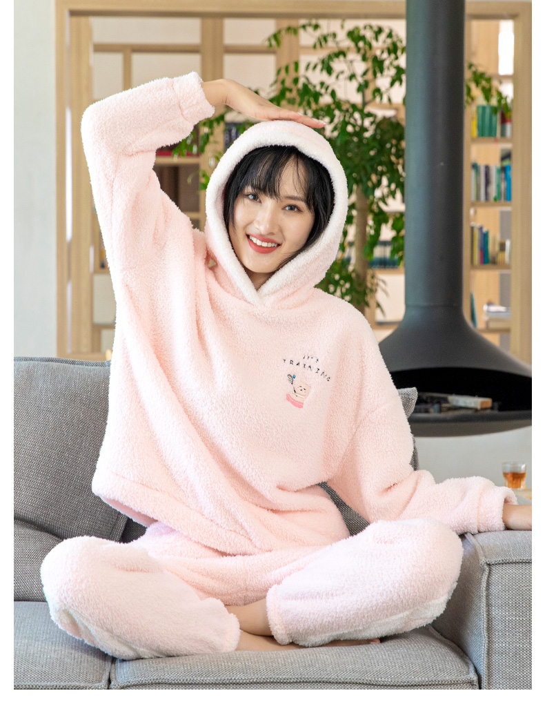 爱帝暖暖绒加厚加绒休闲连帽家居服套装
