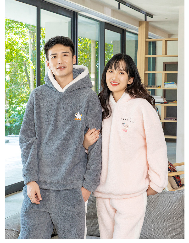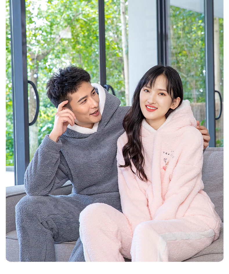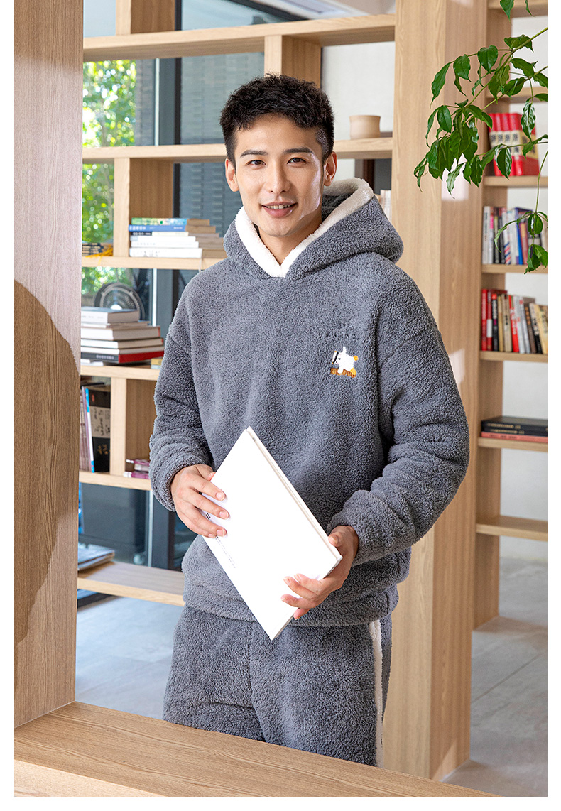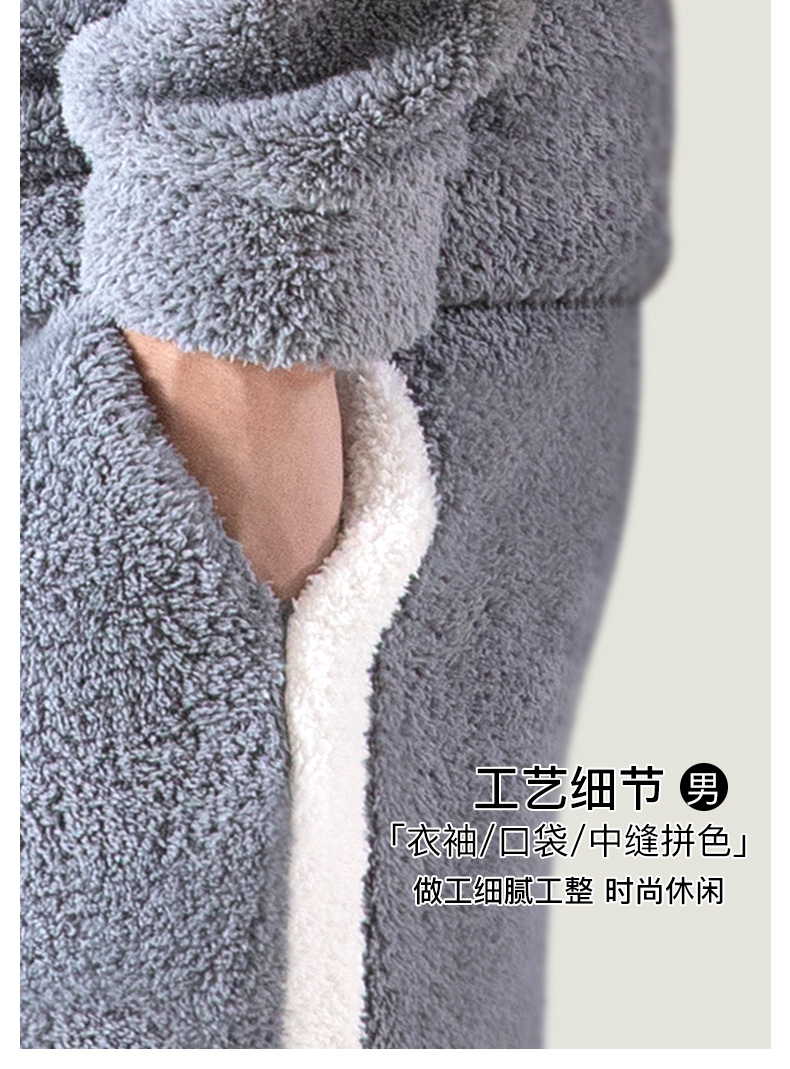 爱帝暖暖绒加厚加绒休闲连帽家居服套装