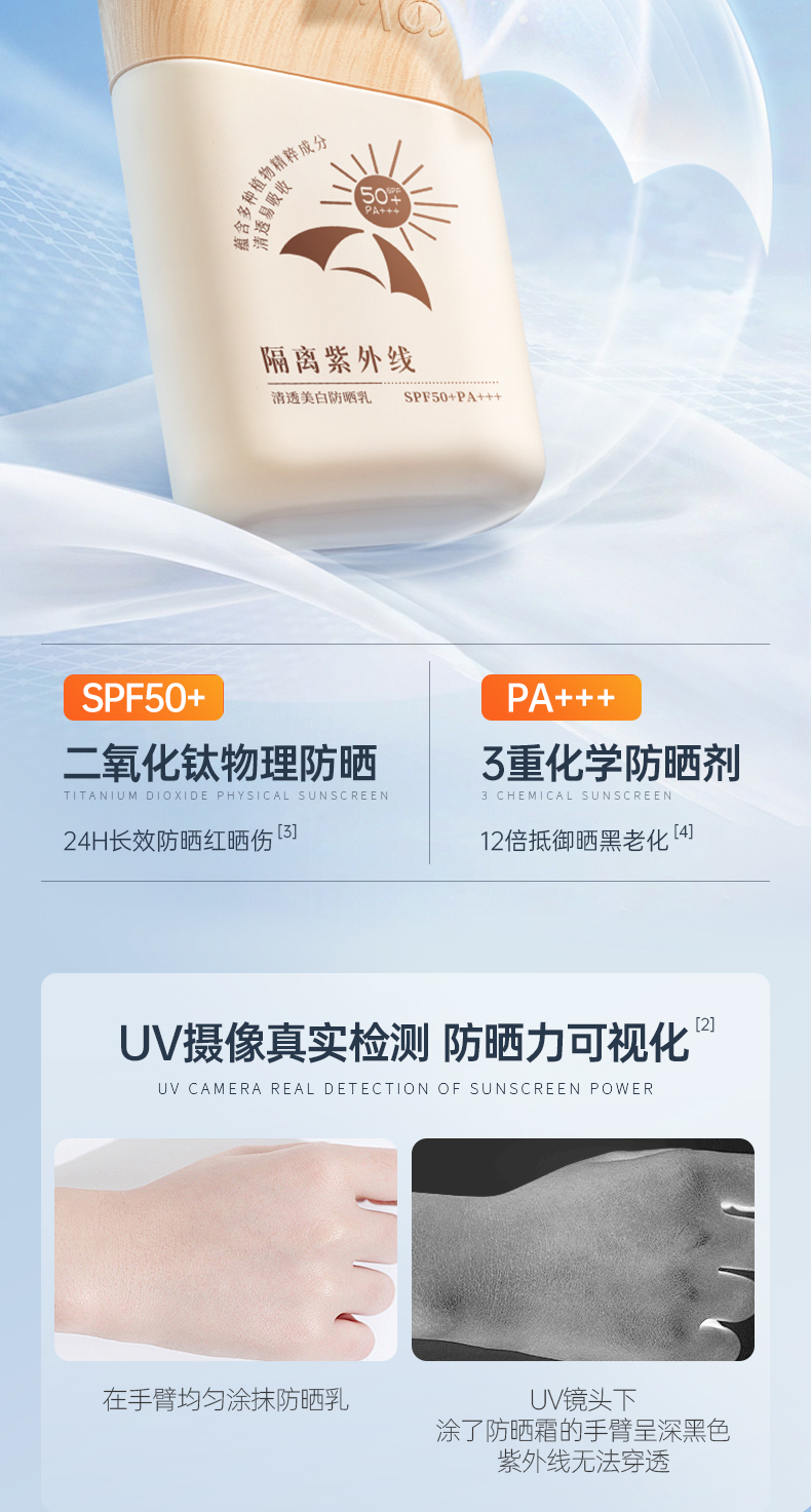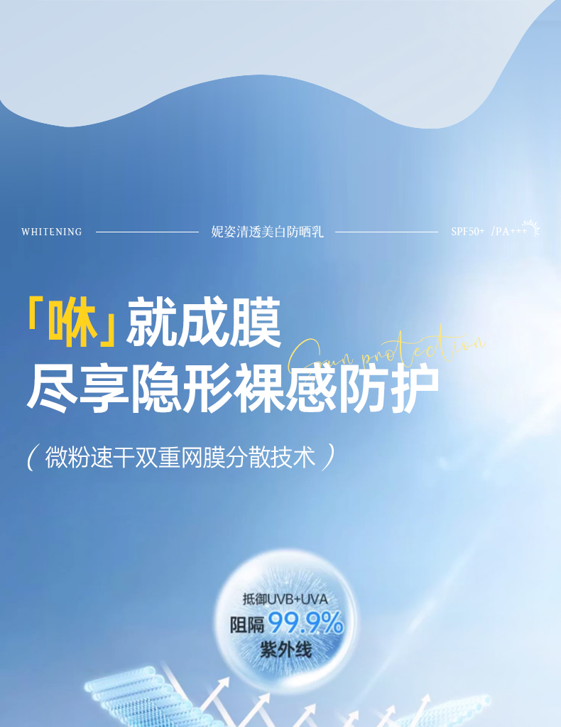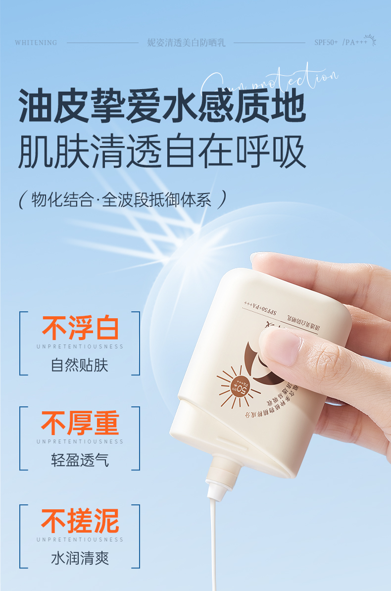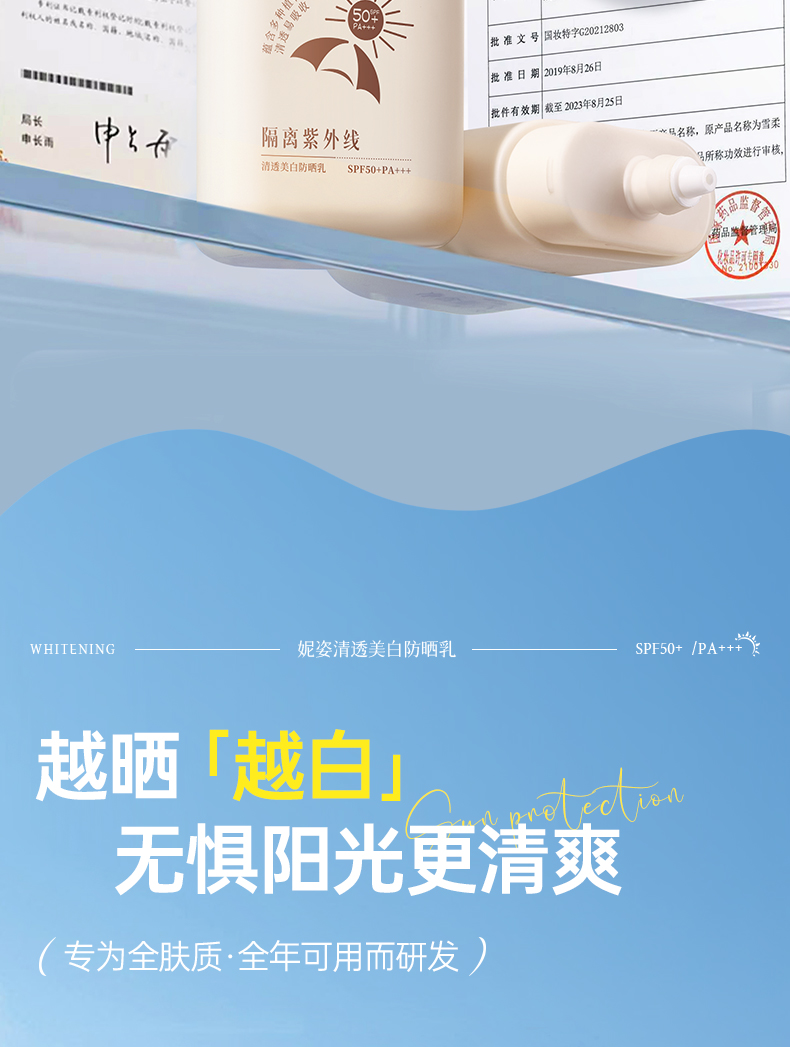 儒意妮姿清透美白防晒乳50g 美白防晒霜面部全身隔离50倍防紫外线防水防汗户外清爽|儒意官方商城