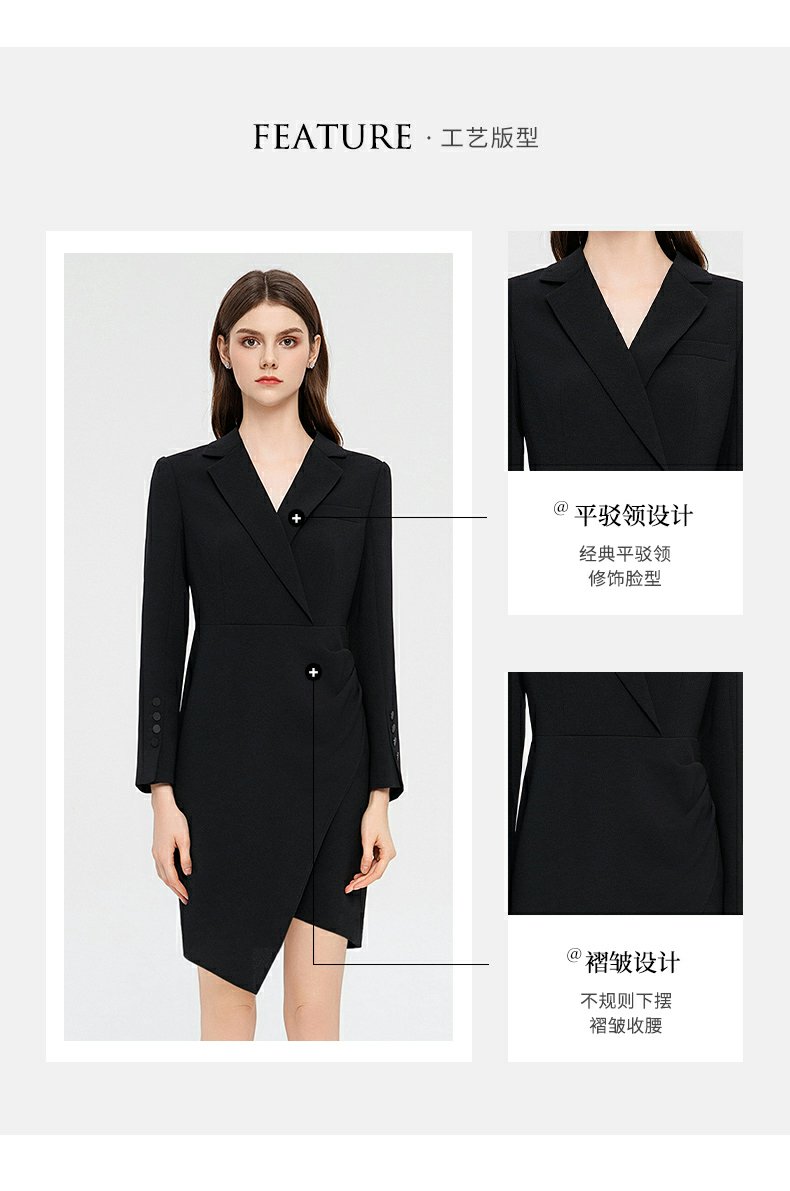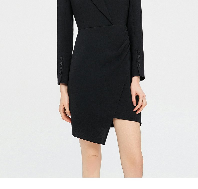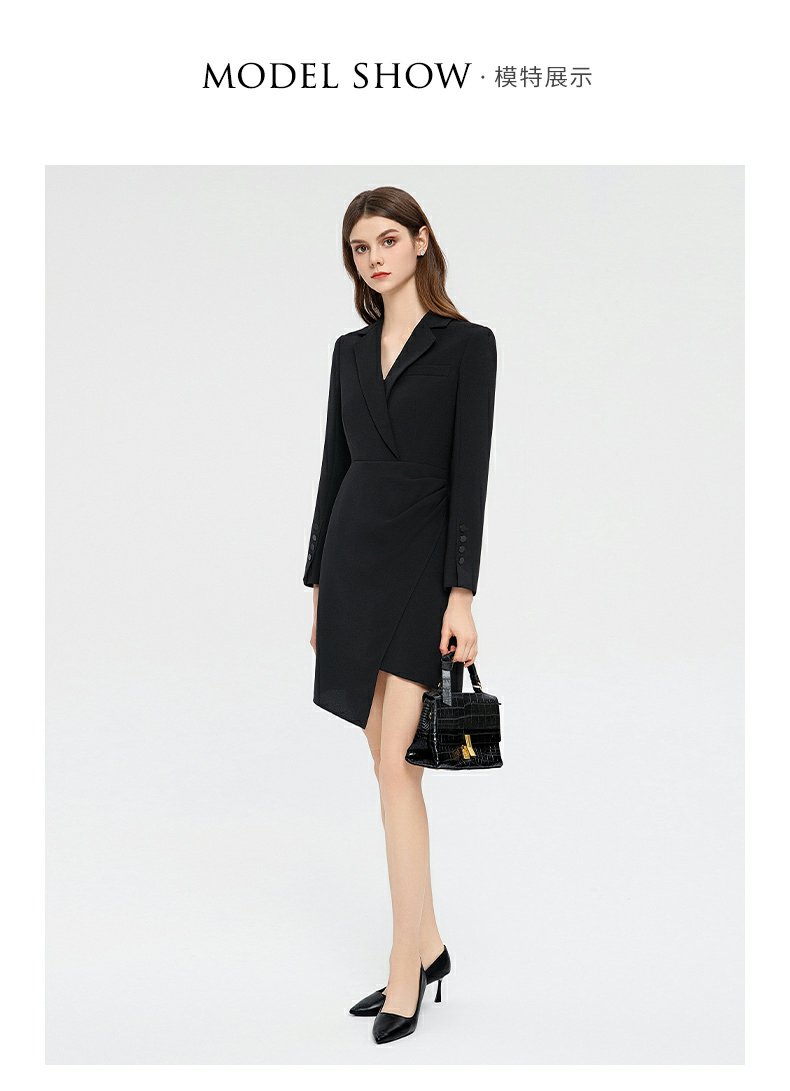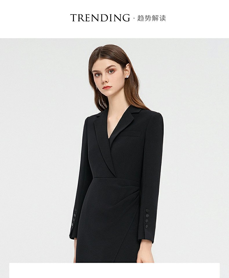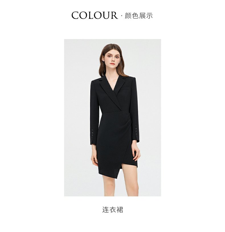 IWY/黑色西装连衣裙女秋冬长袖职业通勤正装售楼部工作服职业裙Q13330