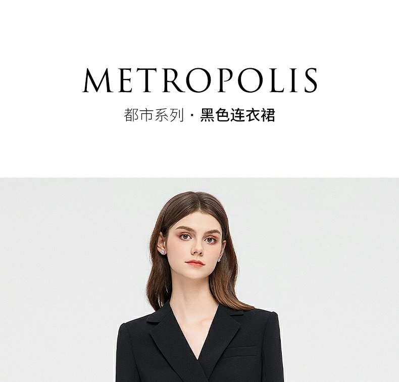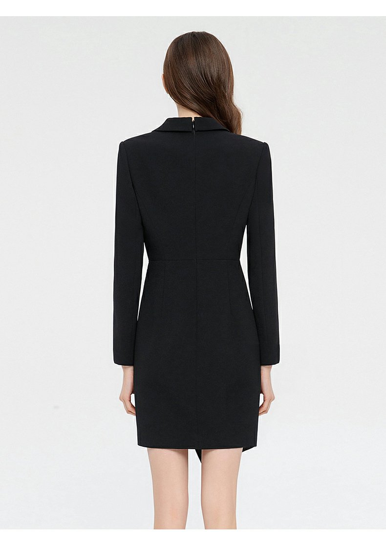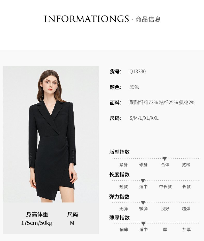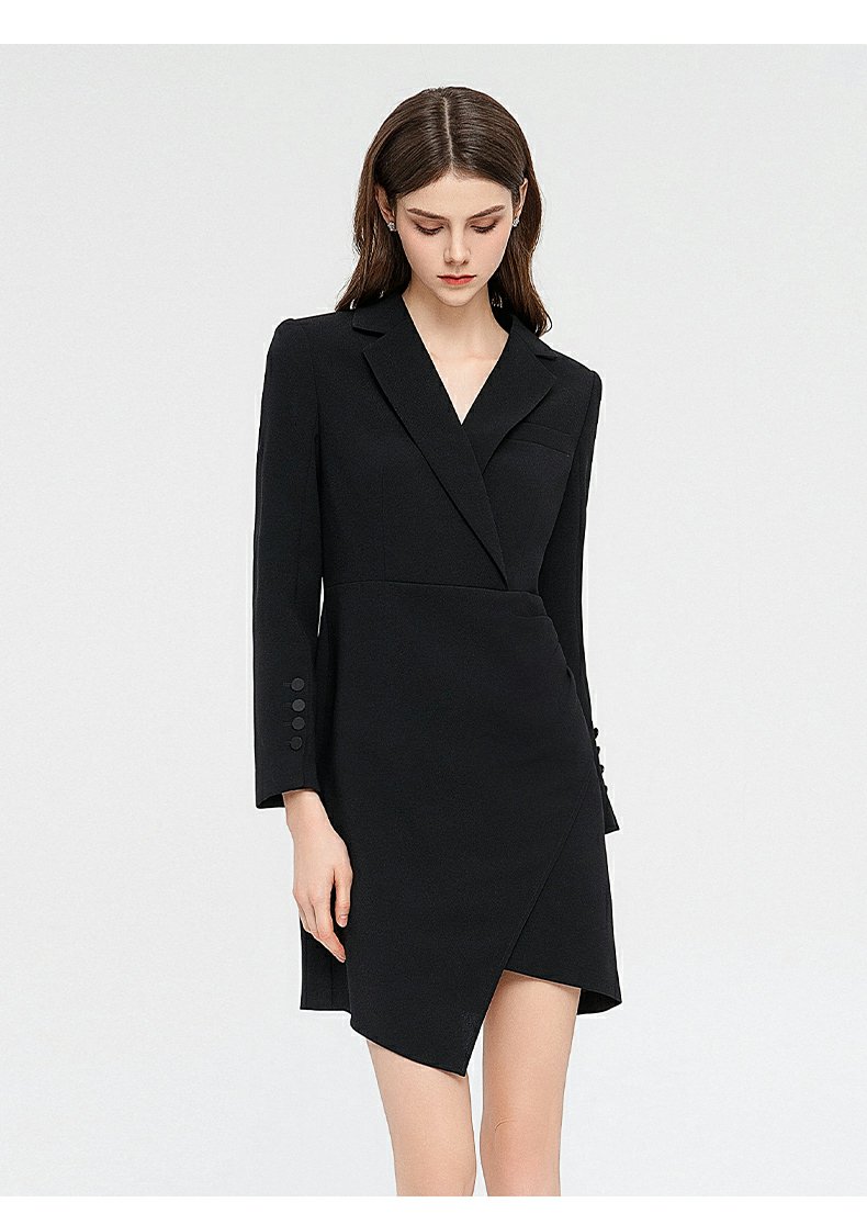IWY/黑色西装连衣裙女秋冬长袖职业通勤正装售楼部工作服职业裙Q13330