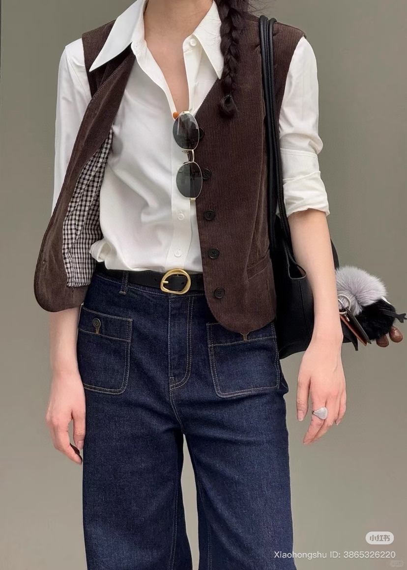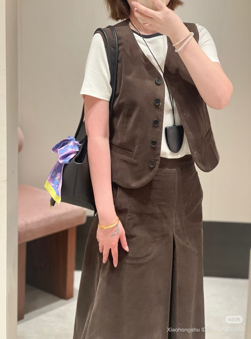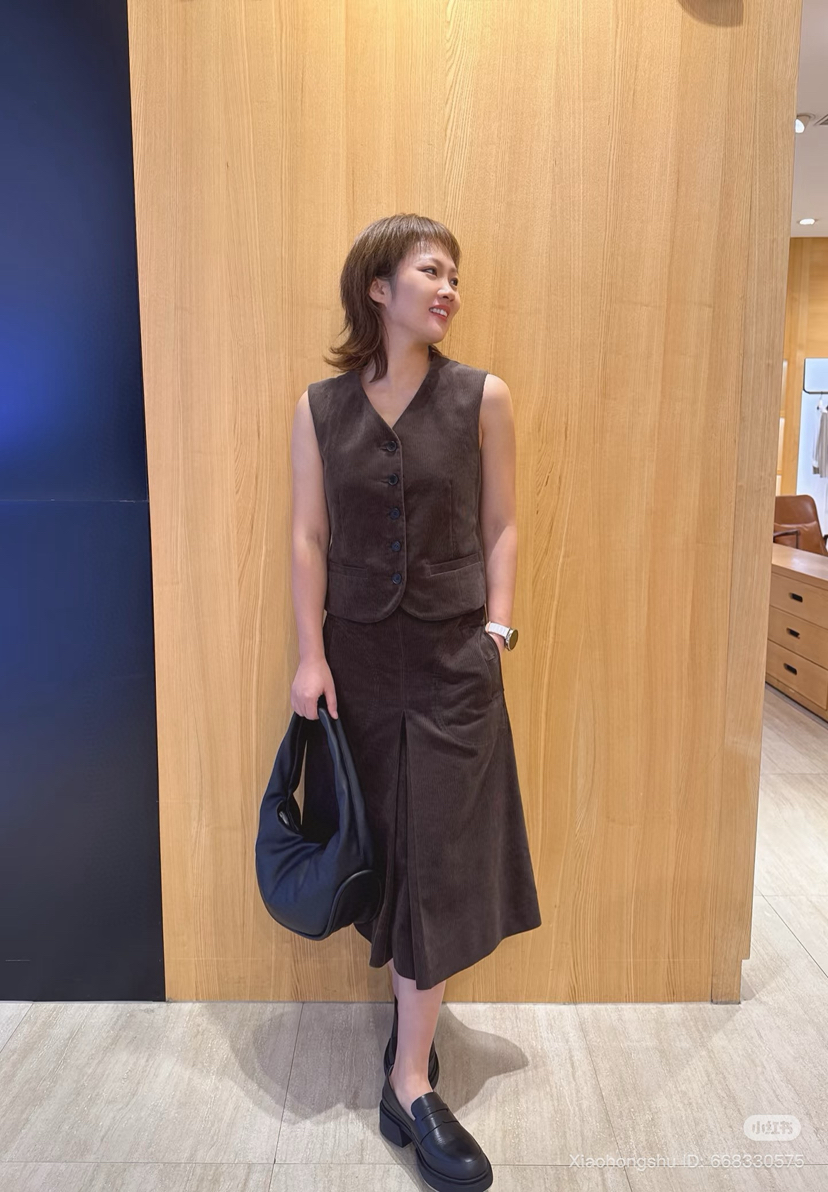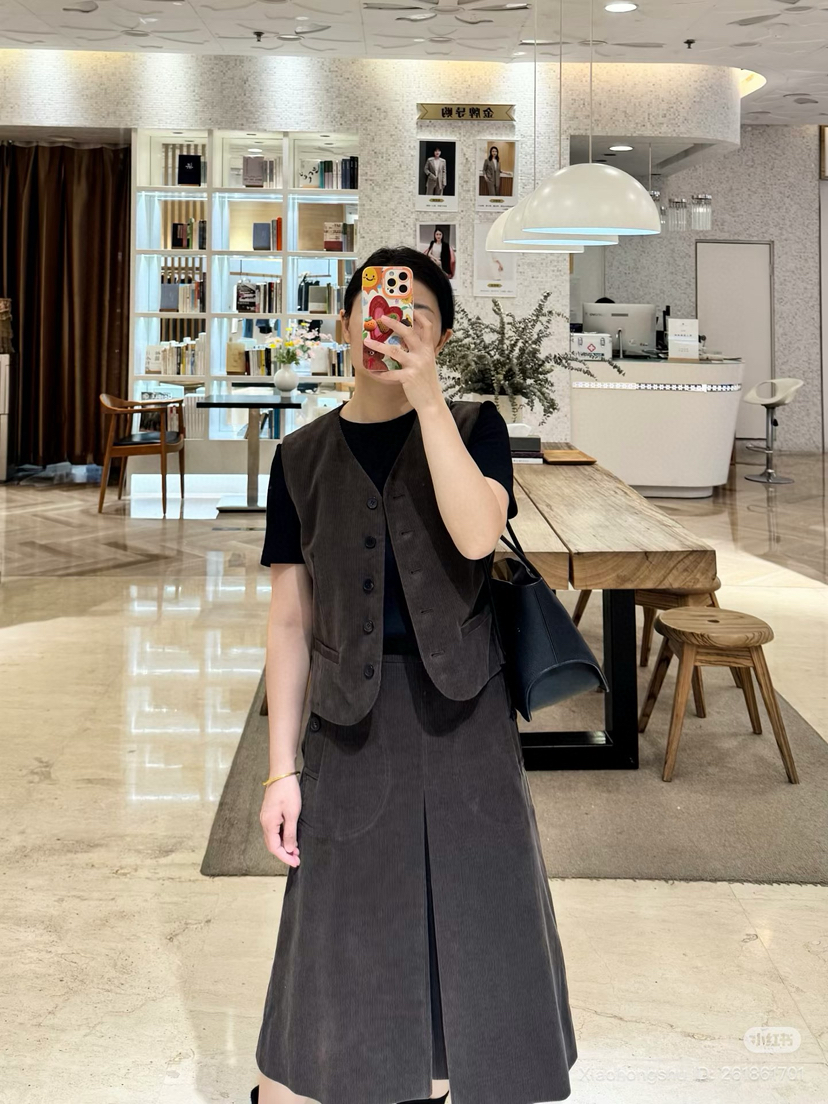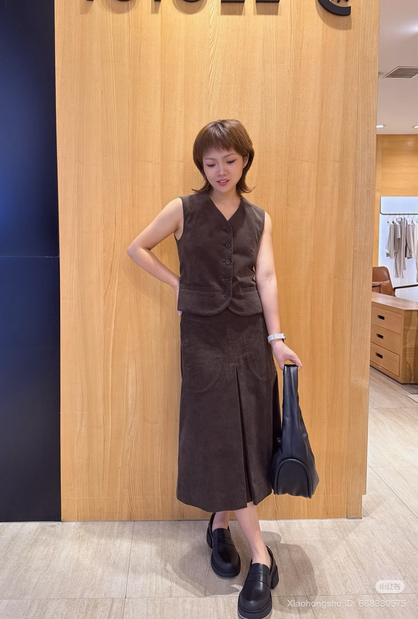 95-6 独家圆正 小禾 灯芯绒系列 马甲 半身裙 套装