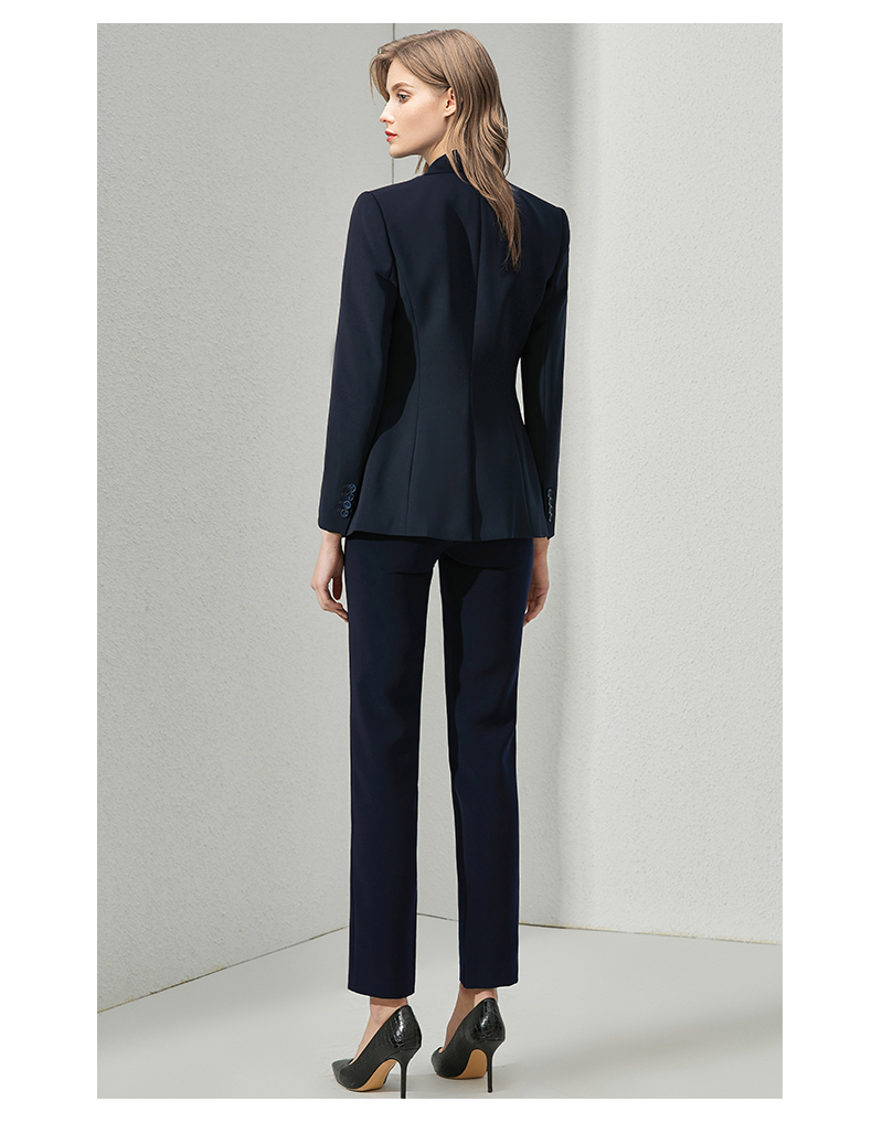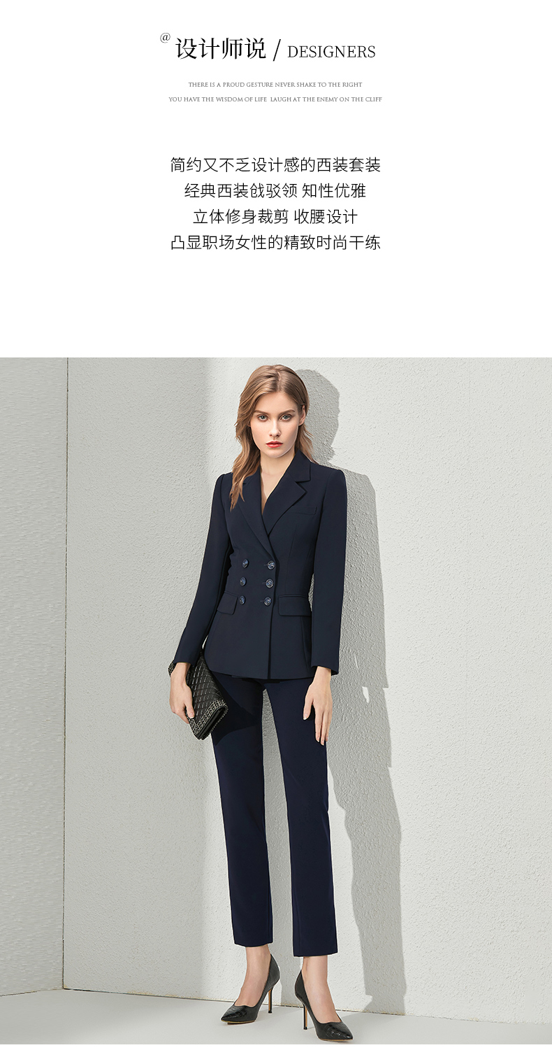 IWY/藏青色气质扣西装套装女商务高端职业装秋冬时尚正装通勤面试双排 CP1412