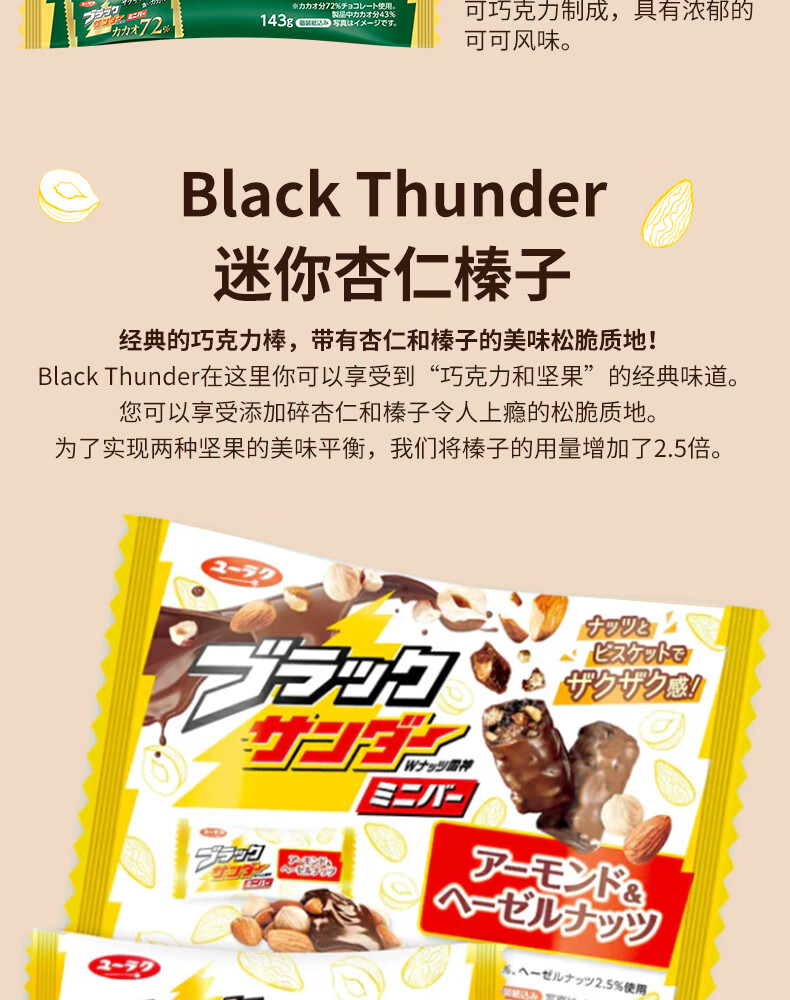 有乐制果Yurakuseika巧克力雷神可可72%巧克力132g/榛仁扁桃仁味143g 经典巧克力棒 045444/045445