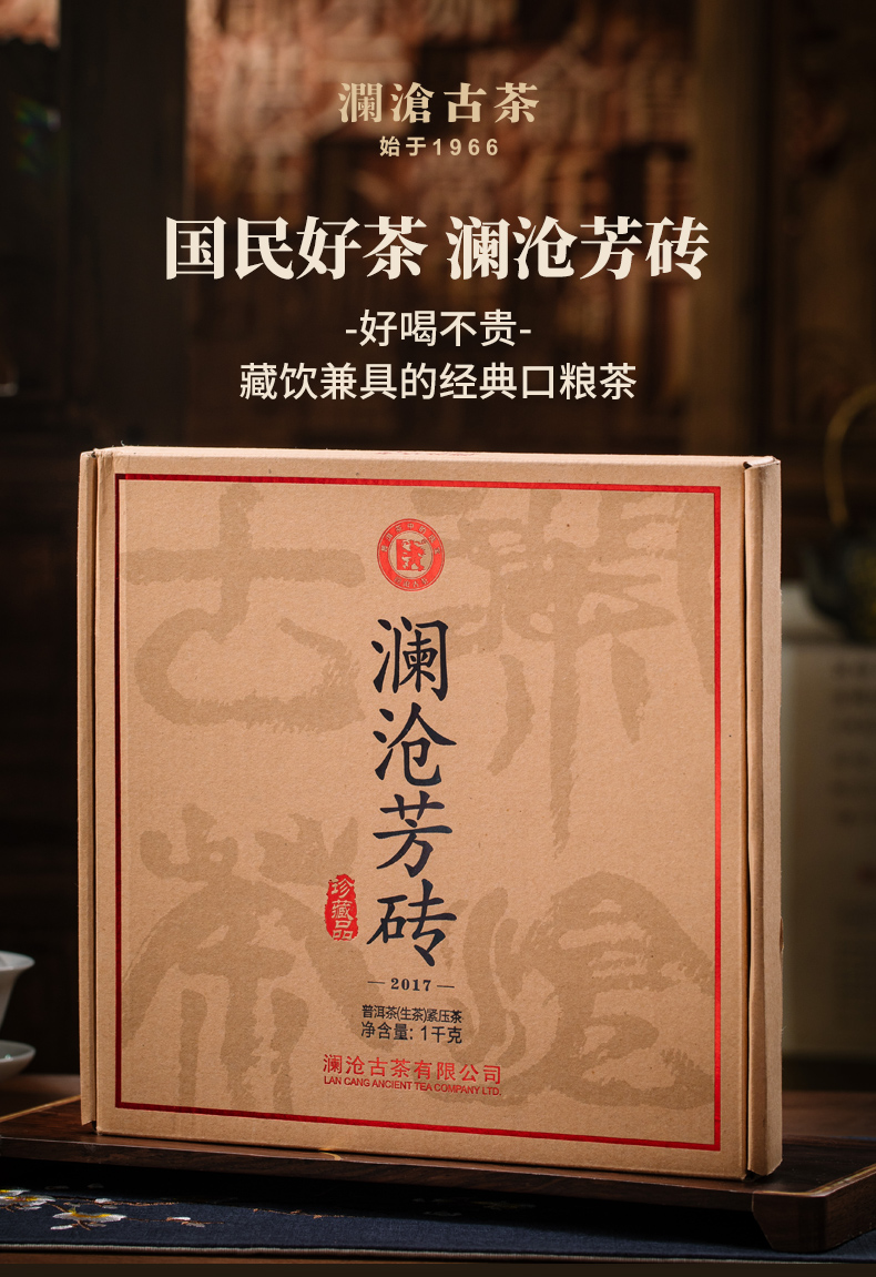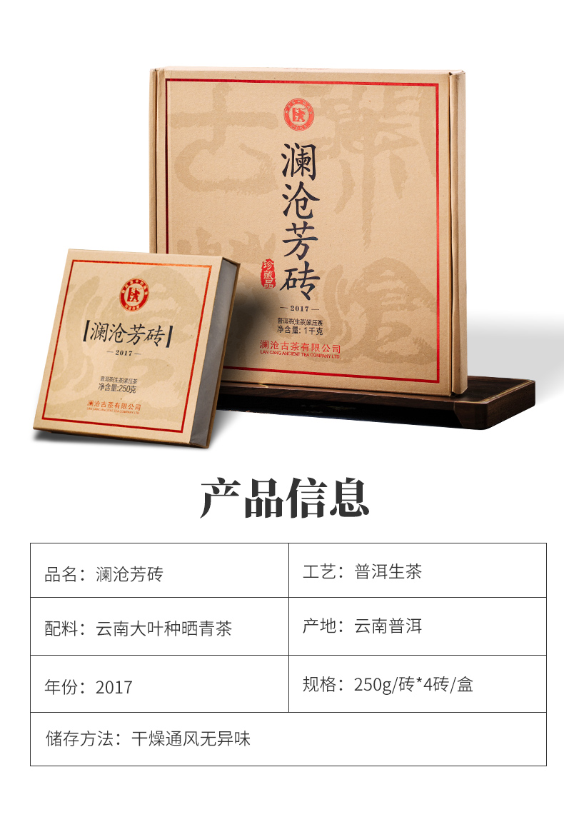 澜沧古茶2017年澜沧芳砖普洱生茶乔木老树口粮