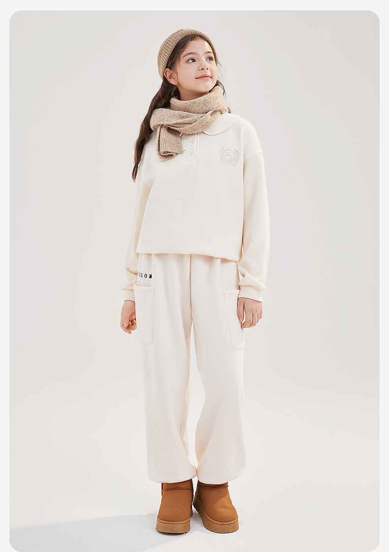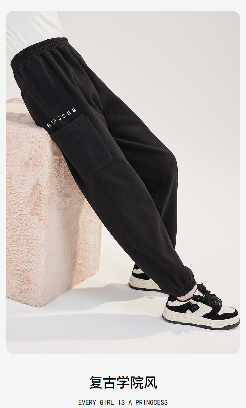 笛莎Deesha青少年女童裤子太阳丝舒绒2024冬复古学院风裤子