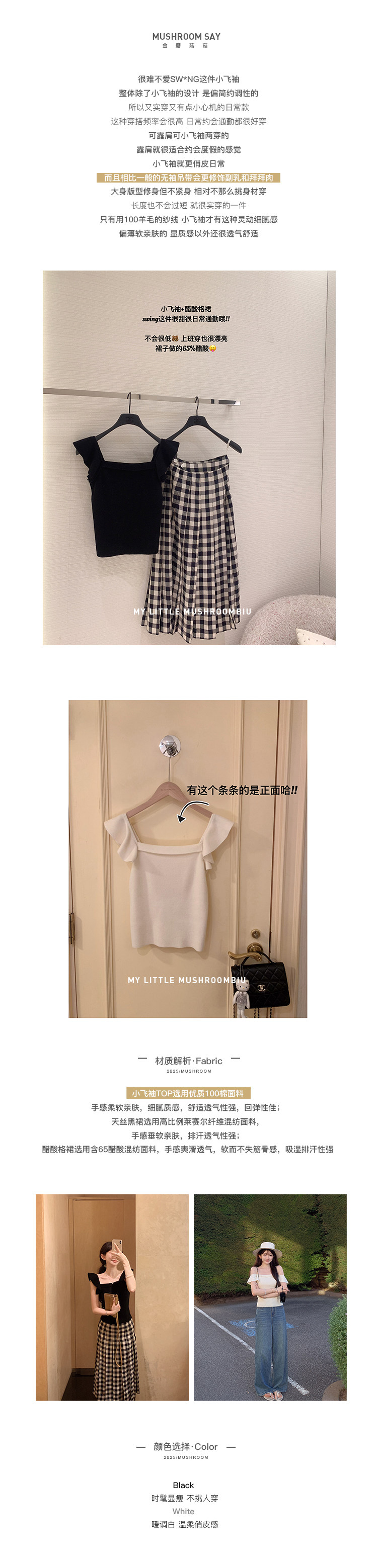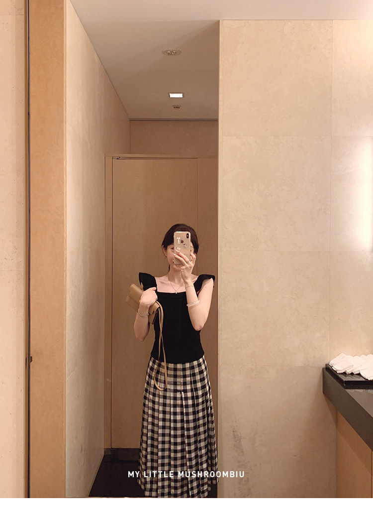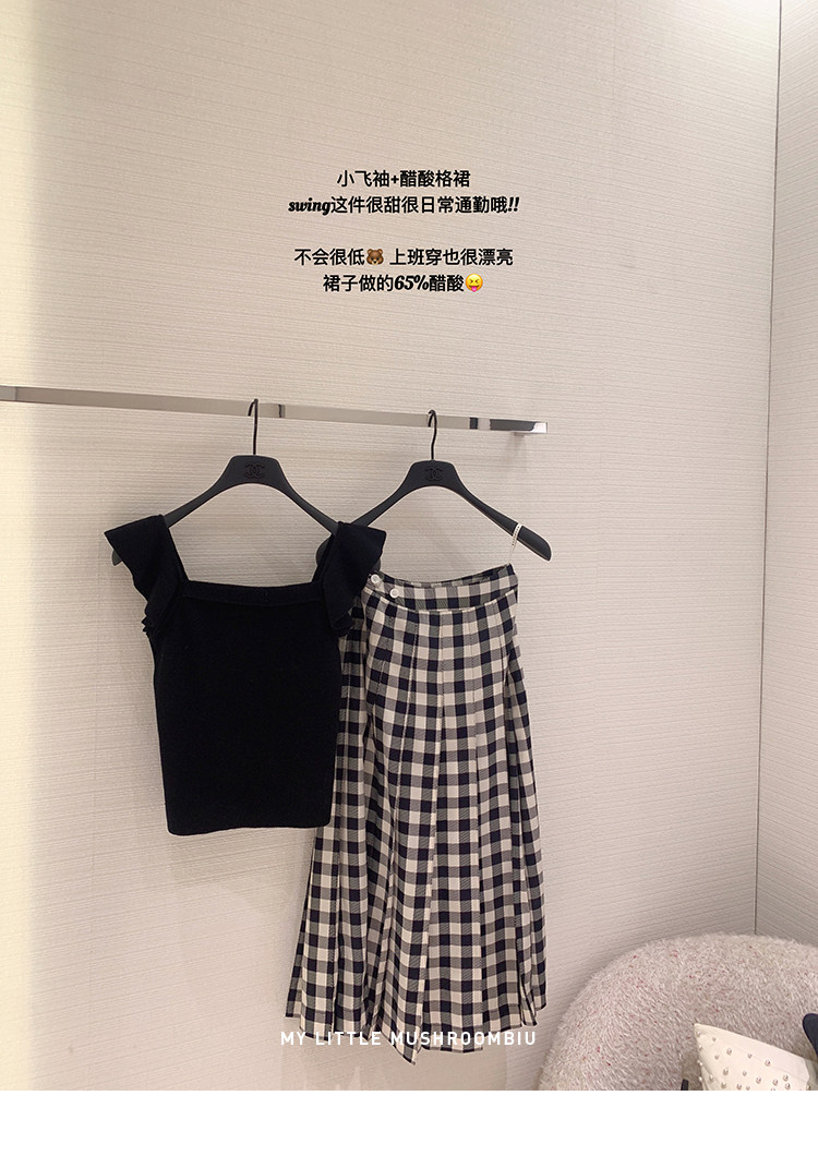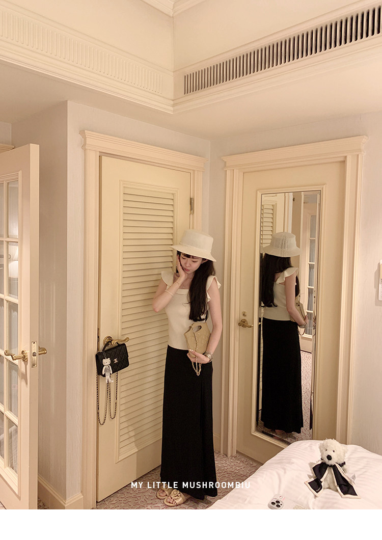 金蘑菇菇 恋恋巴黎 法式套组 / 小飞袖top+优雅半裙 夏日轻通勤