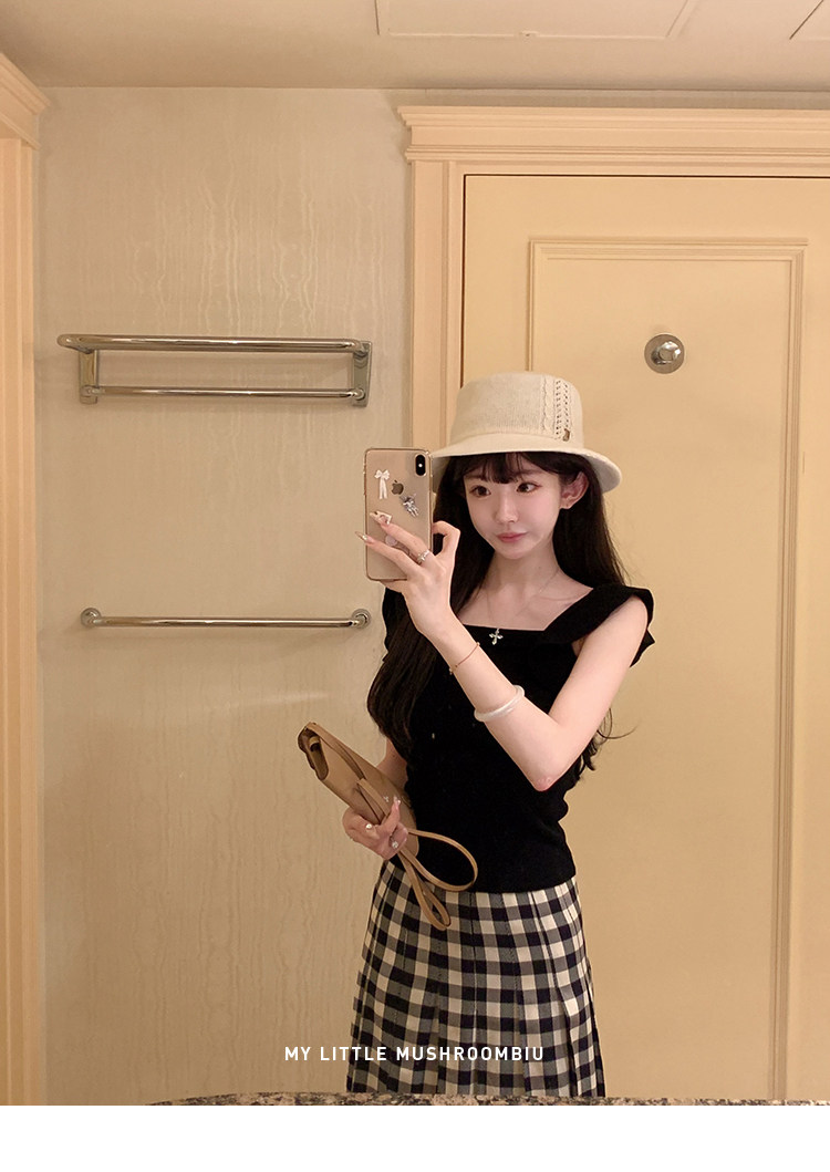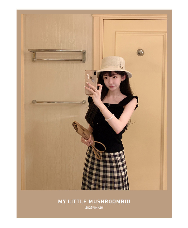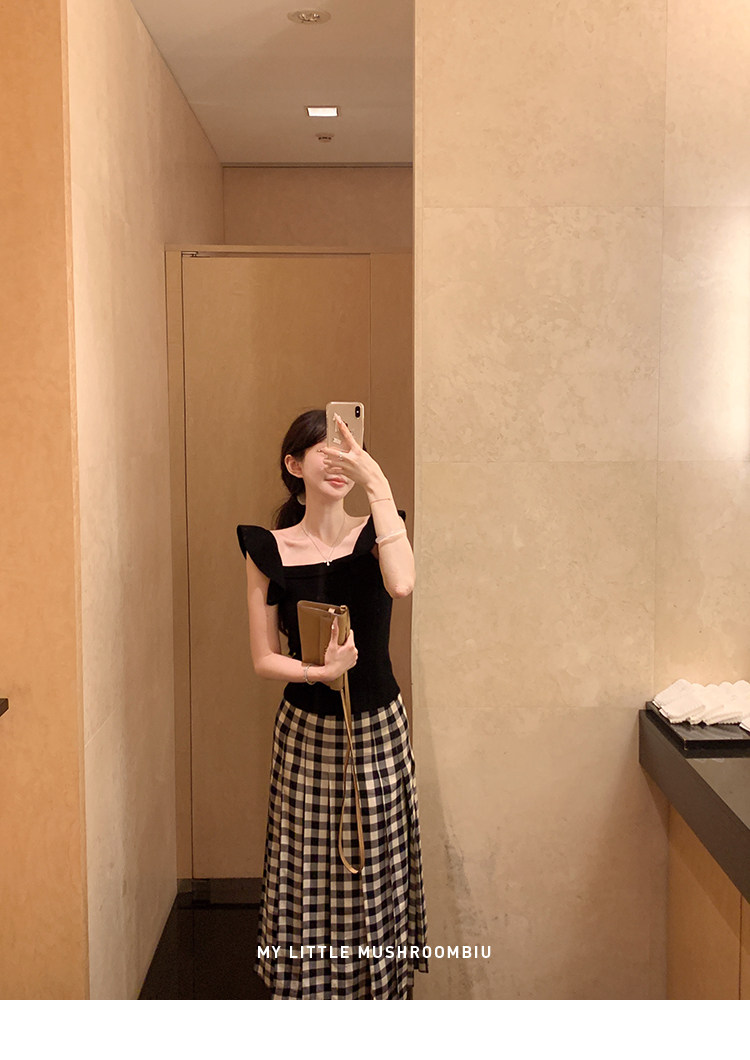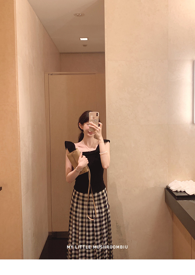 金蘑菇菇 恋恋巴黎 法式套组 / 小飞袖top+优雅半裙 夏日轻通勤