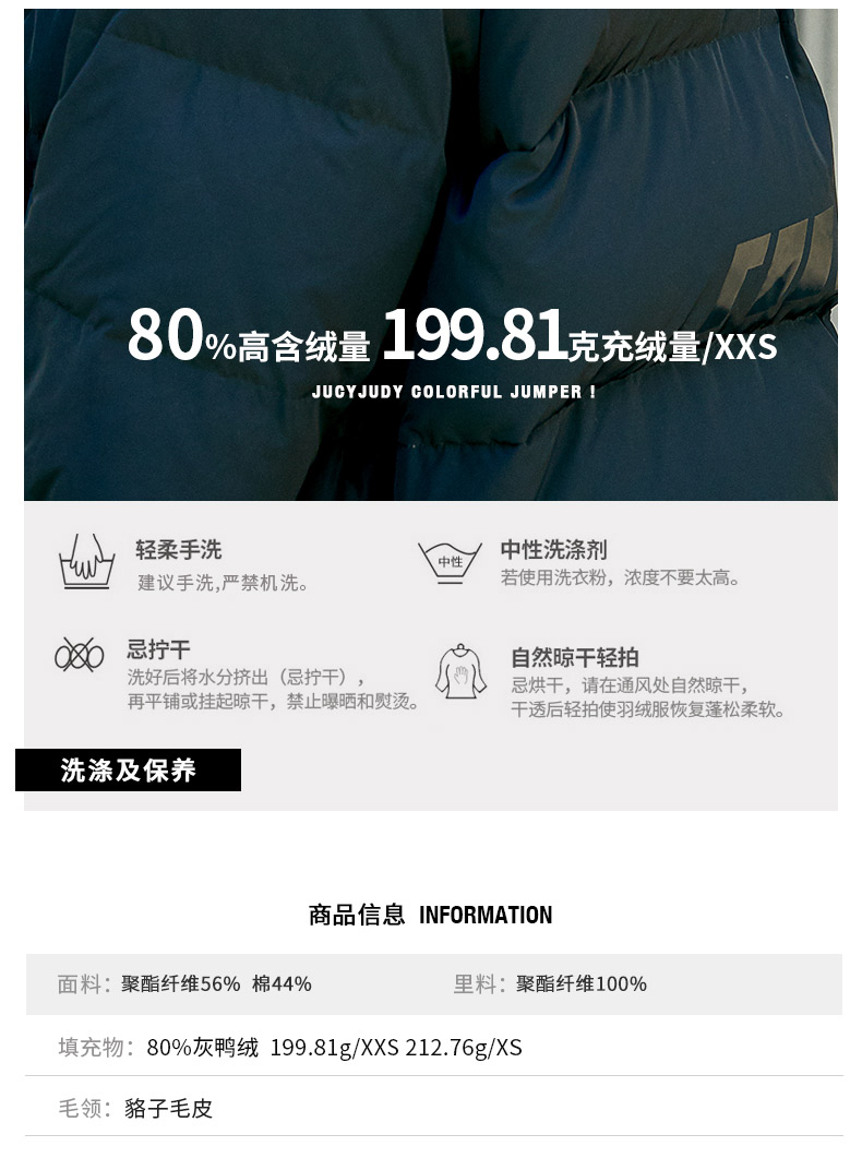 Jucy Judy2019新款冬季宽松羽绒服中长款预售