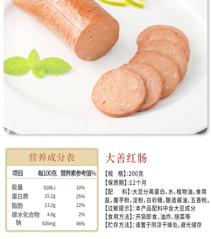 齐善素食大善红肠佛家纯素肠豆制品素肉人造肉植物香肠零食