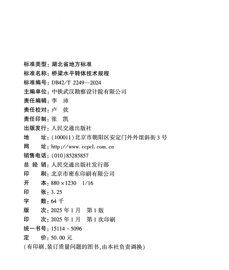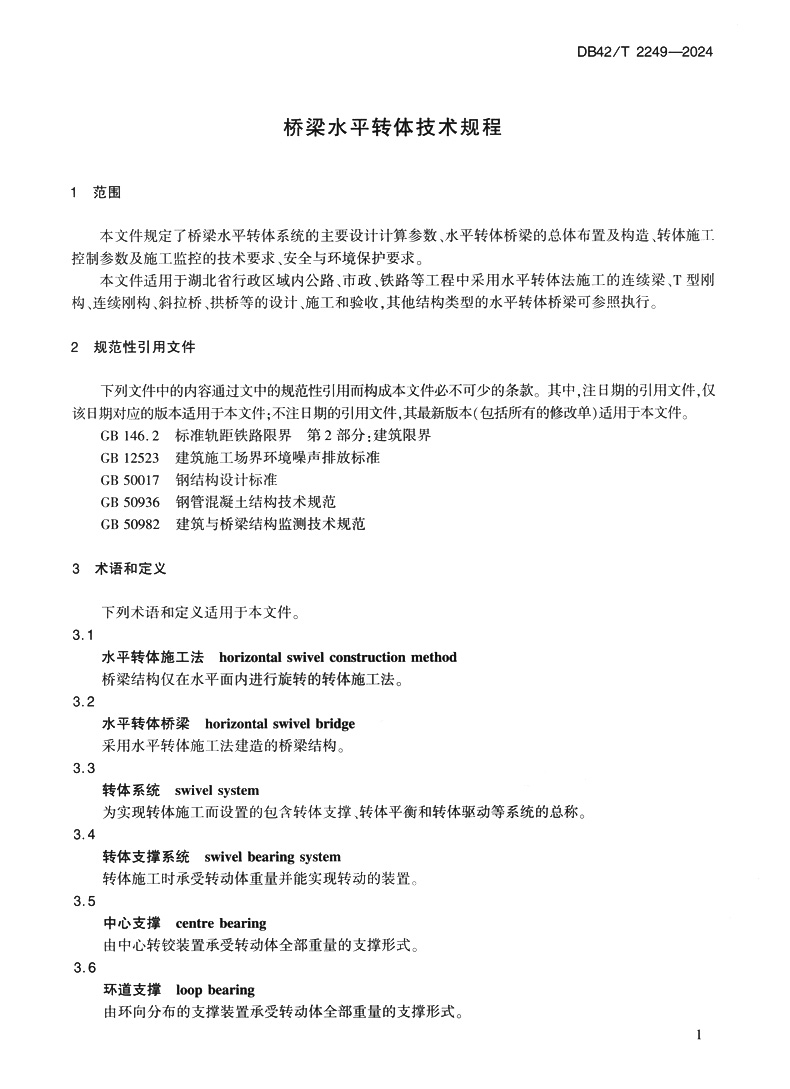 书名:桥梁水平转体技术规程(DB42/T 2249—2024)