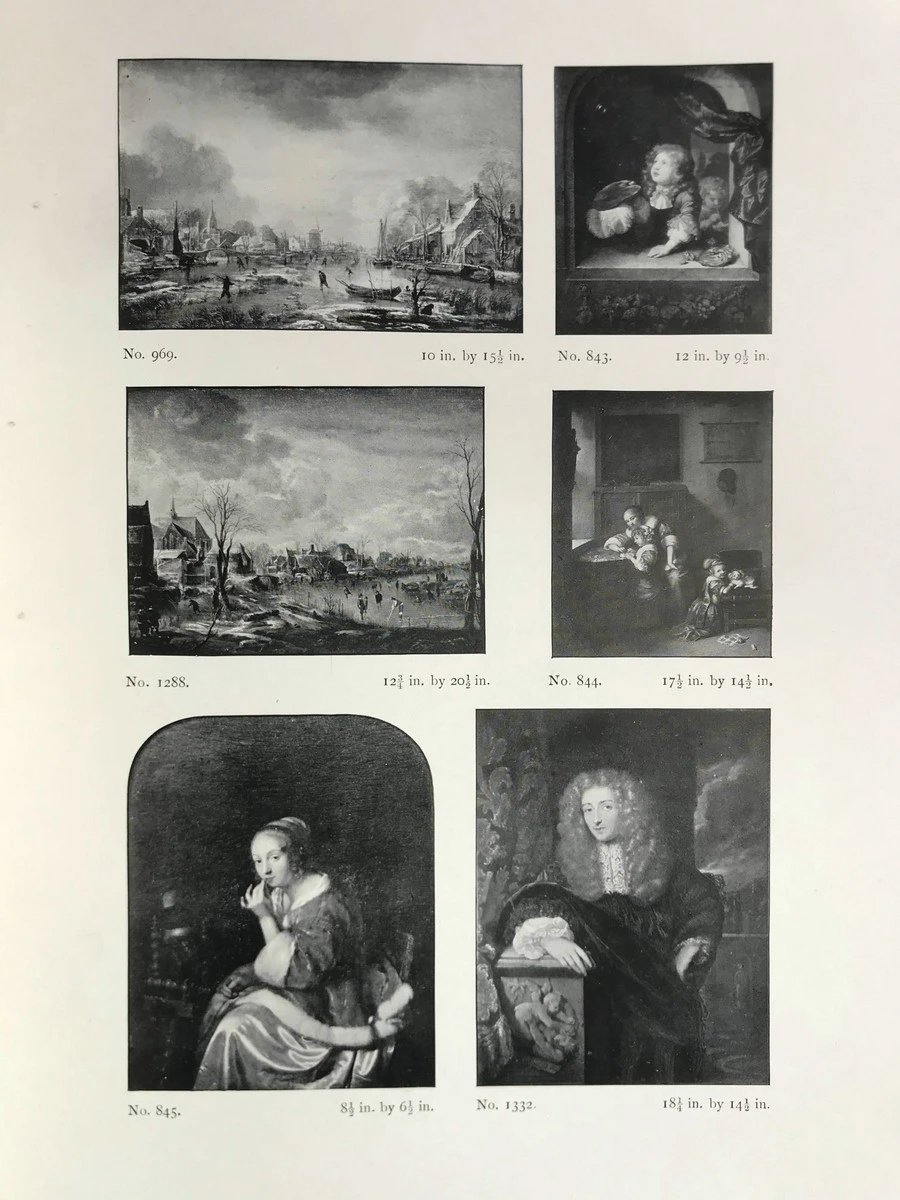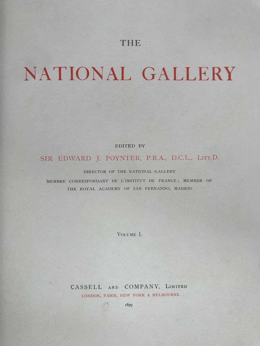由爱德华·J·波因特爵士(Sir Edward J. Poynter)撰写,首次出版于1899年和1900年,由卡塞尔公司出版。该书详细介绍了英国国家画廊的藏品,分为三卷,每卷包含大量文字和黑白插图。第一卷《外国画派:阿尔贝蒂内利 - 马克里诺·达尔巴》(Foreign Schools: Albertinelli - Macrino D'Alba),集中讨论了来自意大利、荷兰等国的艺术家及其作品,涉及从文艺复兴到巴洛克时期的外国画作。第二卷《外国画派:马伊斯(尼古拉斯) - 苏尔巴兰》(Foreign Schools: Maes (Nicholas) - Zurbaran),继续探讨欧洲画派,尤其是荷兰和西班牙画家的作品,展示了他们在不同历史时期的艺术风格和技法。第三卷《英国与现代画派》(British and Modern Schools),重点介绍了英国本土艺术及19世纪末至20世纪初的现代艺术流派,涵盖了英国画家的创作成就及其对西方艺术的影响。