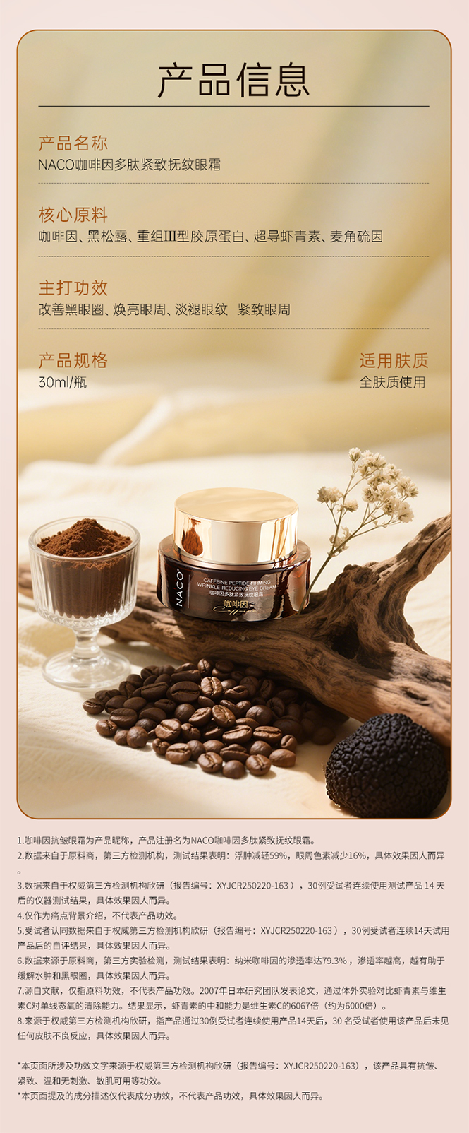 【老客专属福利】NACO 咖啡因多肽紧致抚纹眼霜30ml